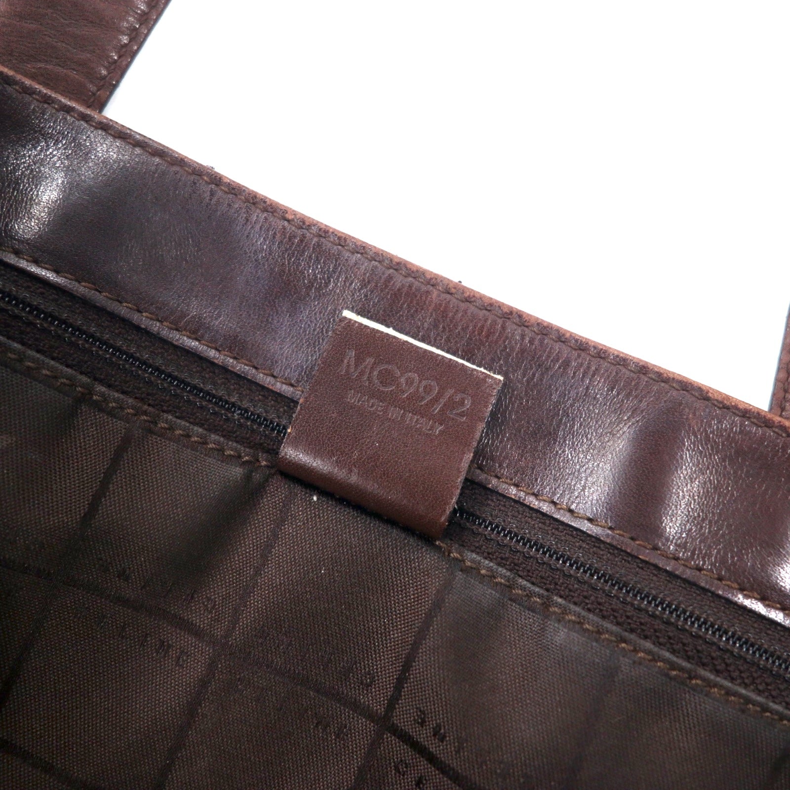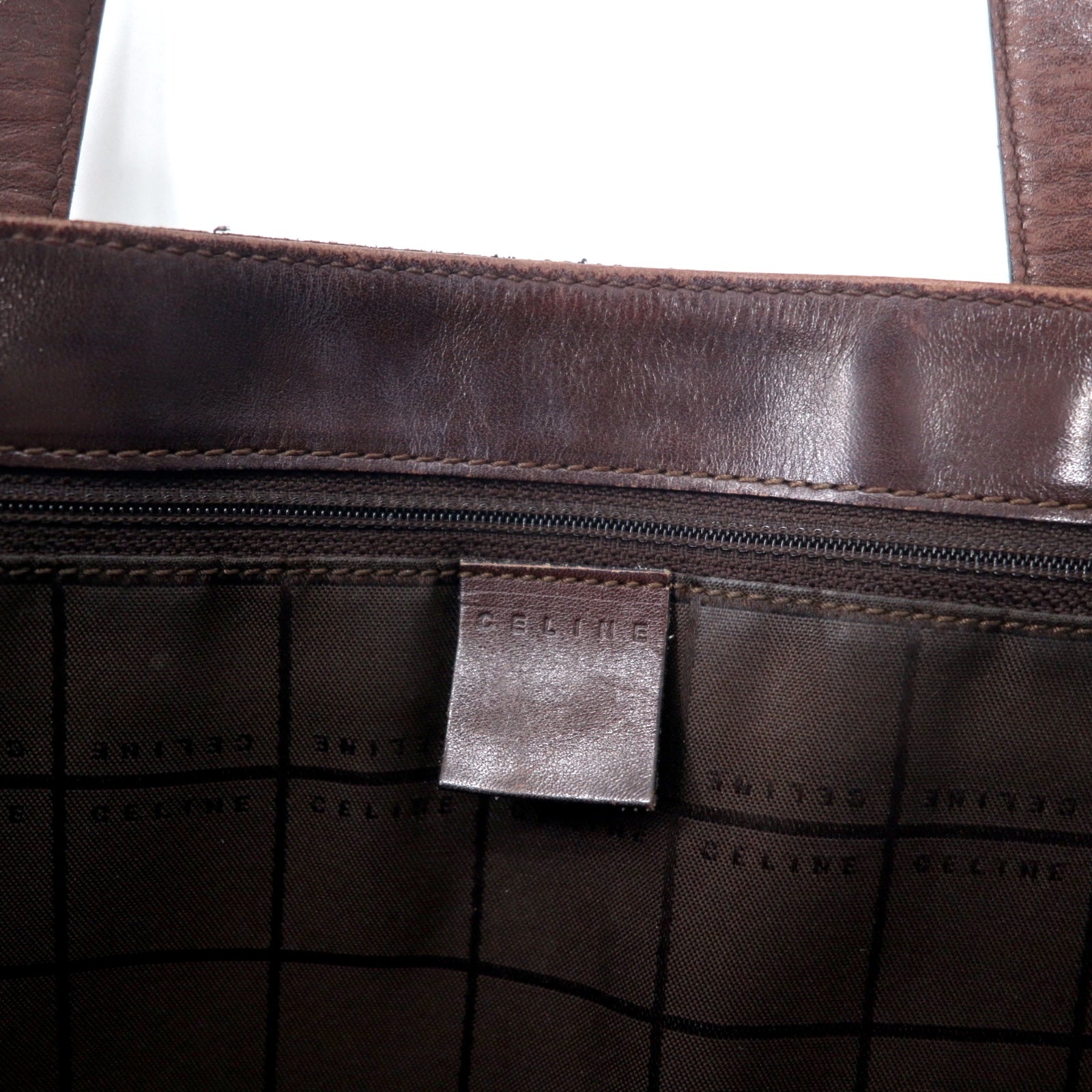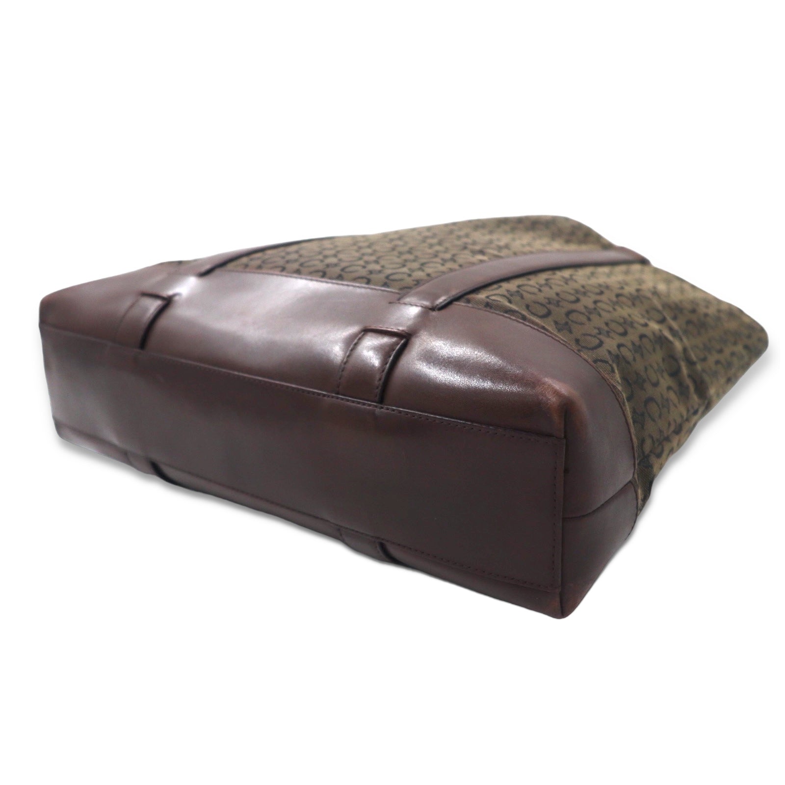 CELINE イタリア製 オールド Cマカダム ミニ トートバッグ ブラウン キャンバス レザー トリオンフ MC99/2