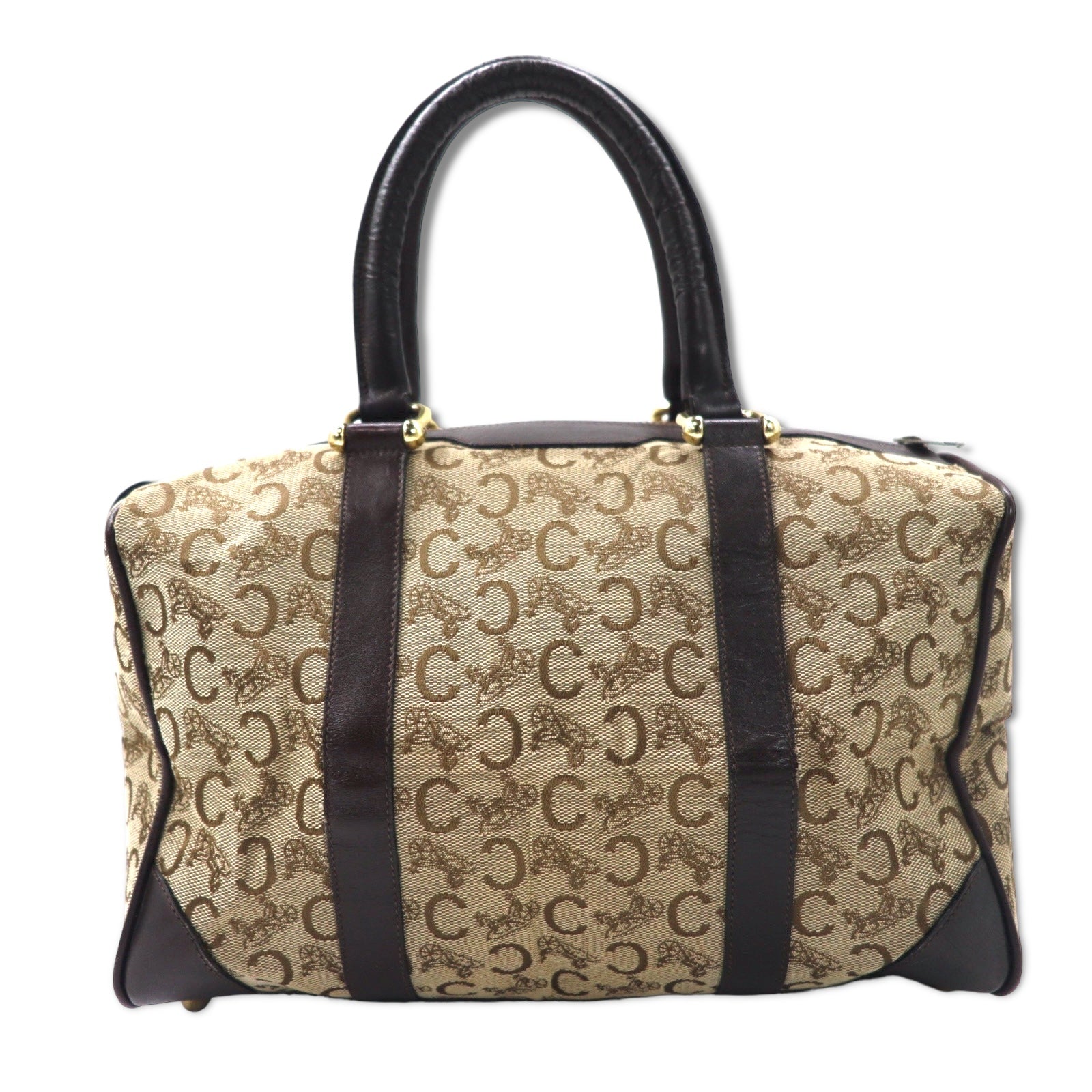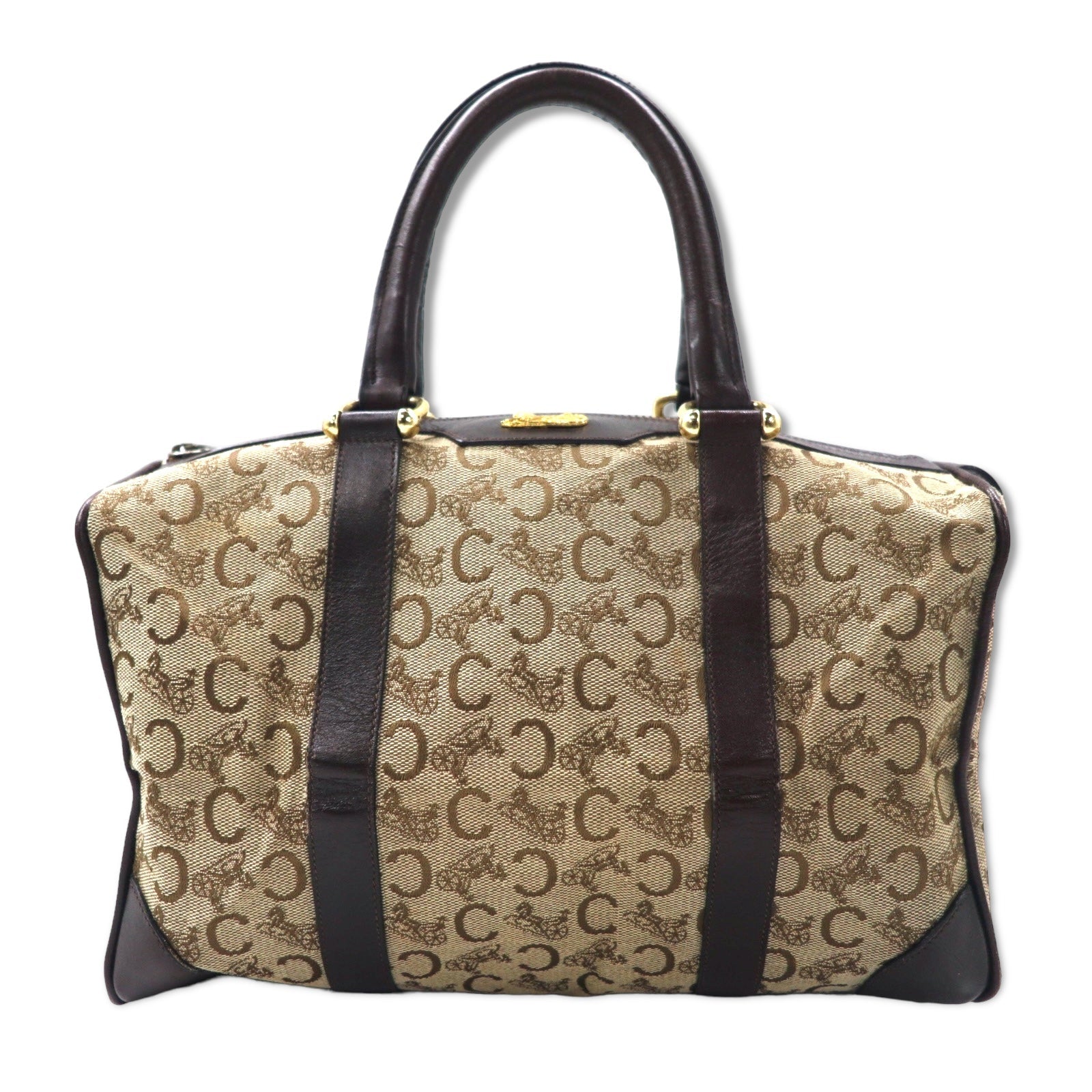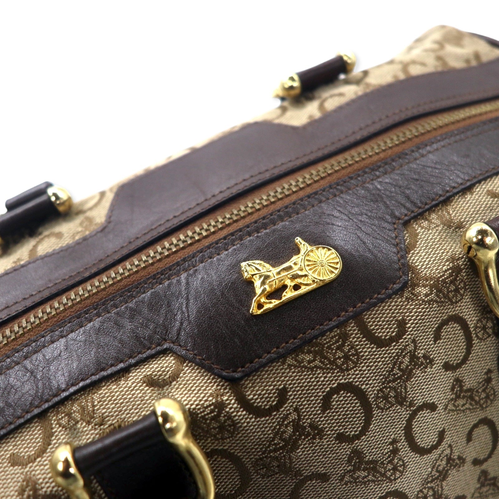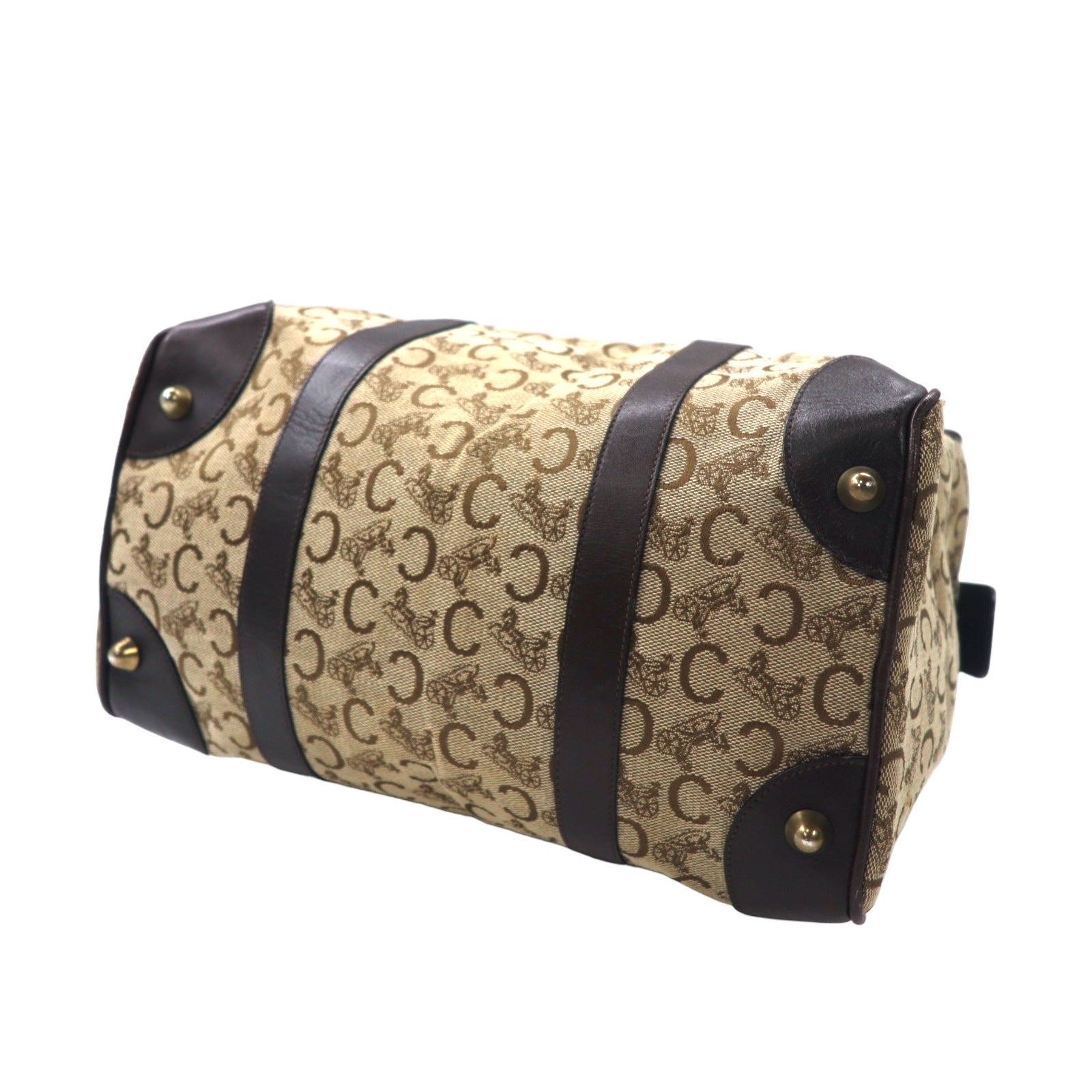 CELINE イタリア製 オールド Cマカダム ミニ ボストンバッグ ブラウン キャンバス レザー サルキー 馬車