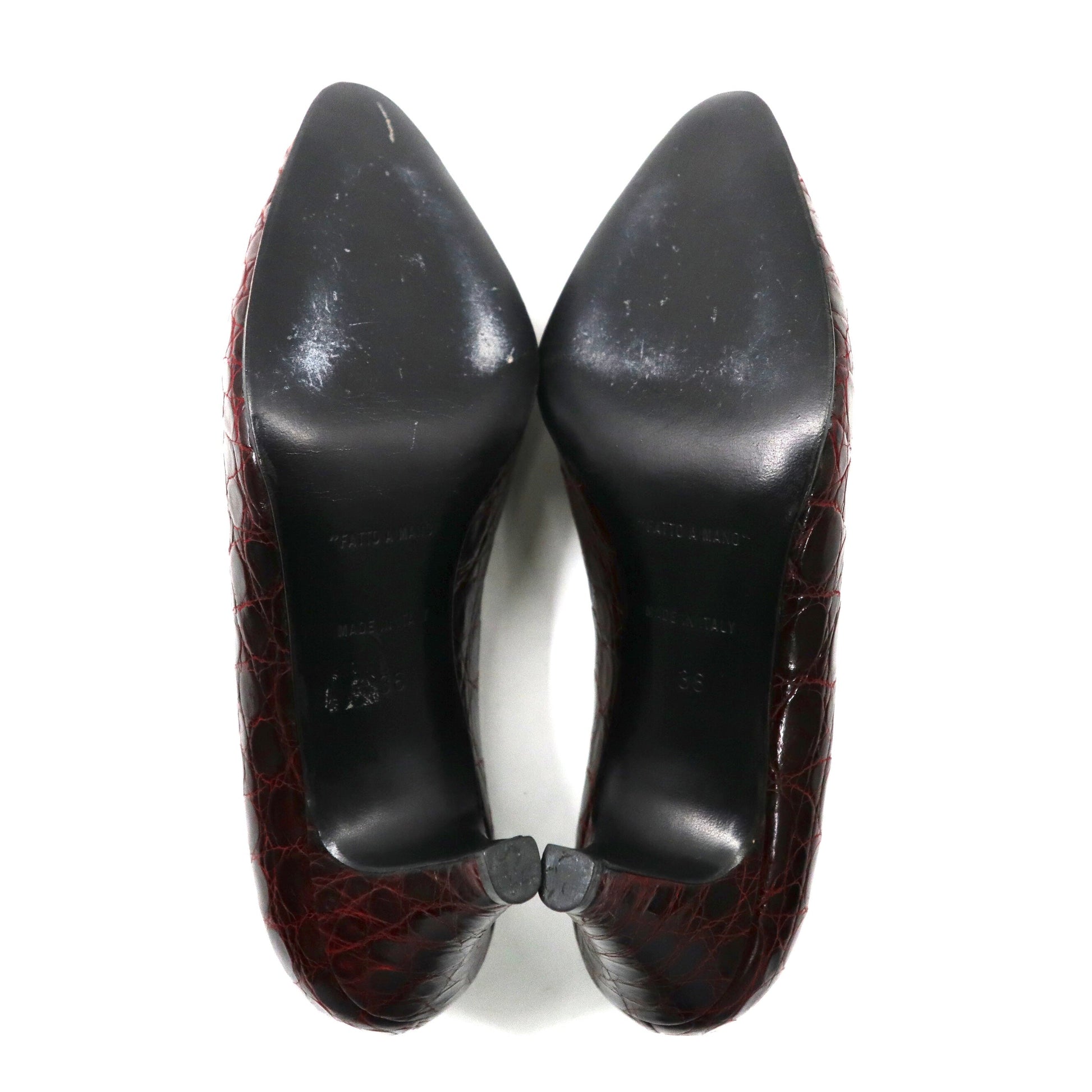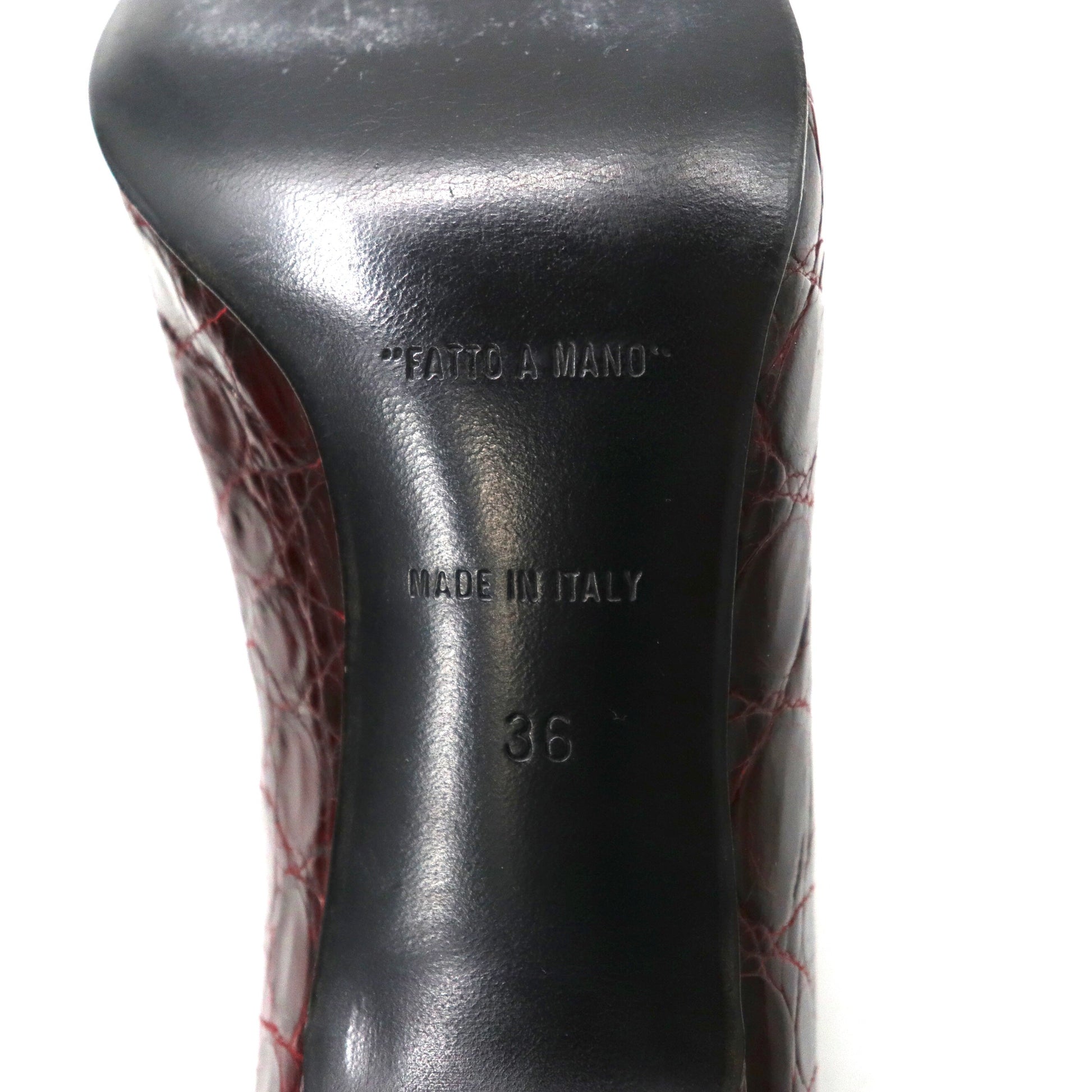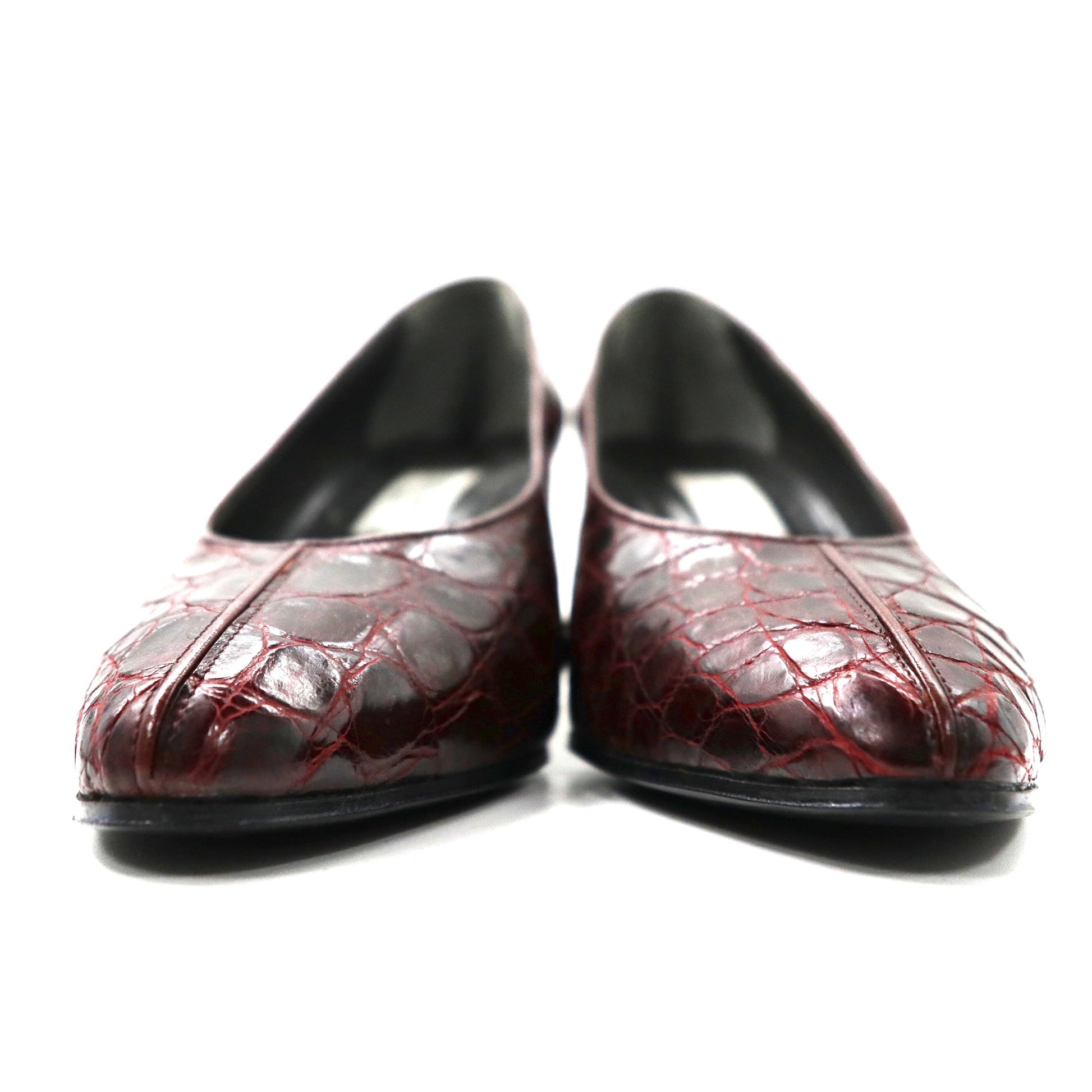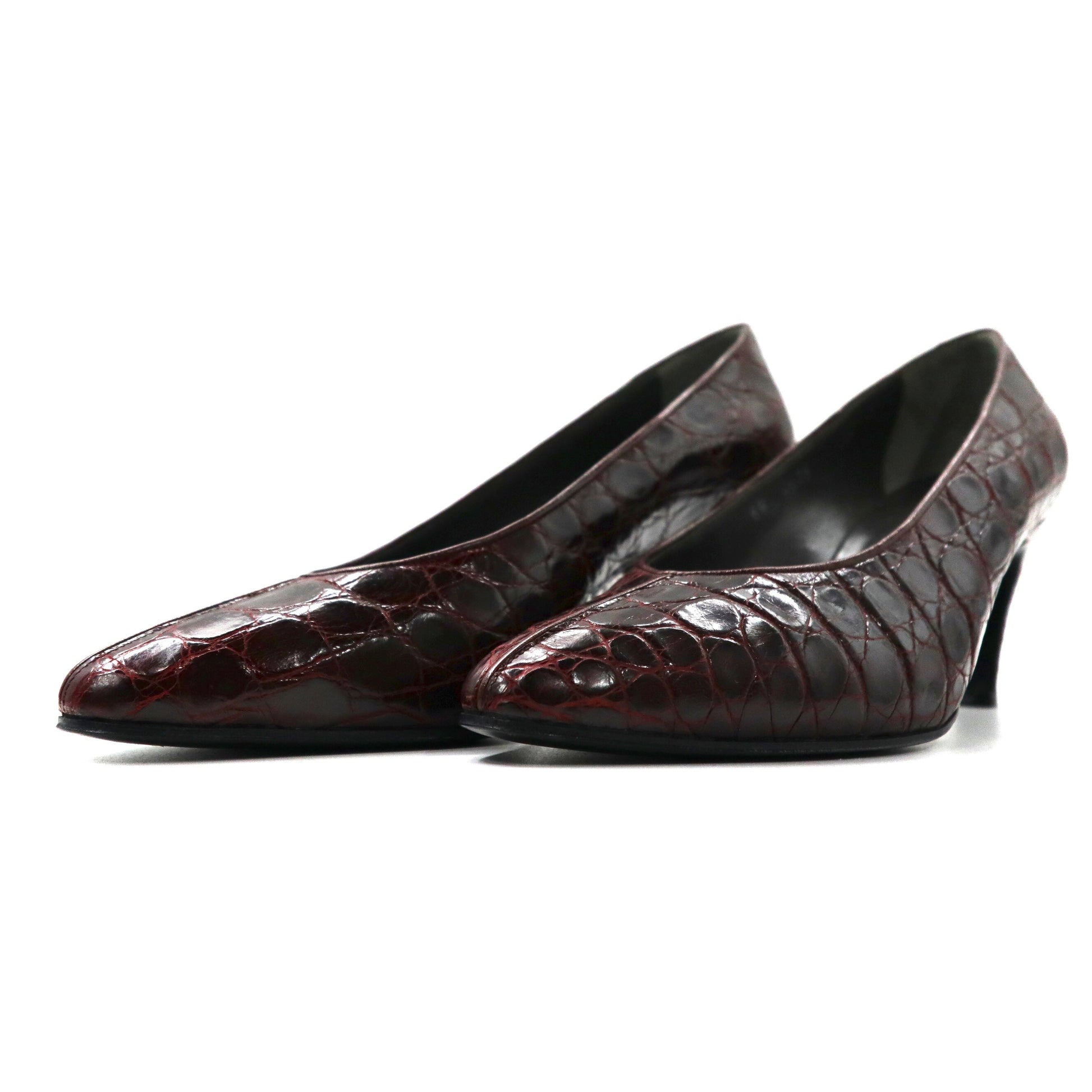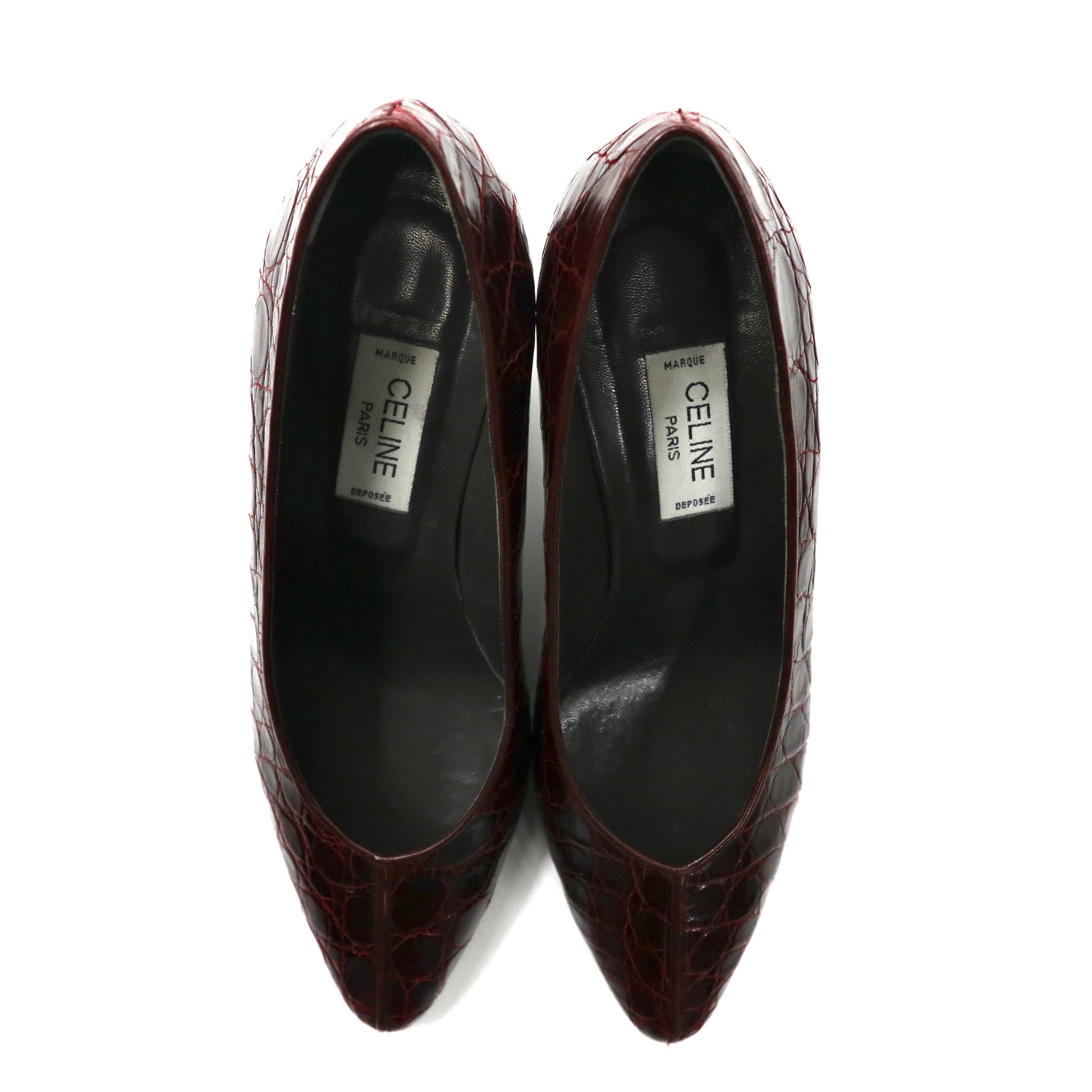 CELINE ハイヒール パンプス 23cm ボルドー レザー クロコダイル 型押し 68 4025 イタリア製