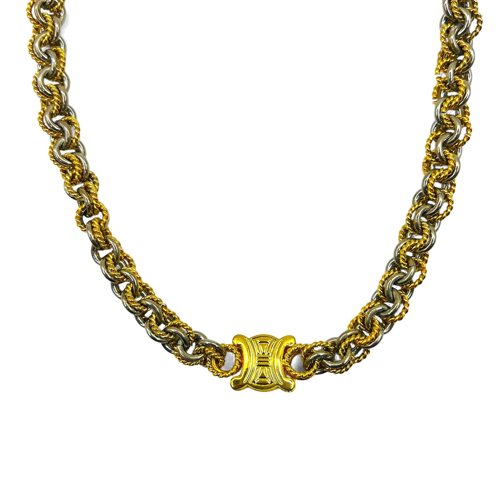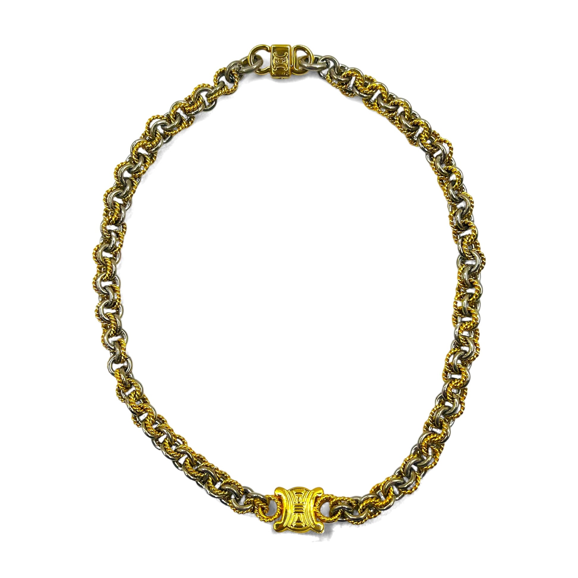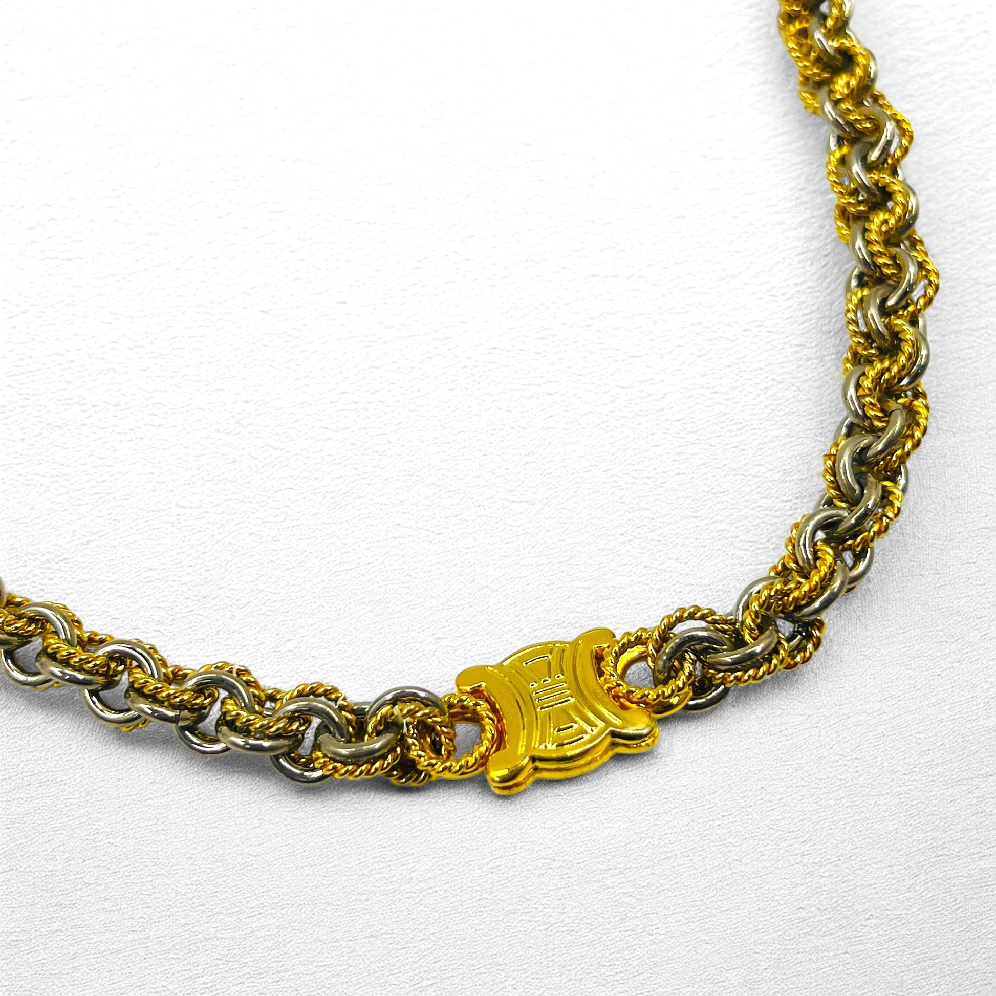 CELINE ヴィンテージ チェーン ネックレス チョーカー ゴールド シルバー トリオンフ