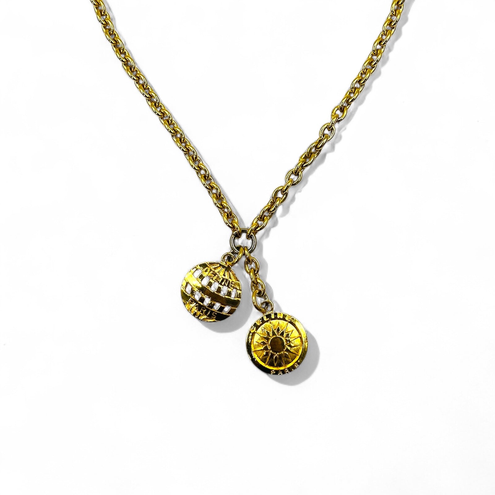CELINE ヴィンテージ チャーム ネックレス ペンダント ゴールド チェーン 太陽 イタリア製