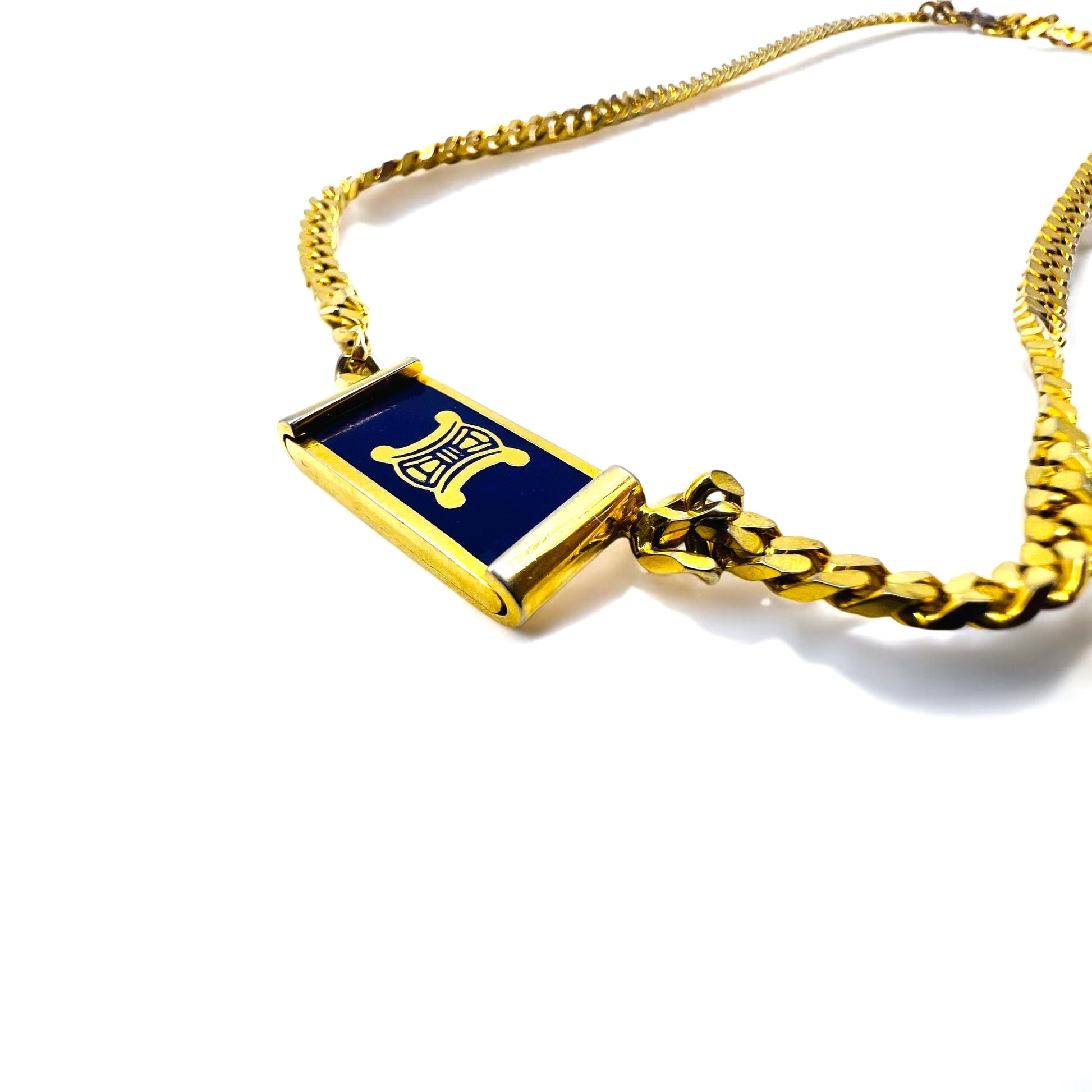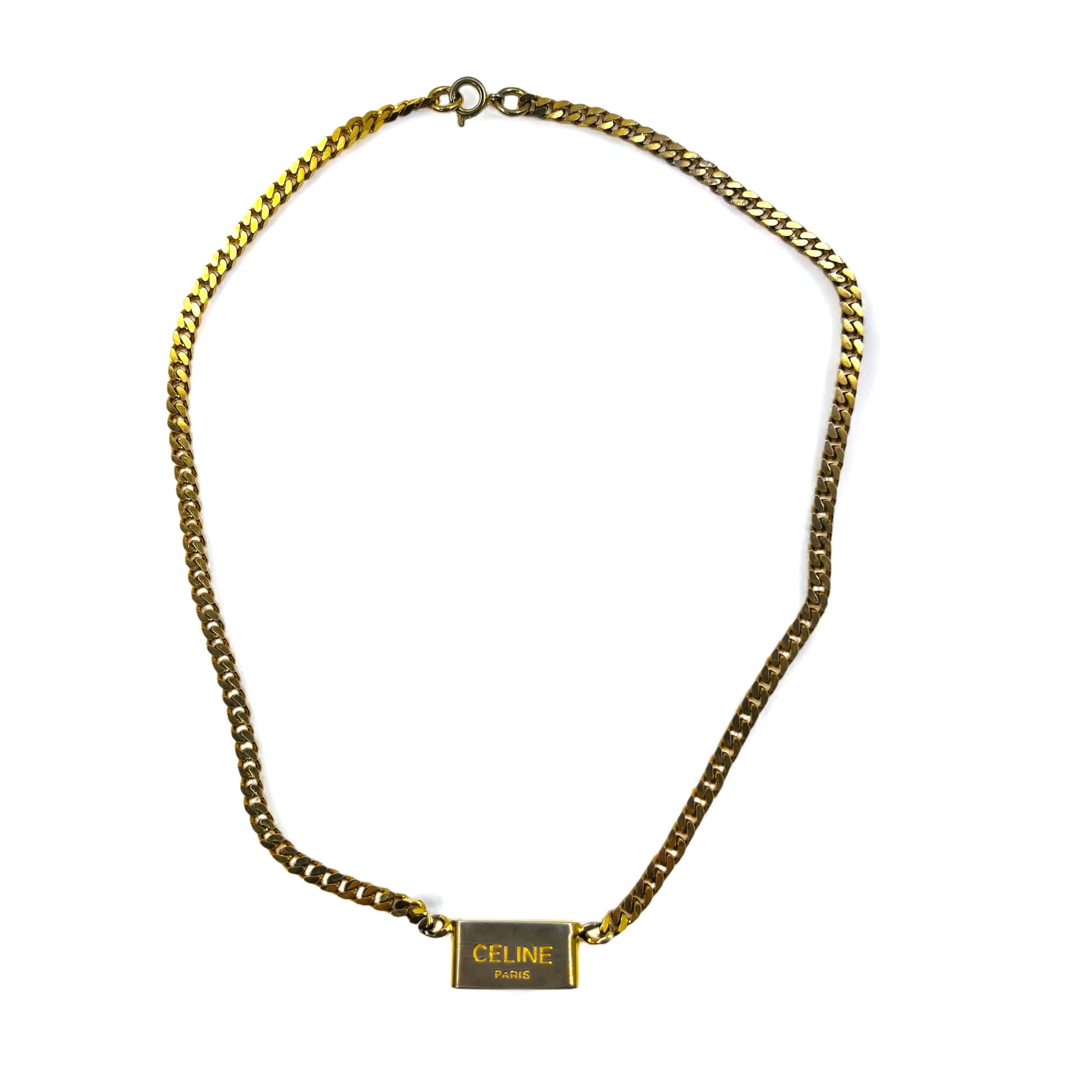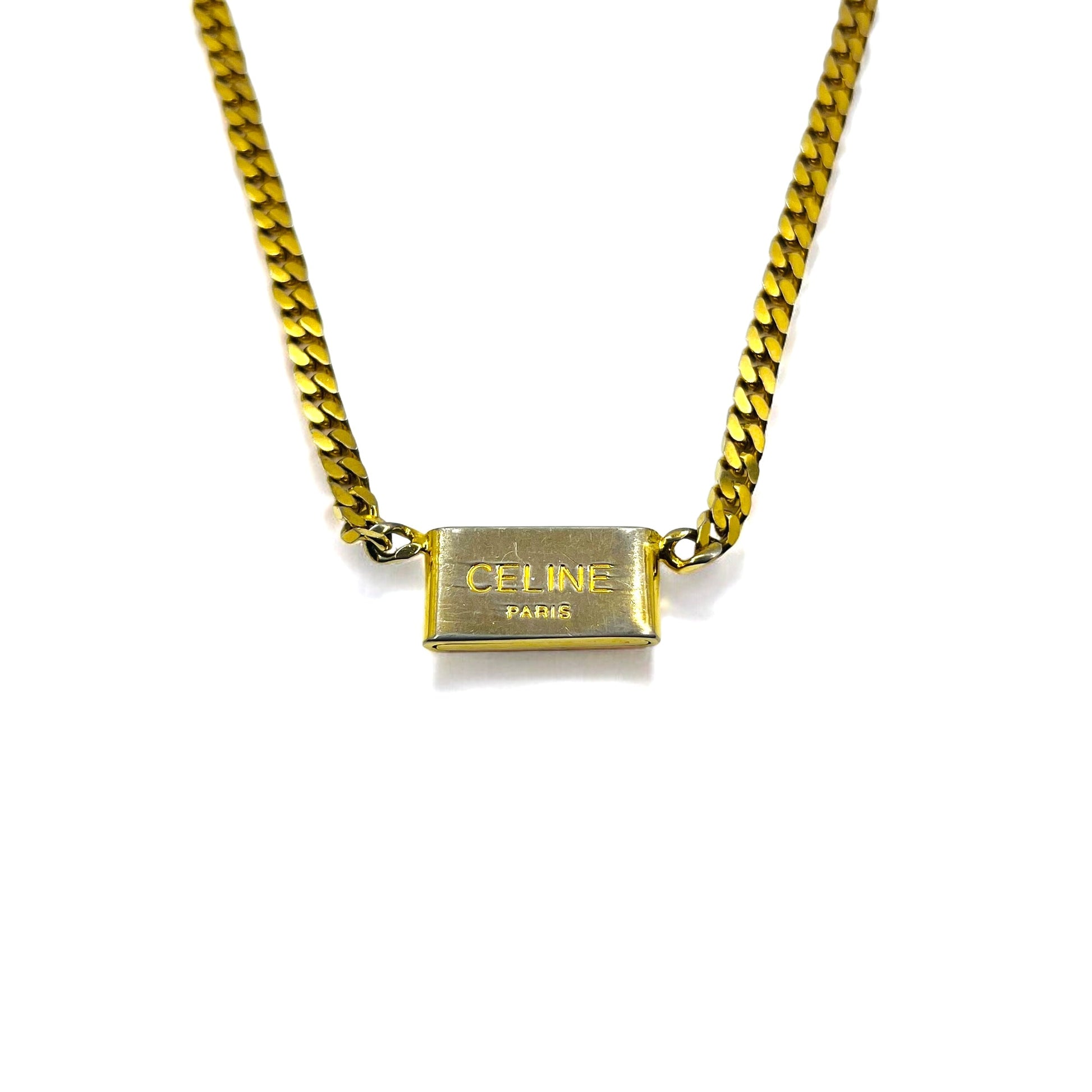 CELINE ヴィンテージ ロゴプレート チョーカー ネックレス ゴールド 喜平 チェーン マカダム