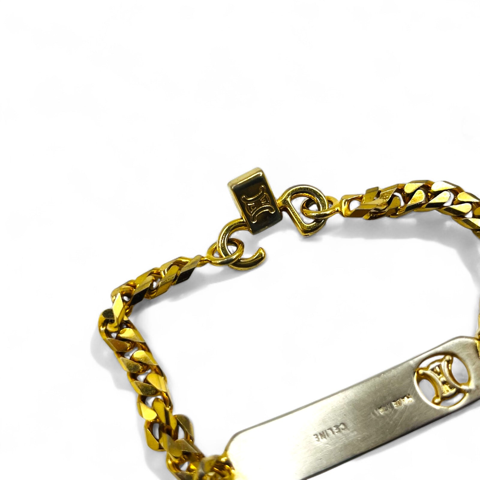 CELINE ヴィンテージ 喜平 チェーン ブレスレット ゴールド トリオンフ IDプレート イタリア製