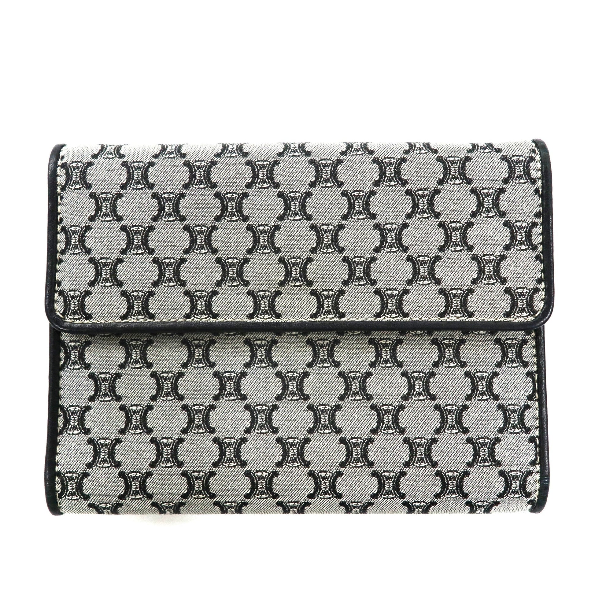 CELINE 3つ折り財布 グレー キャンバス レザー マカダム柄 モノグラム CE00/34 イタリア製