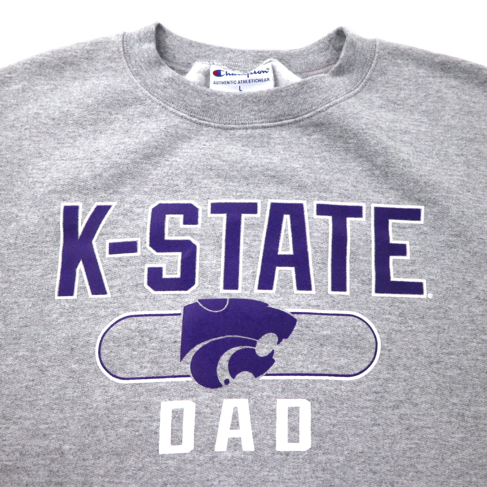 Champion カレッジ プリント スウェット 2XL グレー コットン 裏起毛 NCAA K-STATE DAD ビッグサイズ エルサルバドル製
