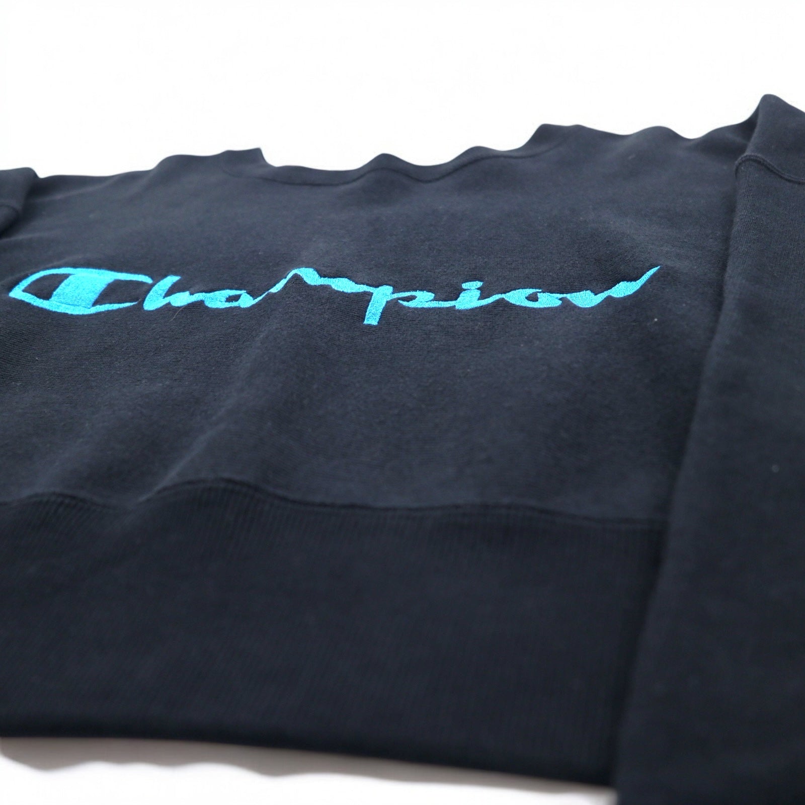 Champion クロップド リバースウィーブ REVERSE WEAVE スウェット M ブラック スクリプトロゴ刺繍 COMPACT VOLUME TOP CWSL009
