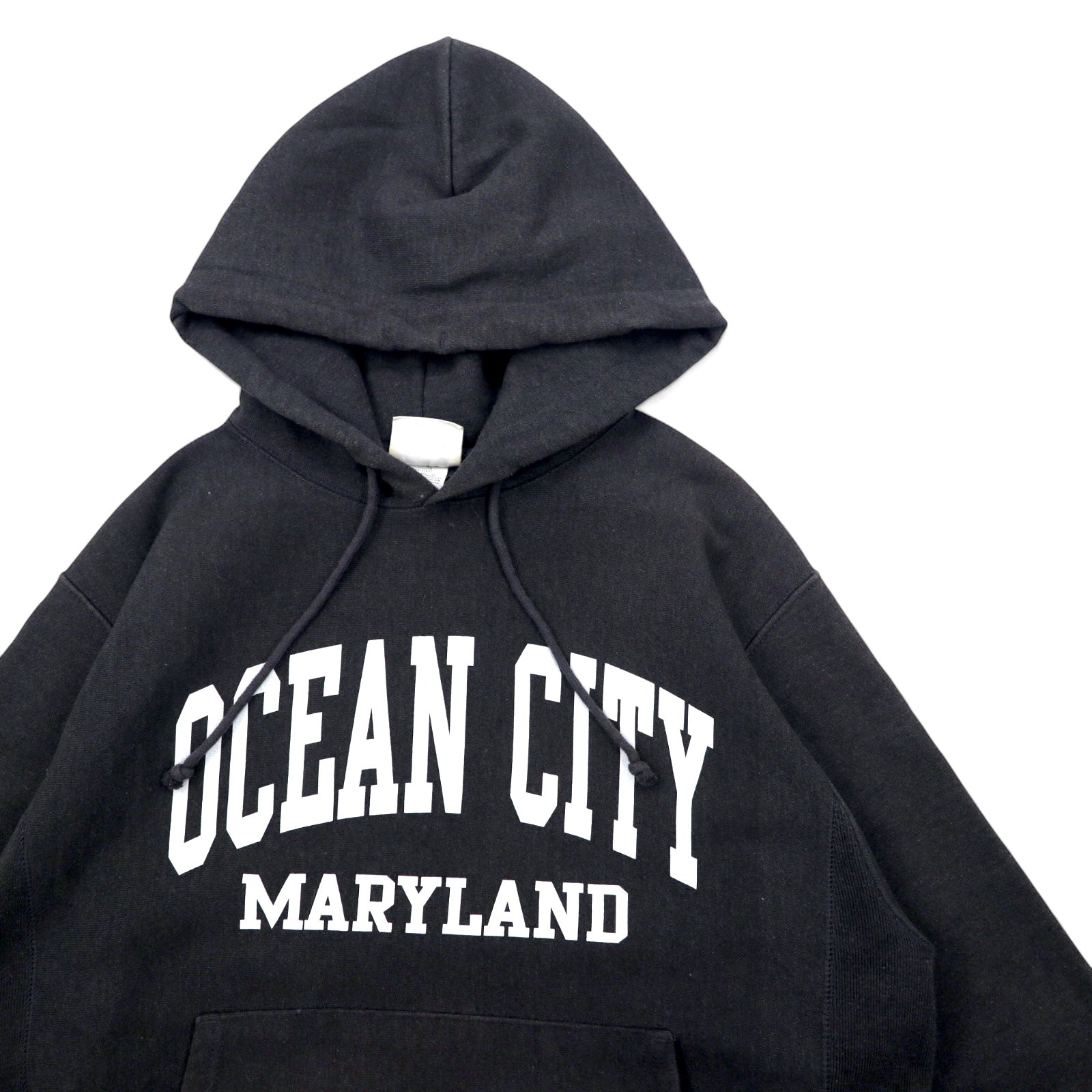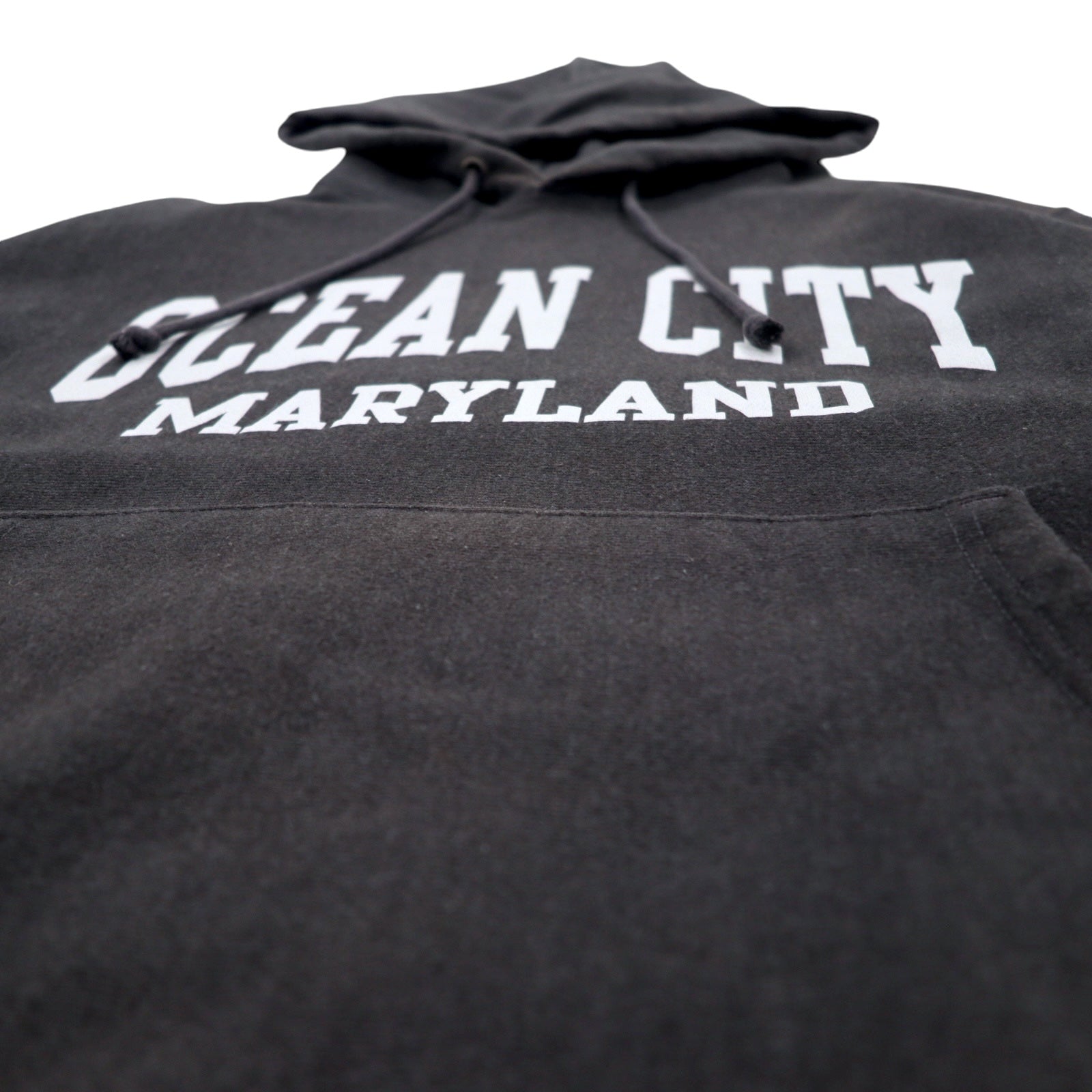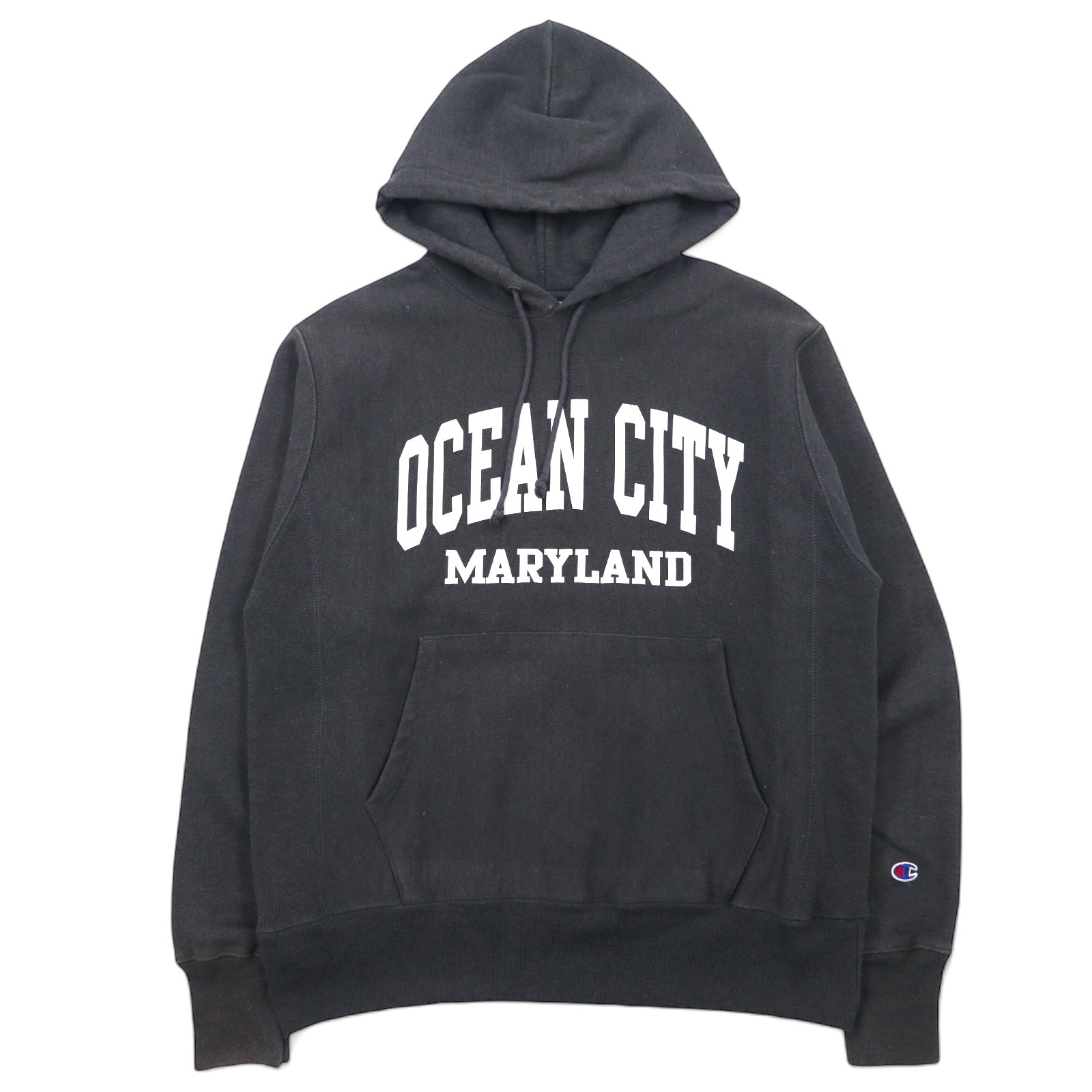 Champion リバースウィーブ プルオーバーパーカー XL グレー コットン 青単タグ 復刻 カレッジ アーチロゴ 2段プリント
