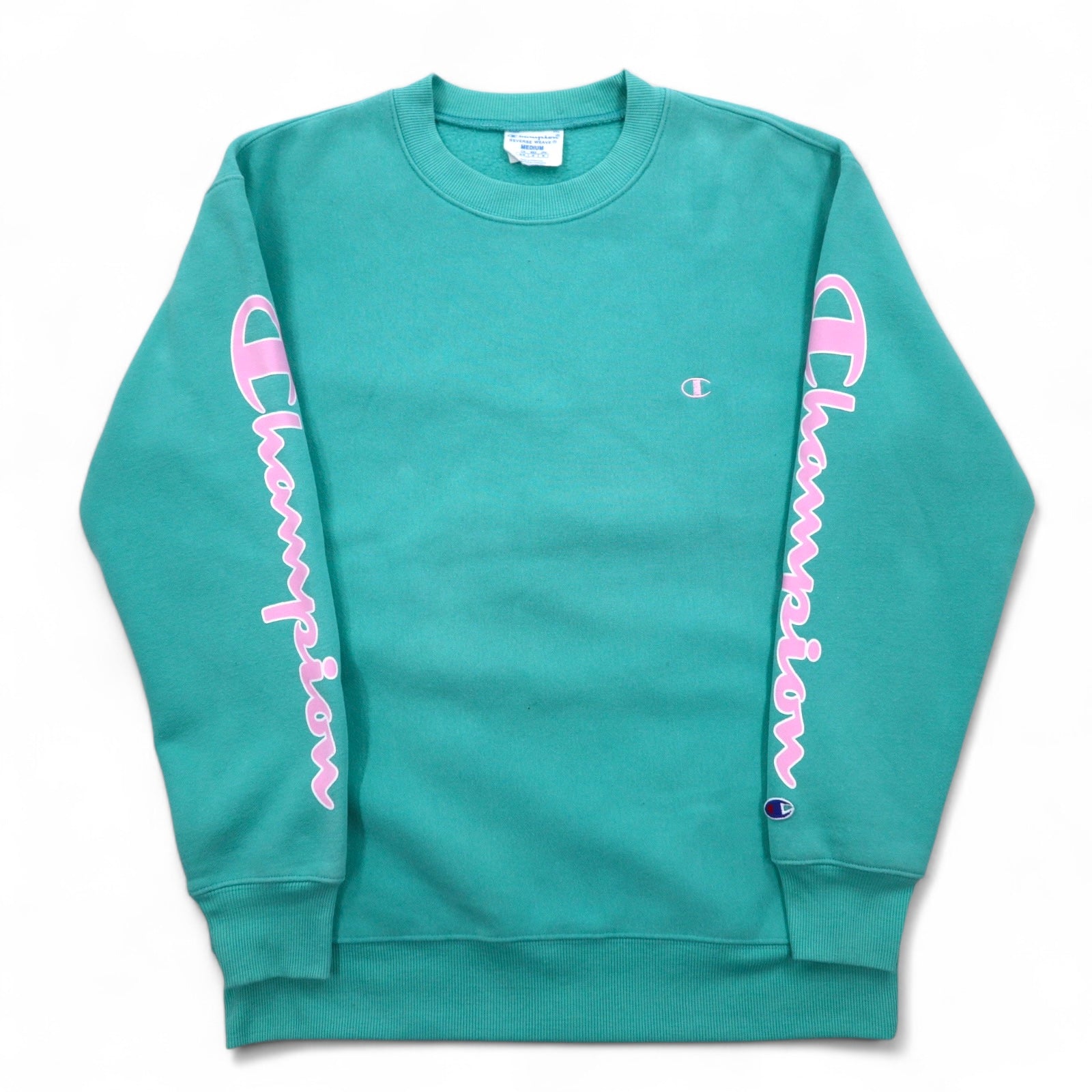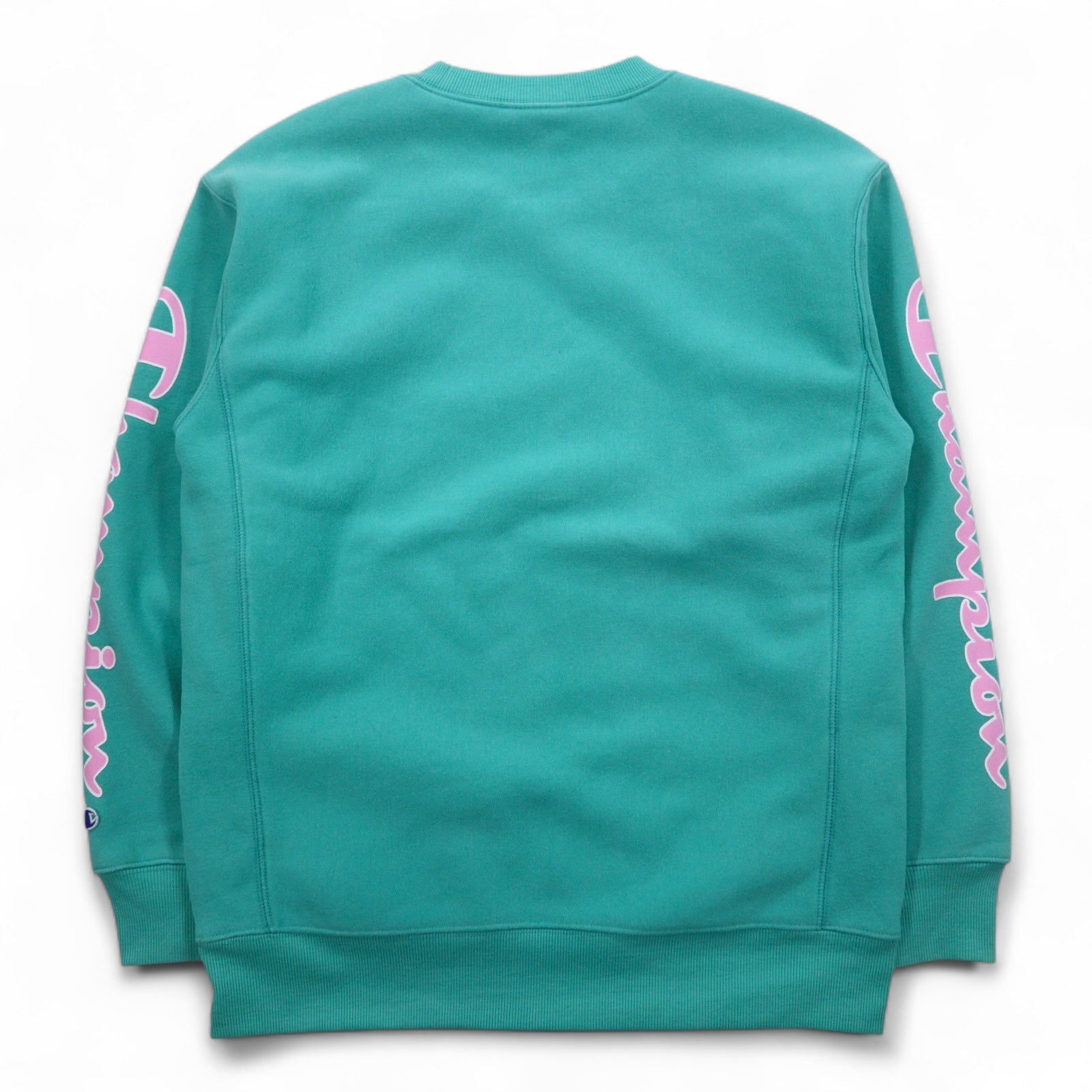 Champion リバースウィーブ REVERSE WEAVE スウェット M グリーン 裏起毛 青単タグ 復刻 袖プリント ホンジュラス製