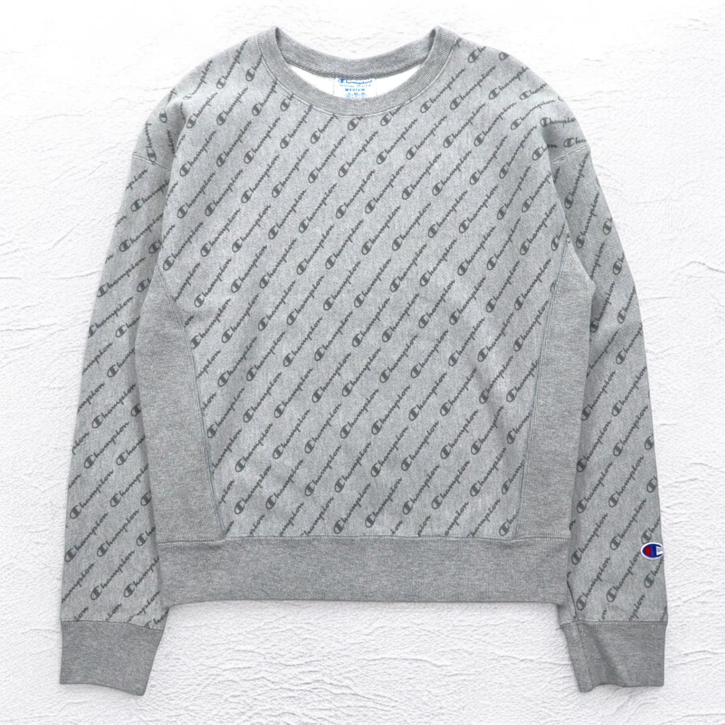 Champion リバースウィーブ REVERSE WEAVE 総柄 スウェット XL グレー 青単タグ 復刻 ホンジュラス製