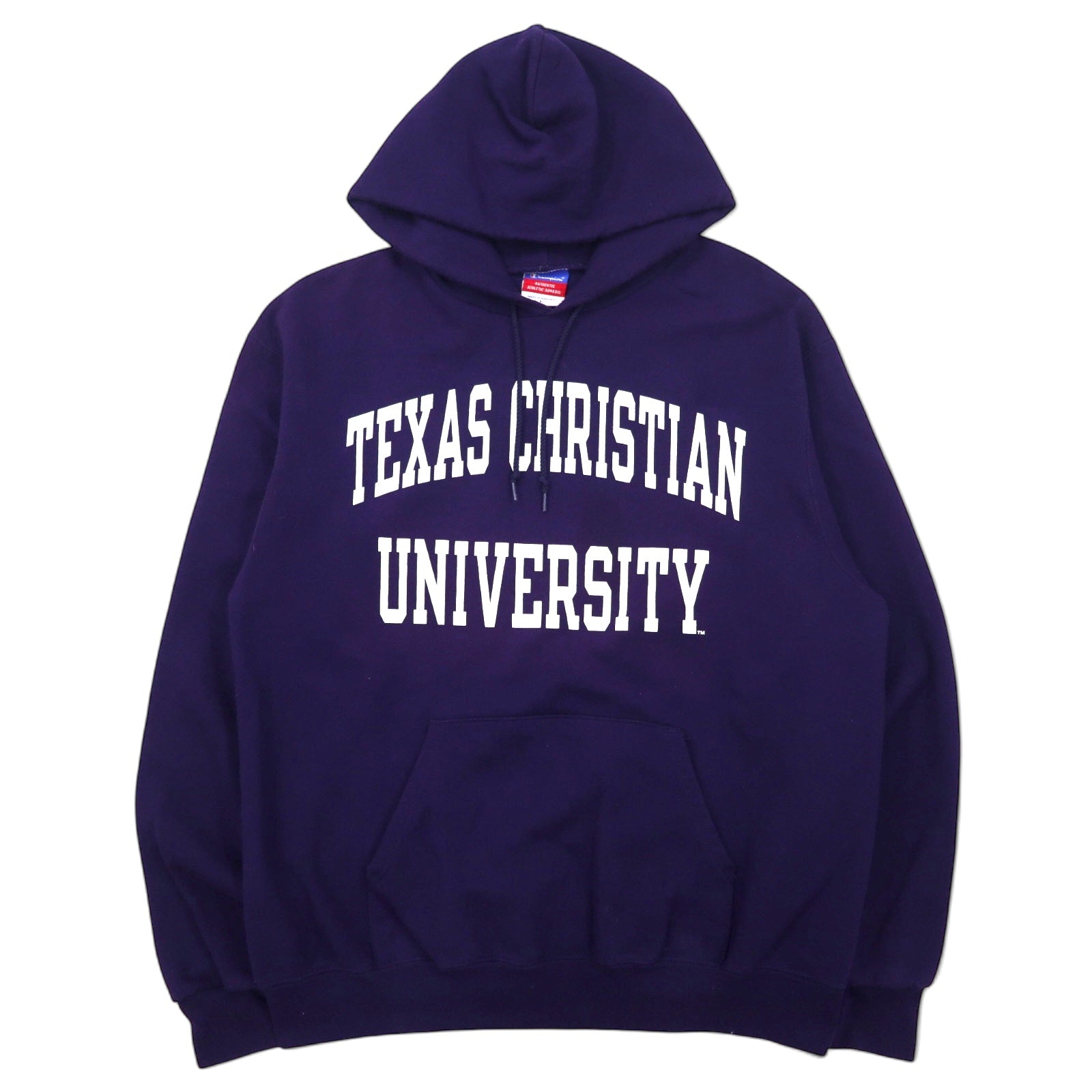 Champion 00年代 カレッジ プリント プルオーバーパーカー L ネイビー コットン 裏起毛 TEXAS CHRISTIAN UNIVERSITY アーチロゴ 2段プリント ホンジュラス製