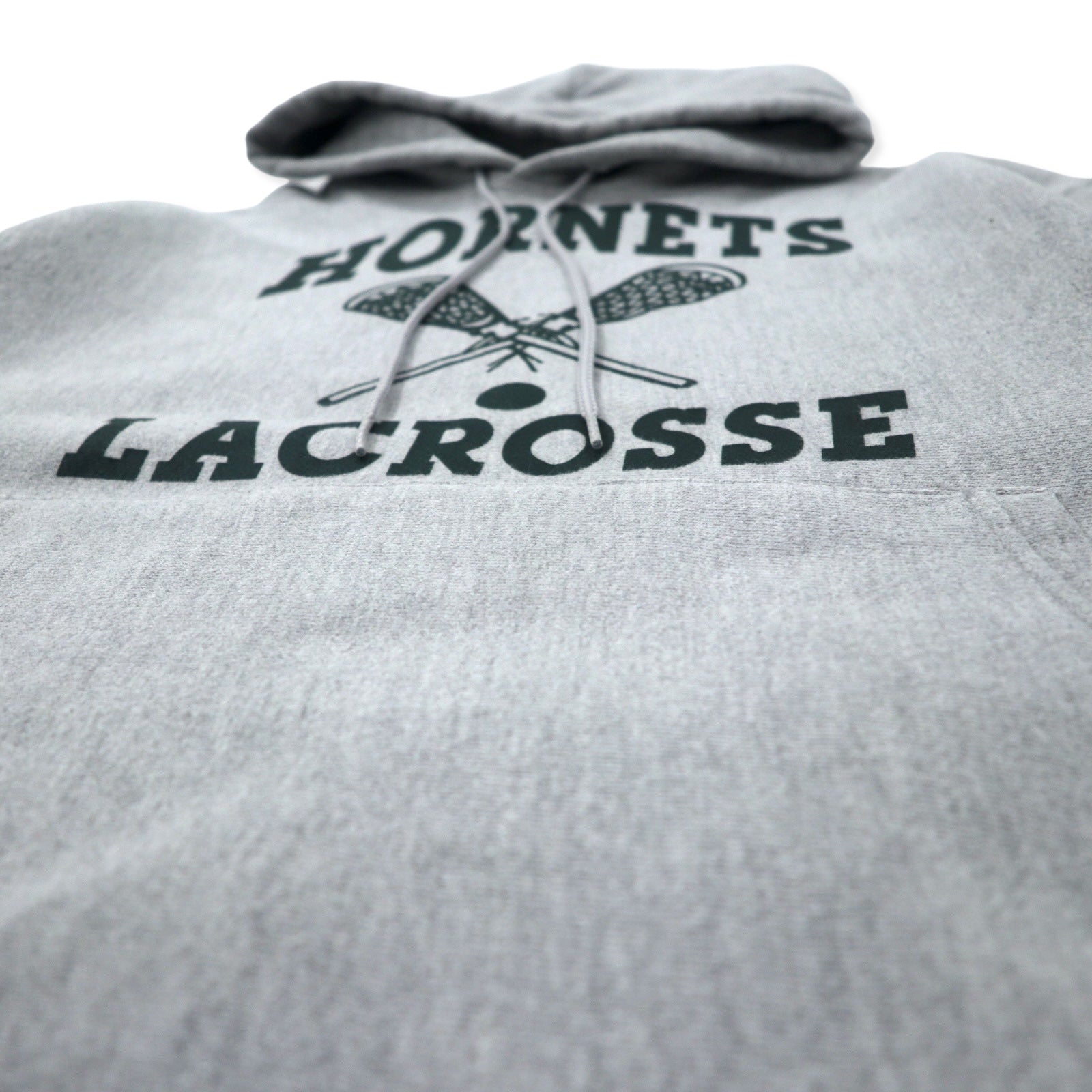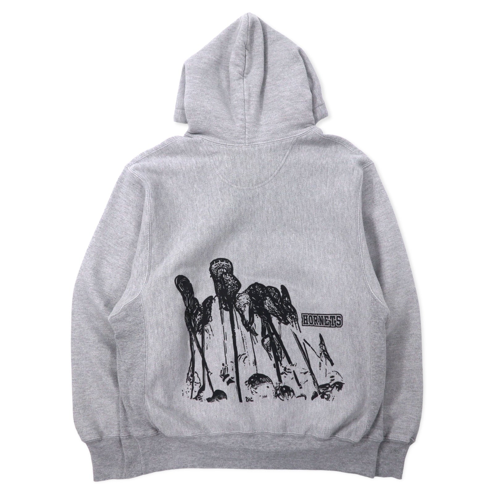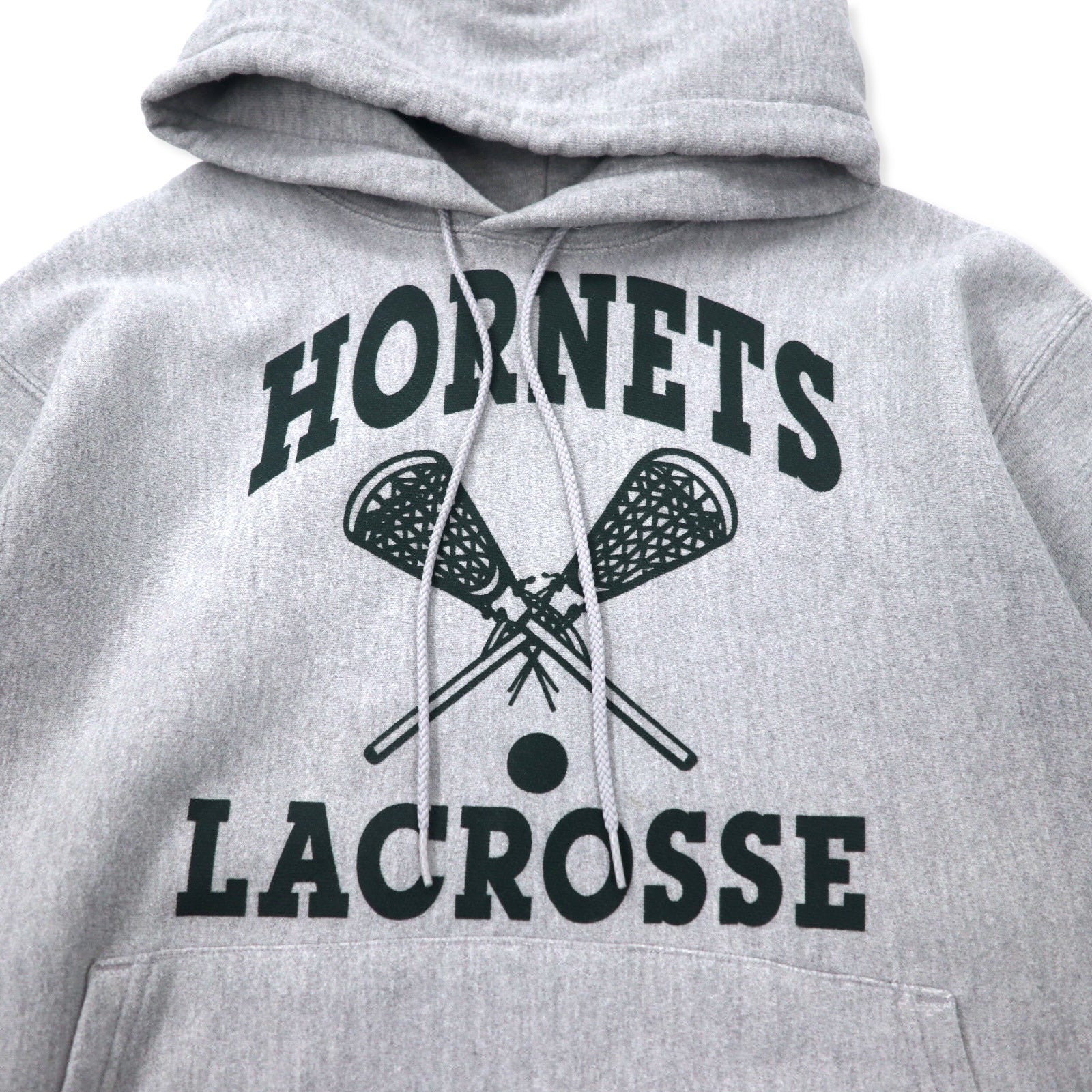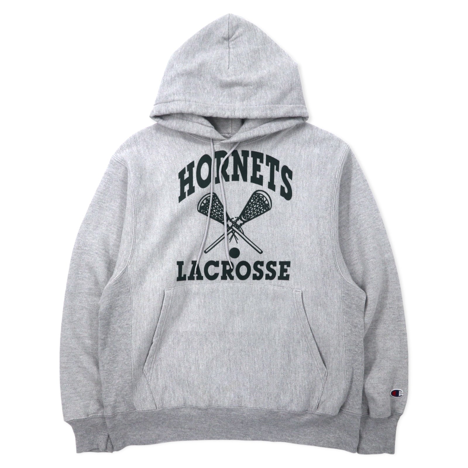 Champion 00年代 プレミアム リバースウィーブ パーカー M グレー コットン 裏起毛 HORNETS LACROSSE アーチロゴ 3段プリント PREMIUM REVERSE WEAVE