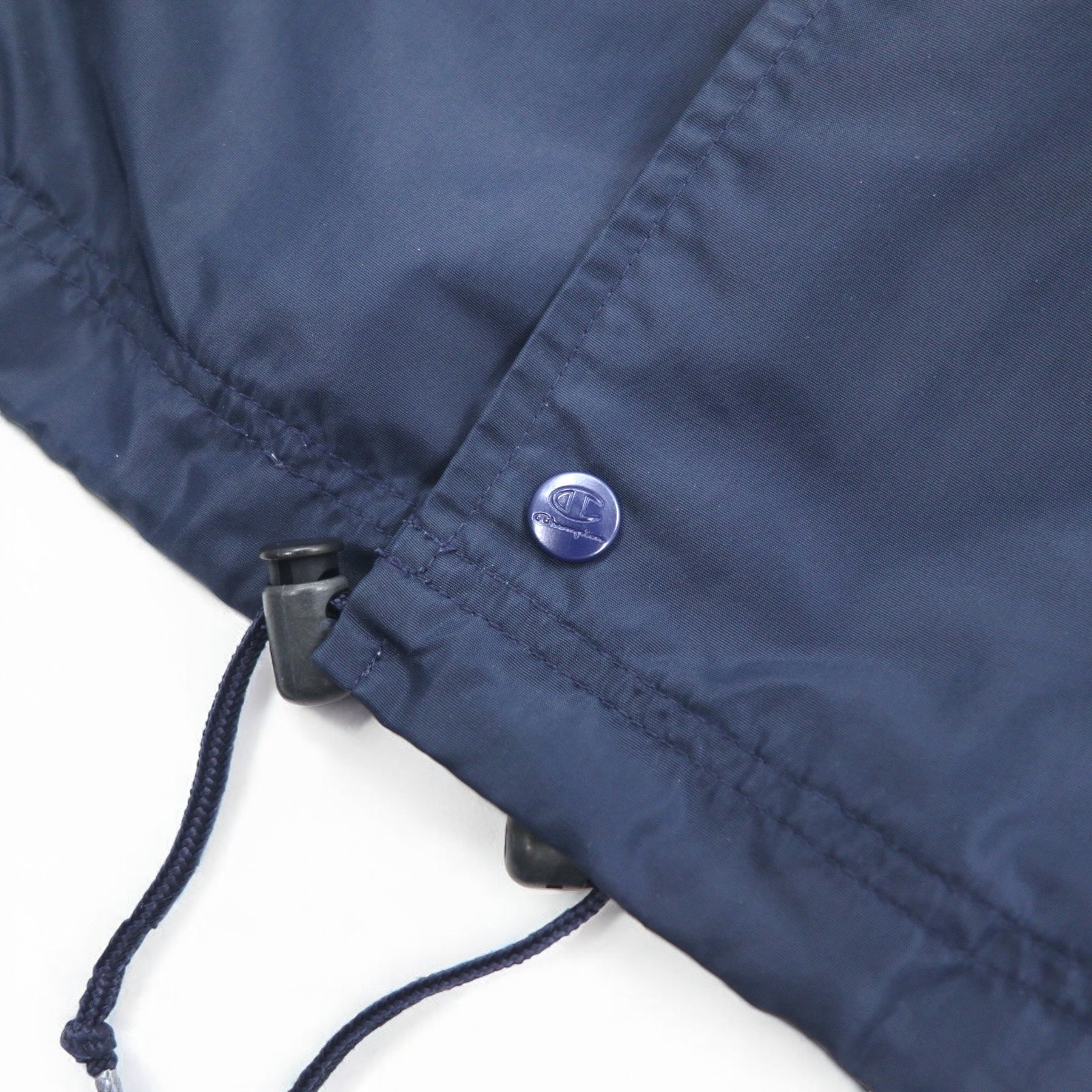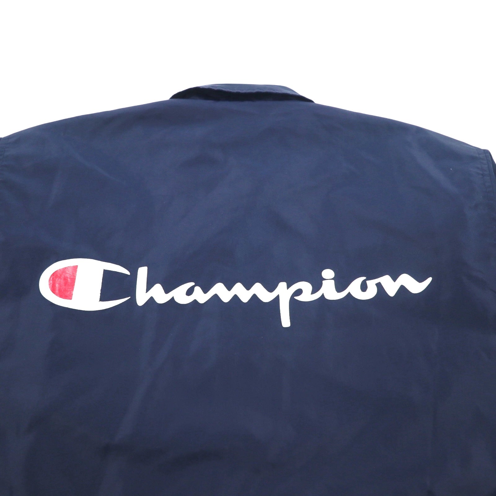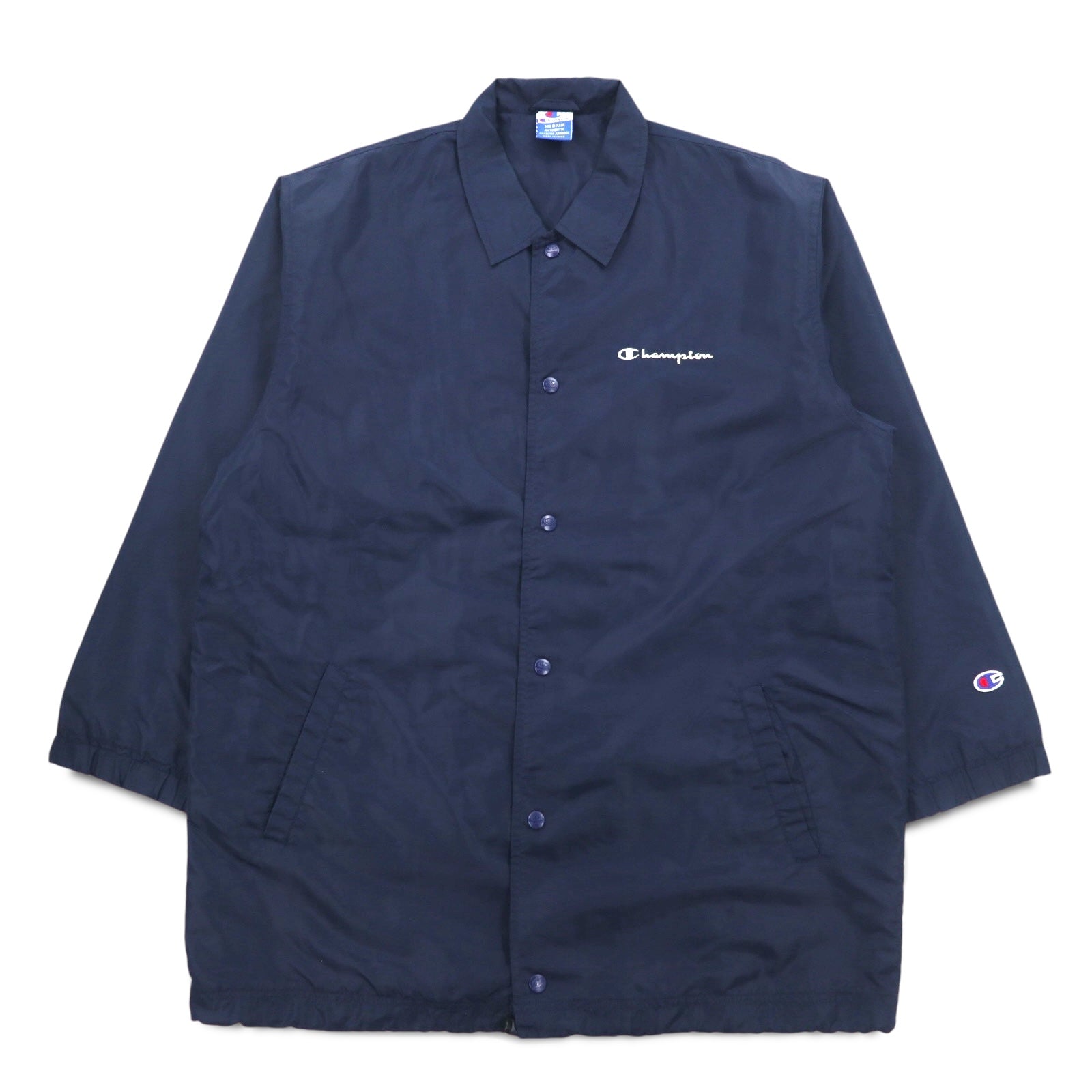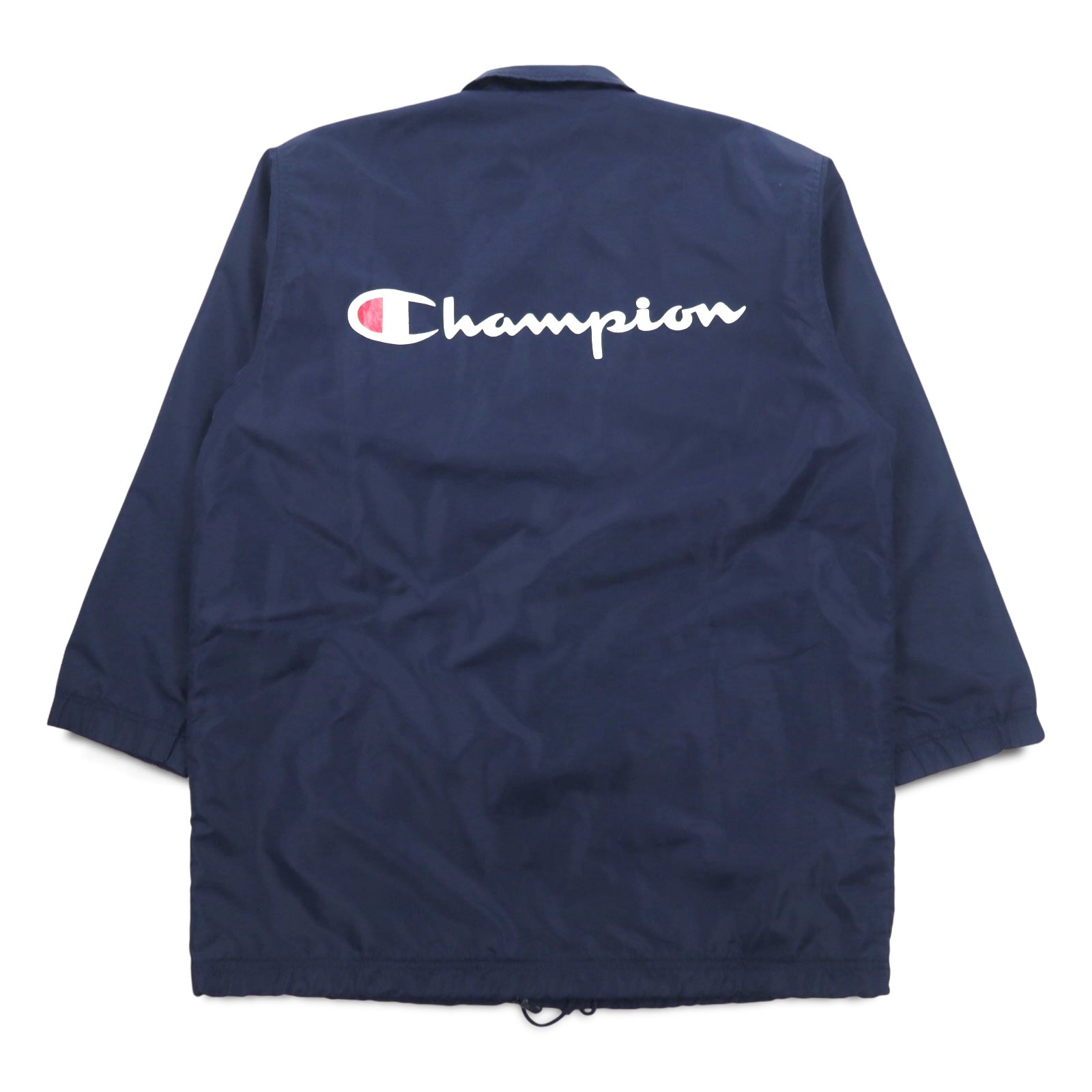 Champion 90年代 ロング コーチジャケット M ネイビー スクリプトロゴ バックプリント