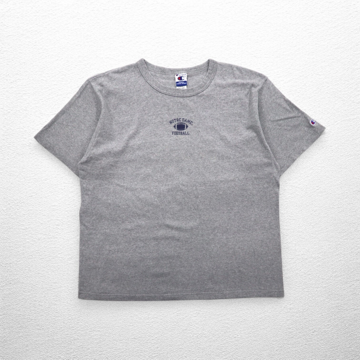 Champion 90年代 刺繍タグ Tシャツ XL グレー コットン NOTRE DAME FOOTBALL メキシコ製