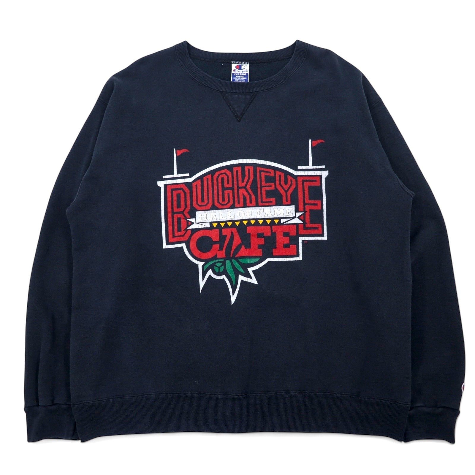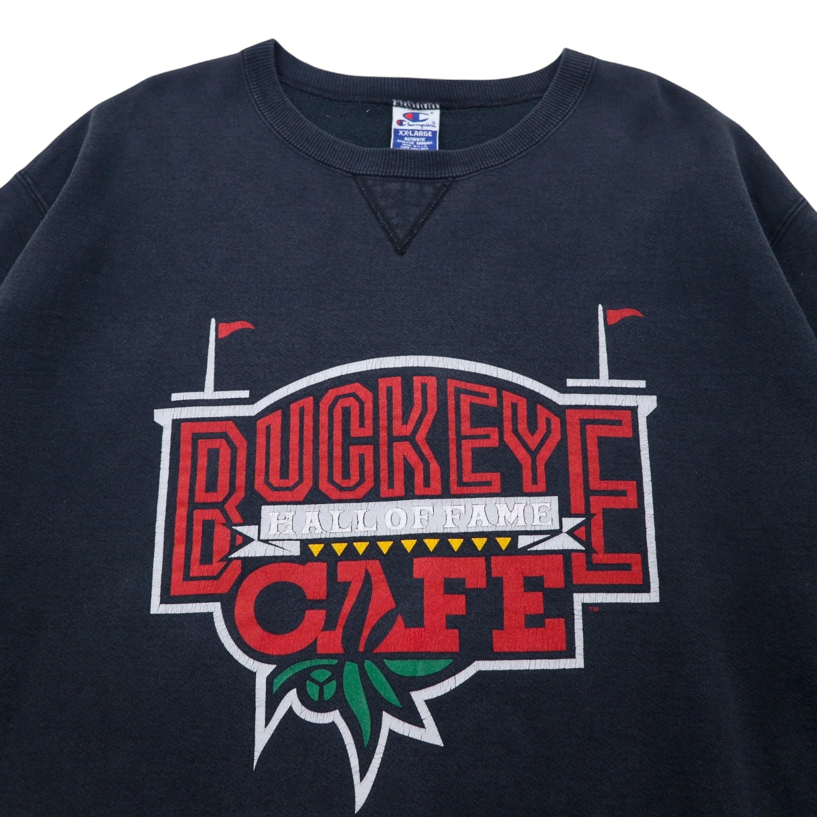 Champion 90年代 USA製 プリント スウェット XXL ブラック コットン BUCKEYE CAFE