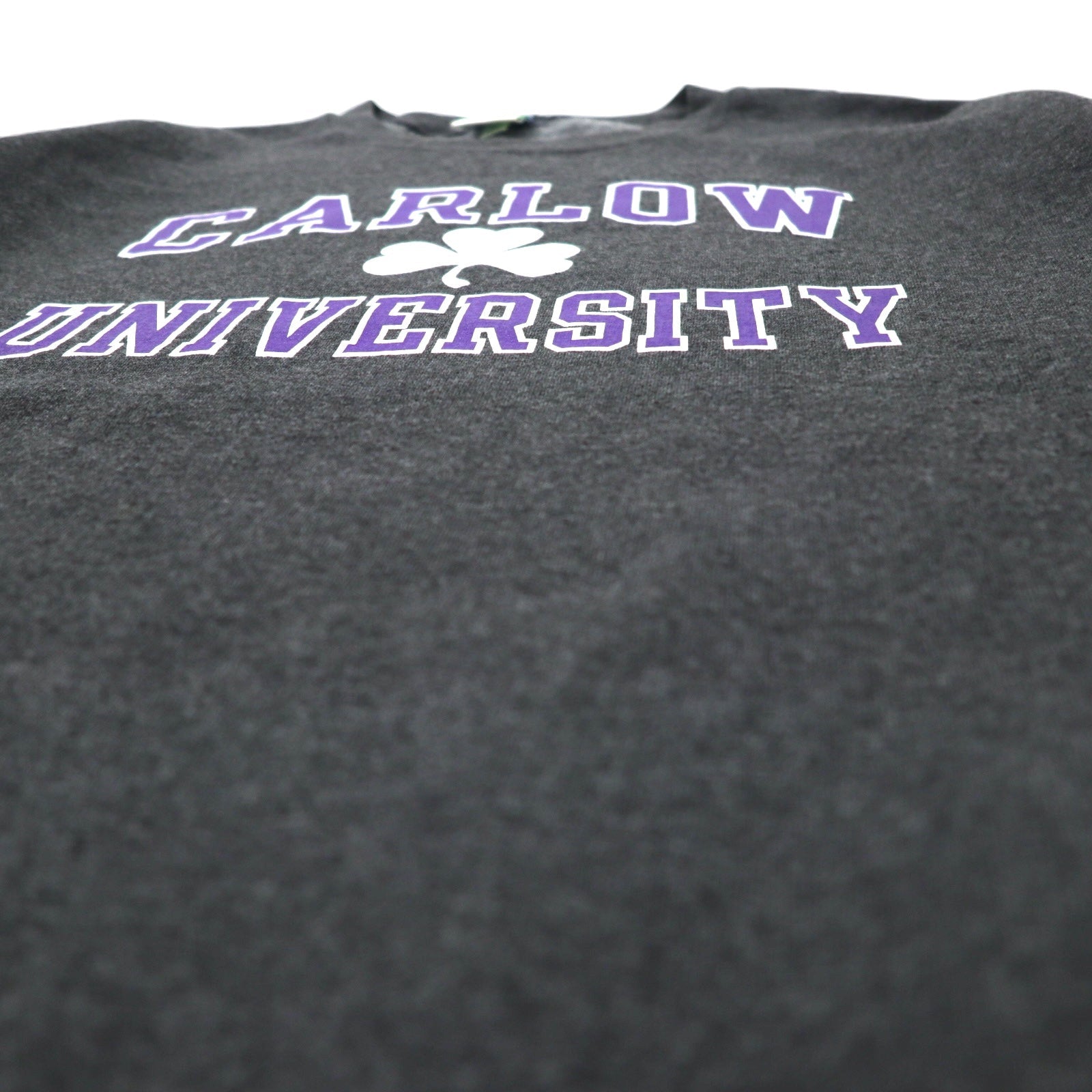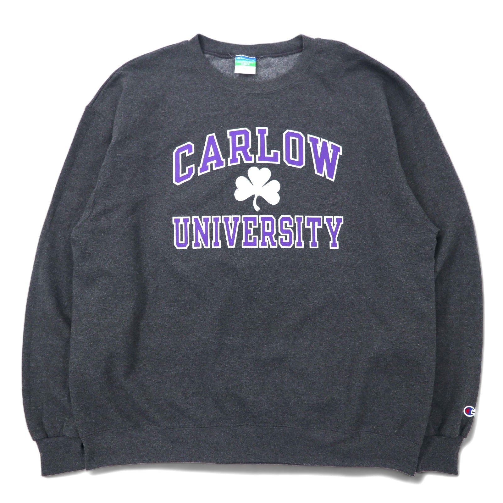 Champion ECO カレッジ プリント スウェット XL グレー コットン 裏起毛 CARLOW UNIVERSITY アーチロゴ 3段 ホンジュラス製