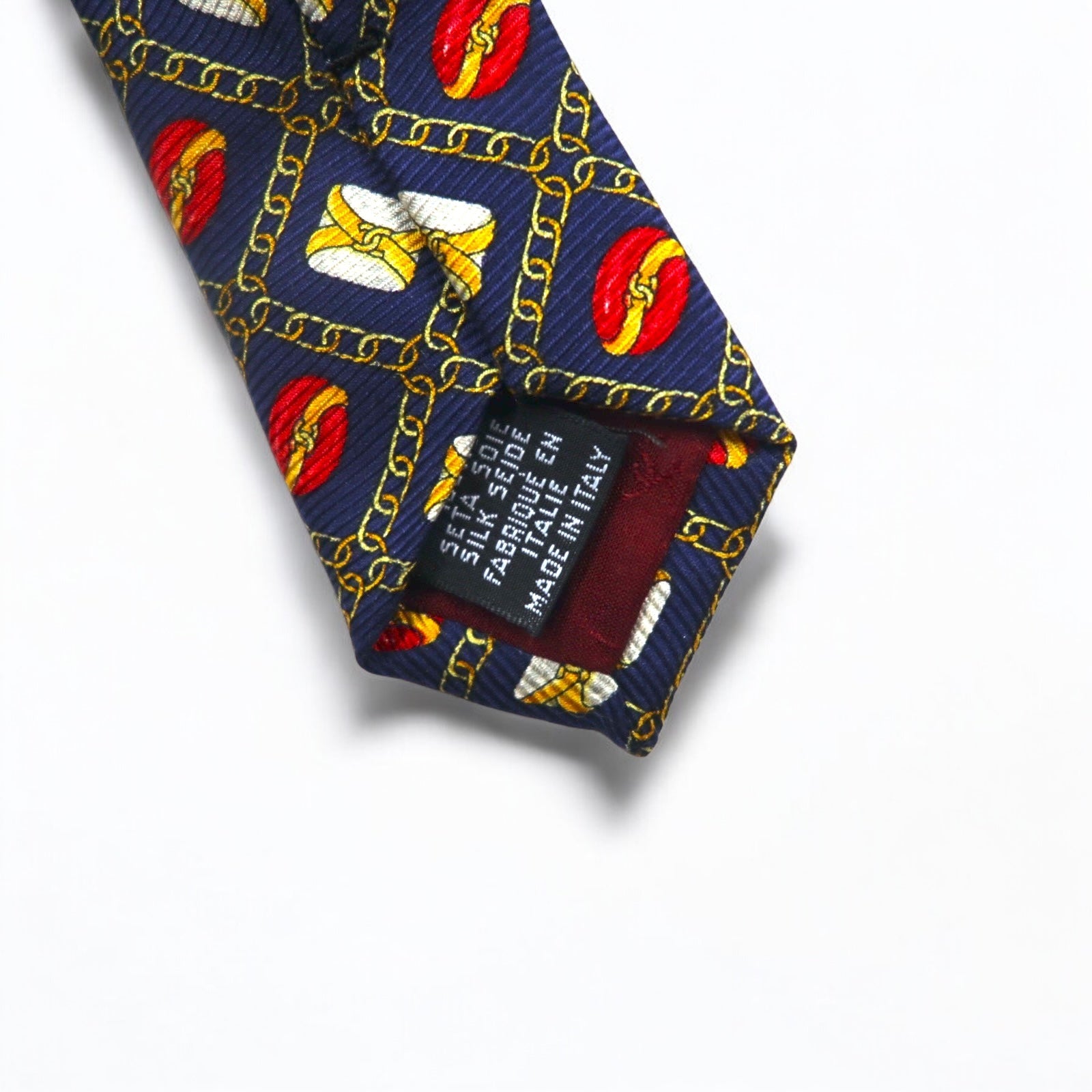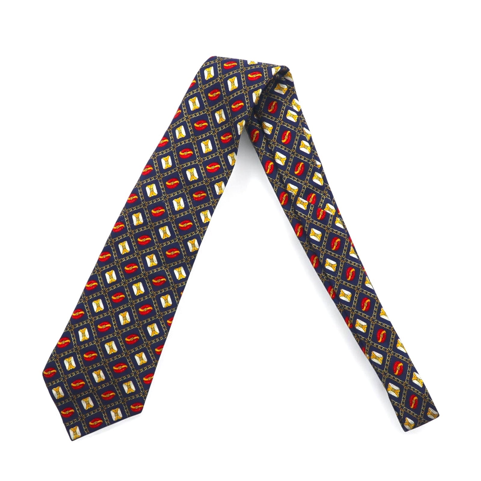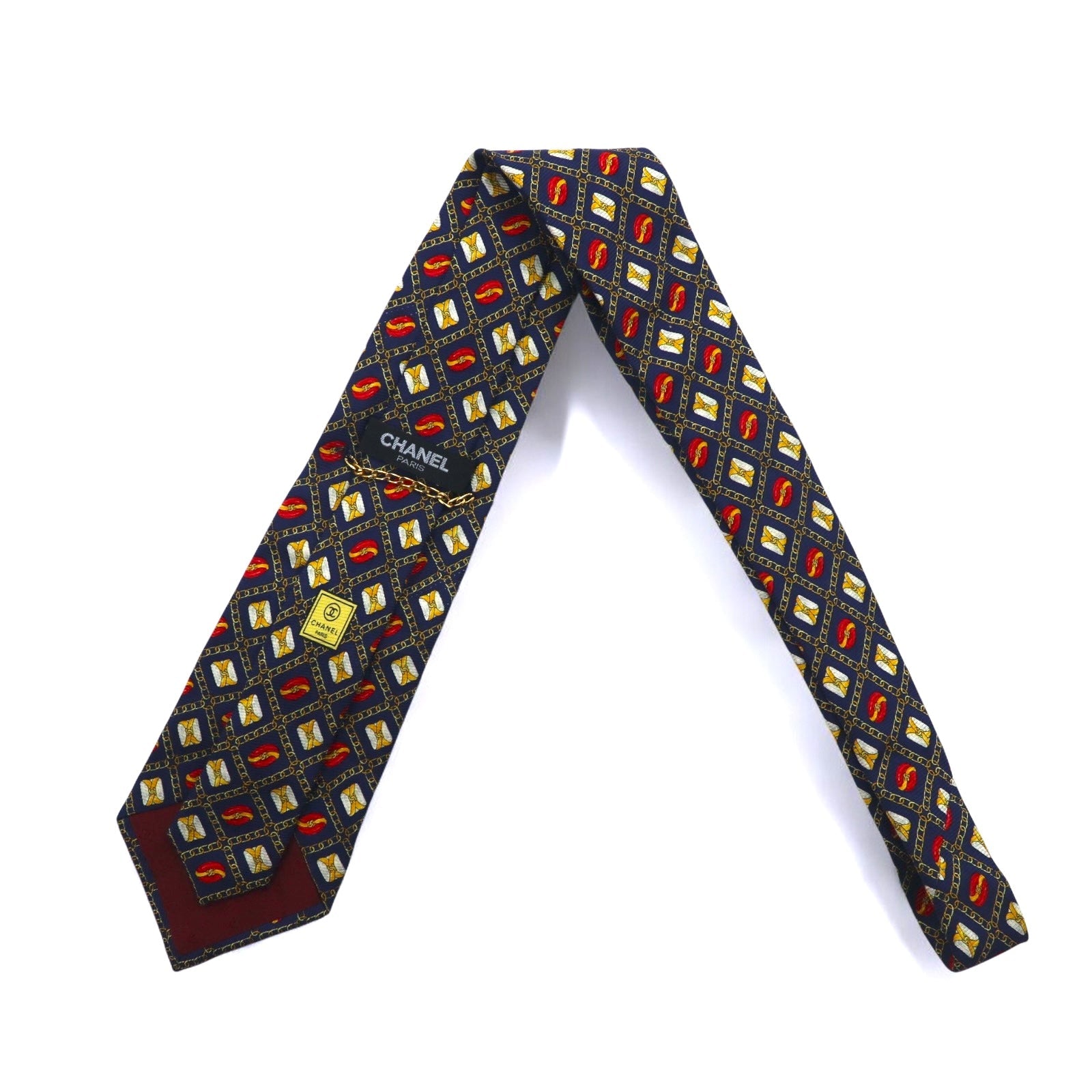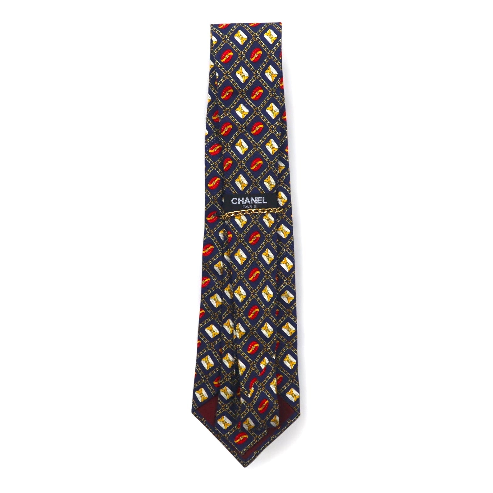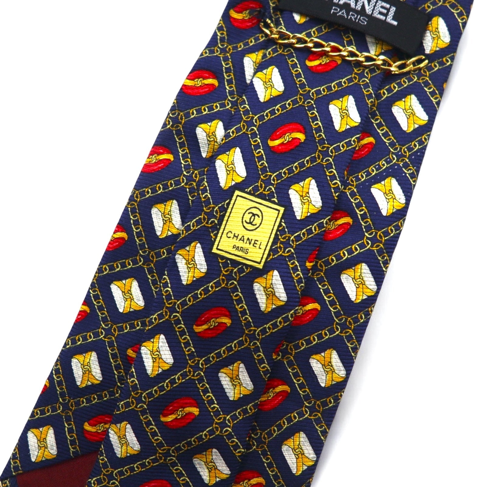 CHANEL イタリア製 ヴィンテージ ネクタイ ネイビー シルク 総柄 チェーン