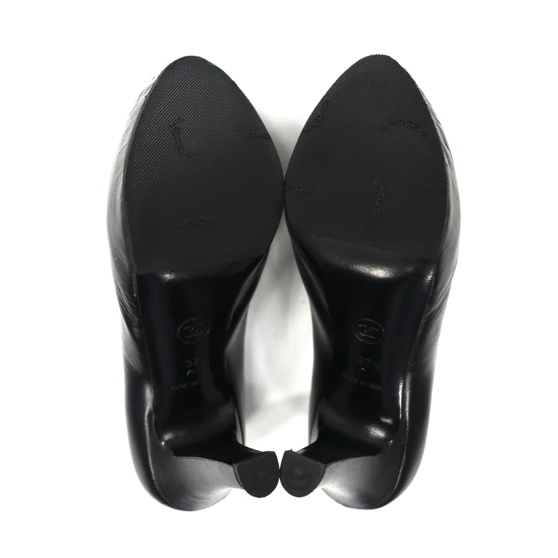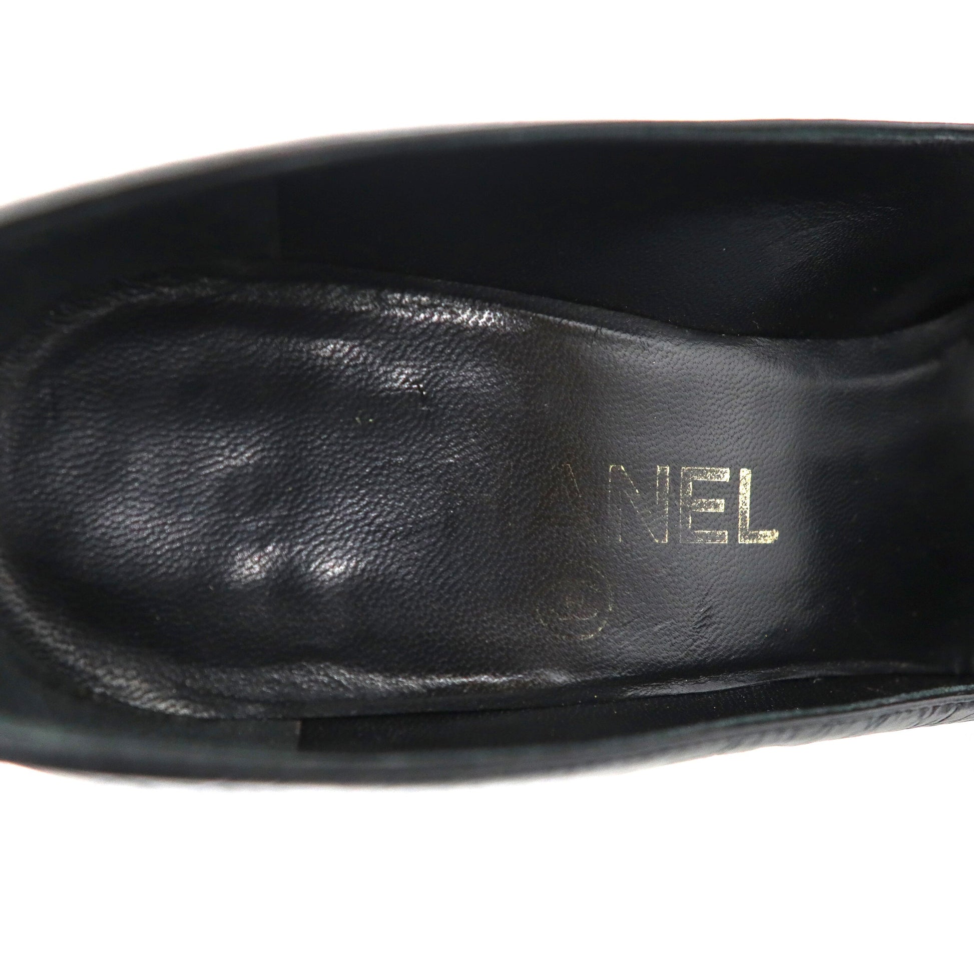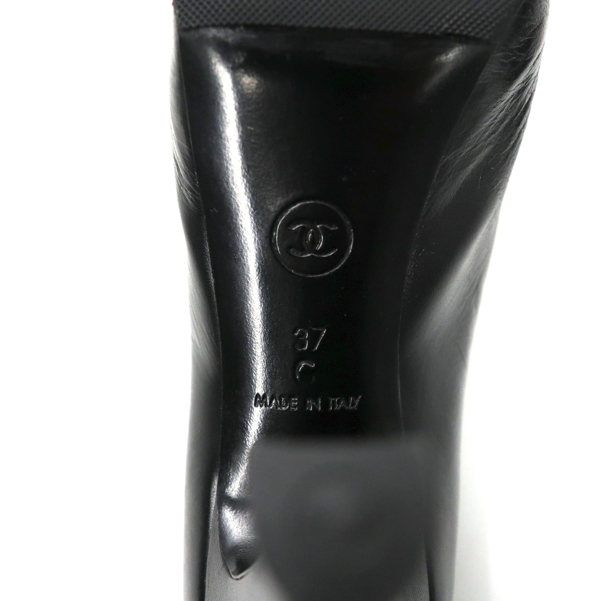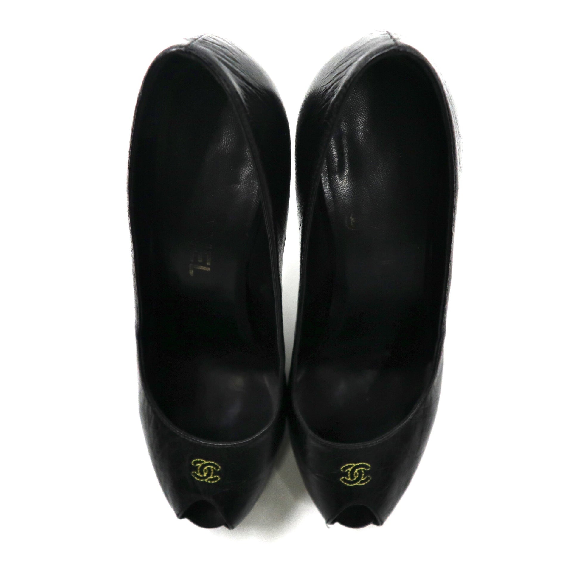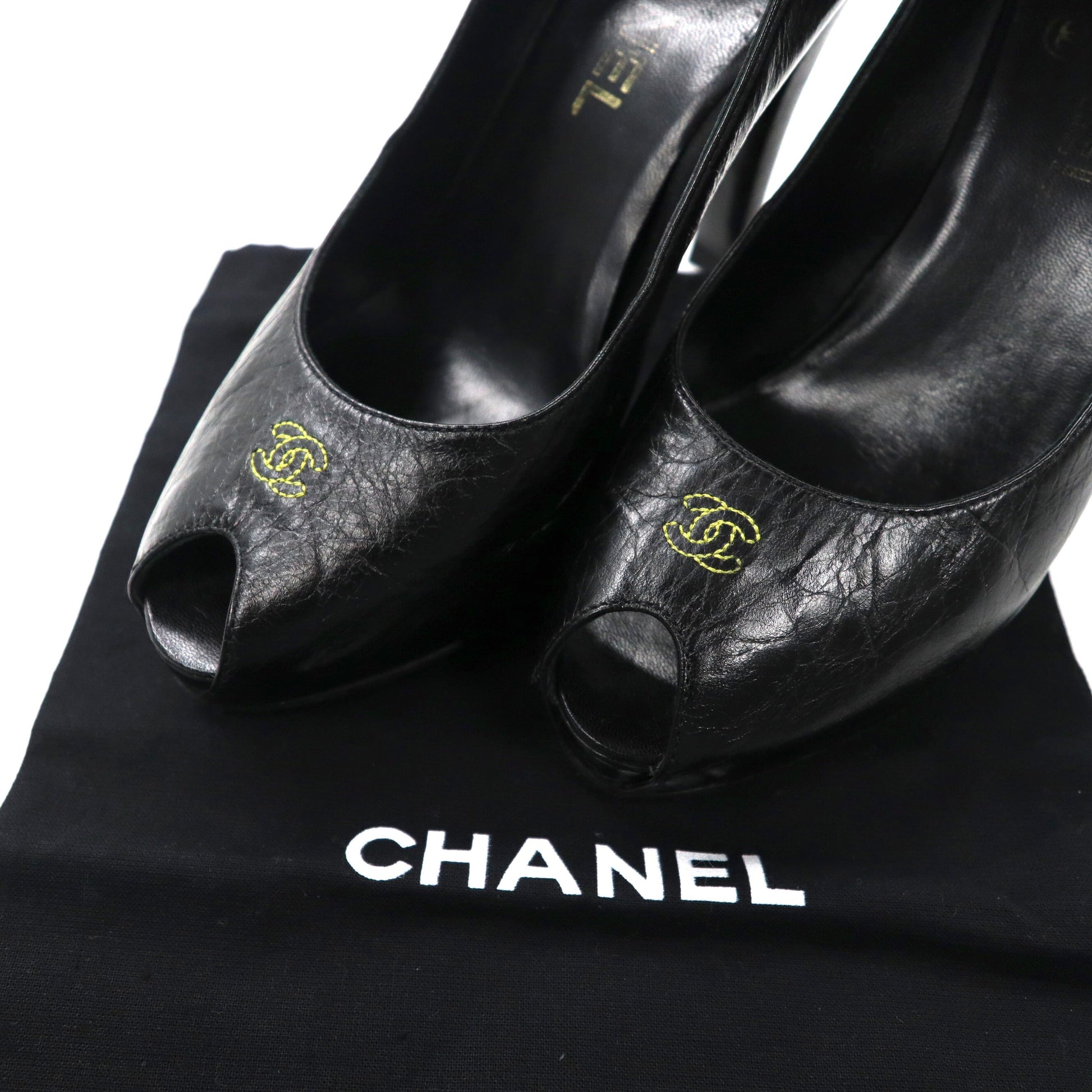CHANEL オープントゥ ハイヒール パンプス 23.5cm ブラック レザー ココマーク ロゴ刺繍 イタリア製