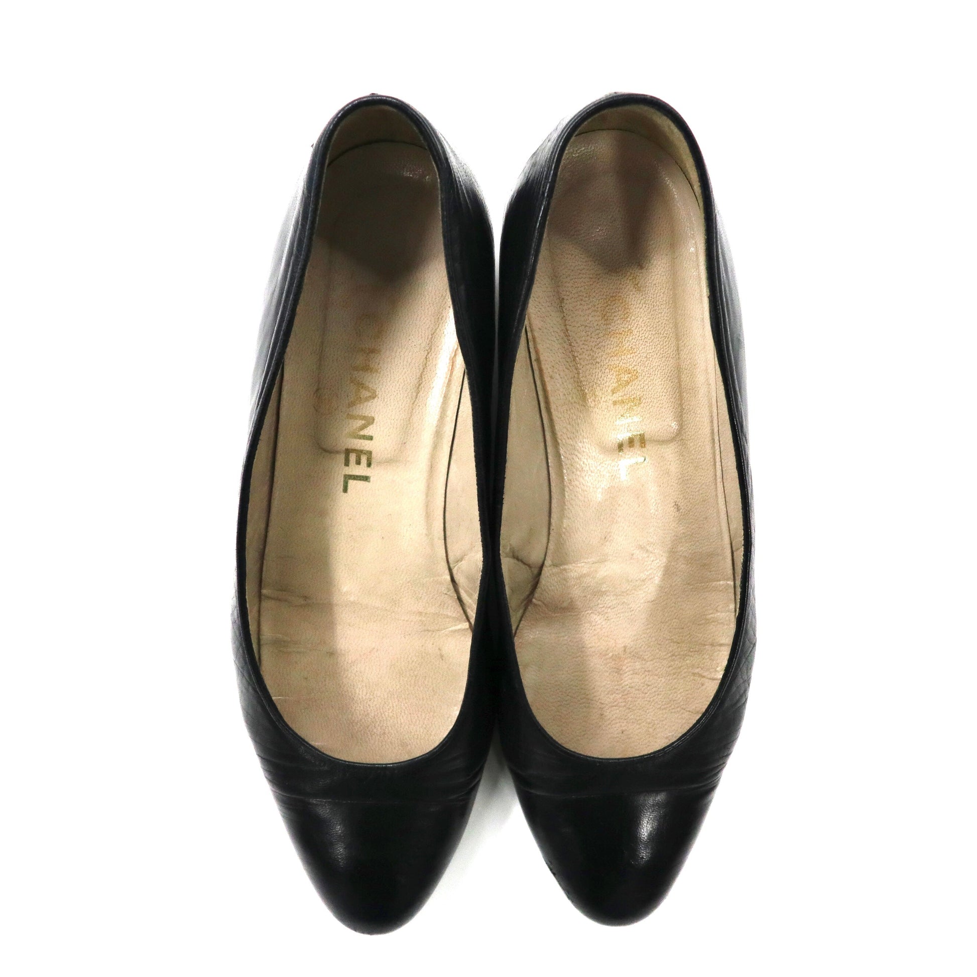CHANEL フラットパンプス 22.5cm ブラック レザー キルティング マトラッセ イタリア製