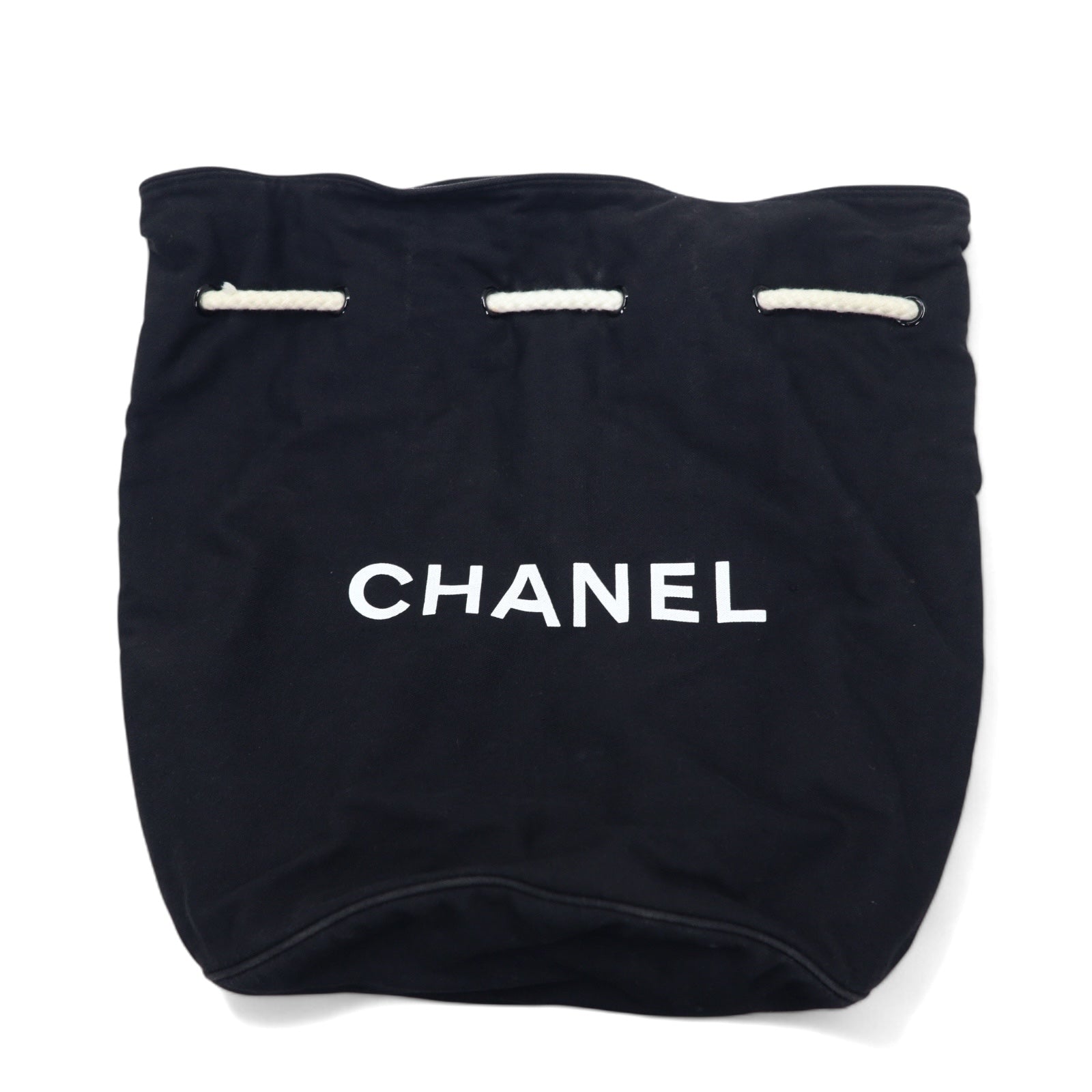 CHANEL 巾着 プールバッグ ワンショルダーバッグ ブラック キャンバス ロゴ プリント ノベルティー