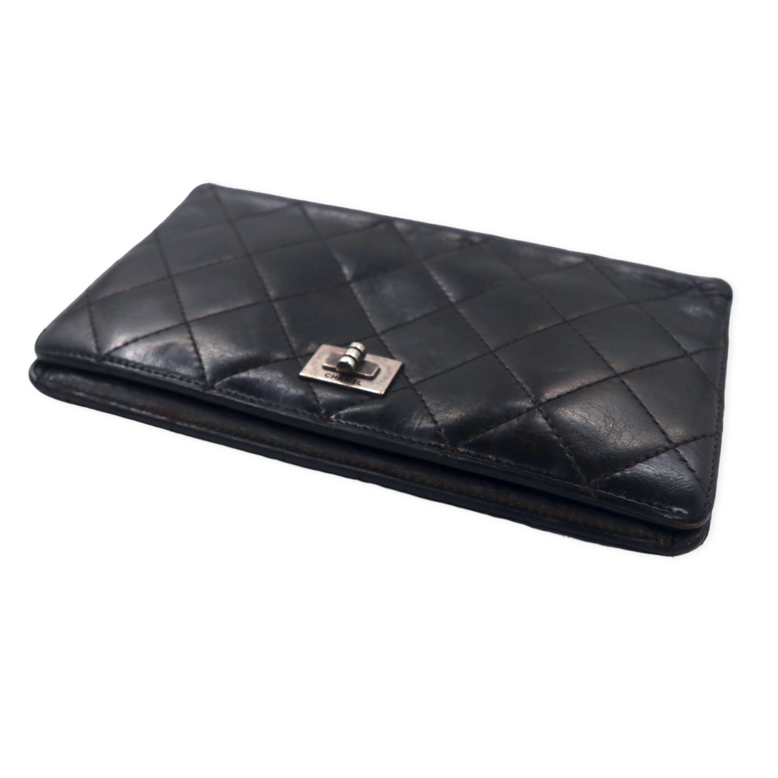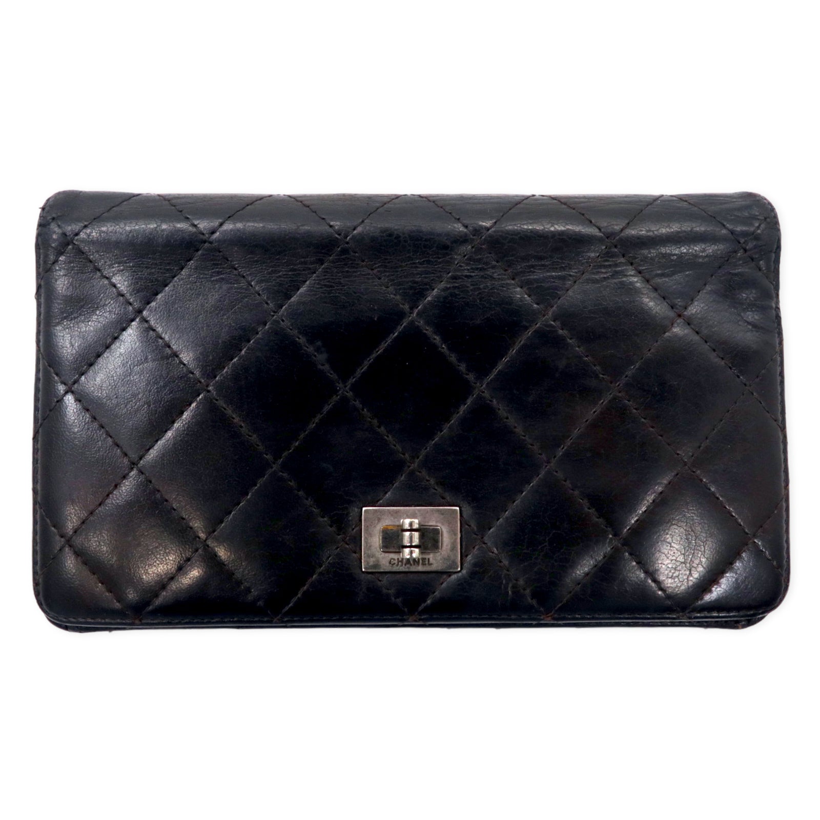 CHANEL 2.55ライン マトラッセ 長財布 ブラック レザー キルティング フランス製