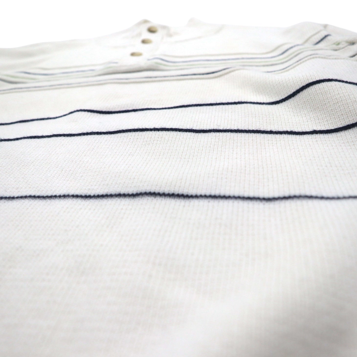 CHAPS ハーフボタン コットンニット セーター XL ホワイト ボーダー
