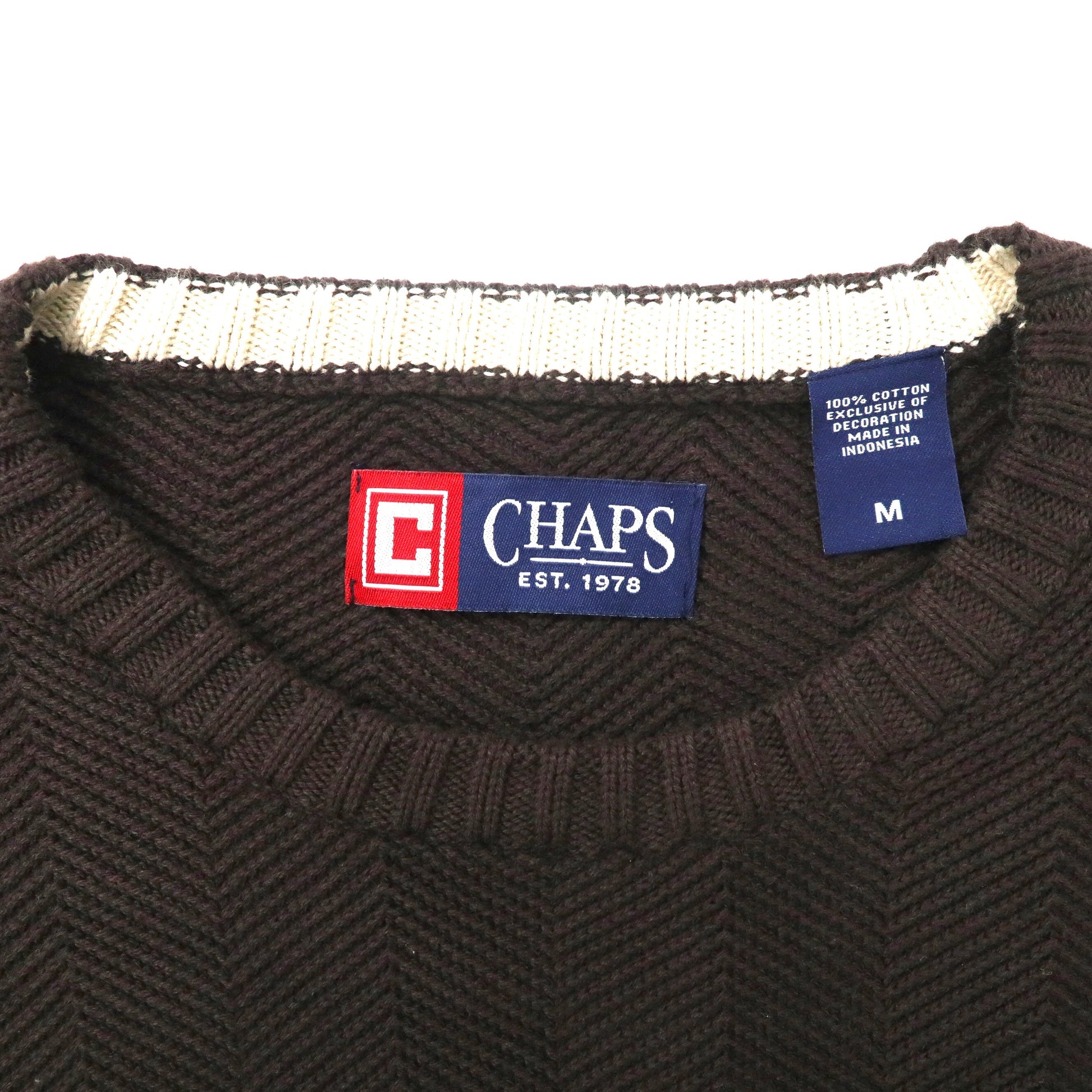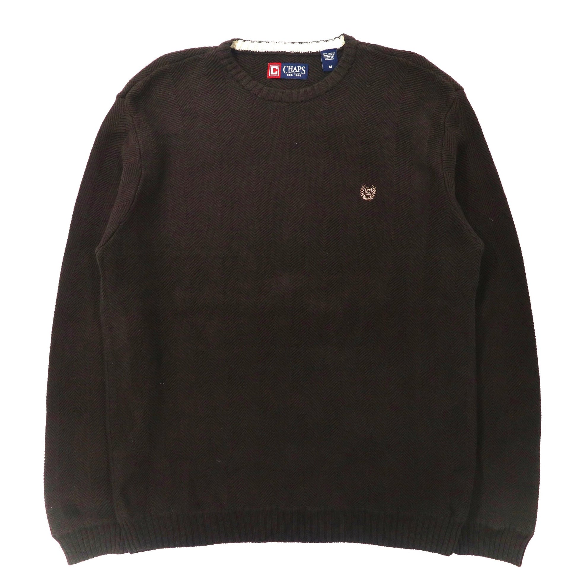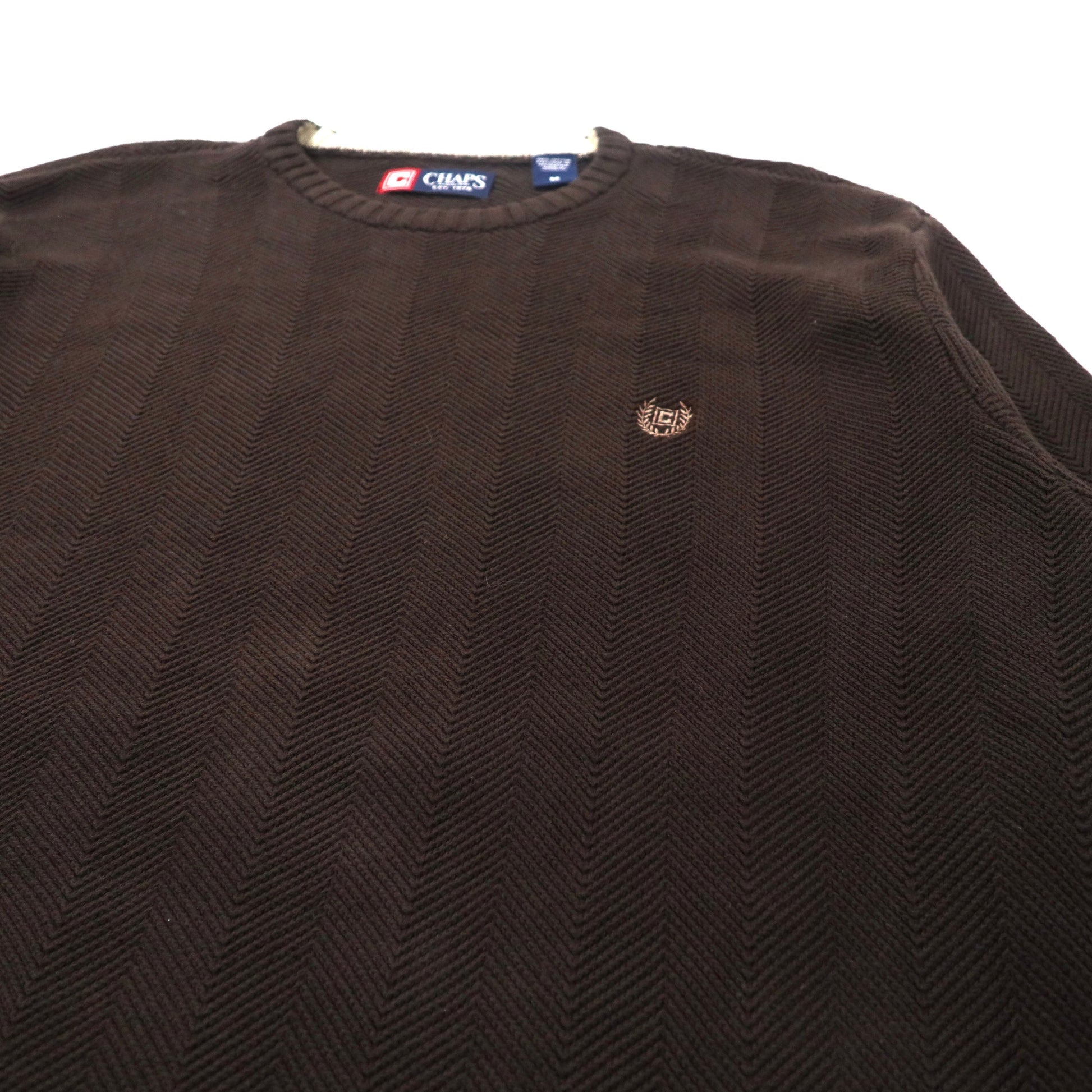 CHAPS ビッグサイズ ヘリンボーン ニット セーター M ブラウン コットン ワンポイントロゴ刺繍