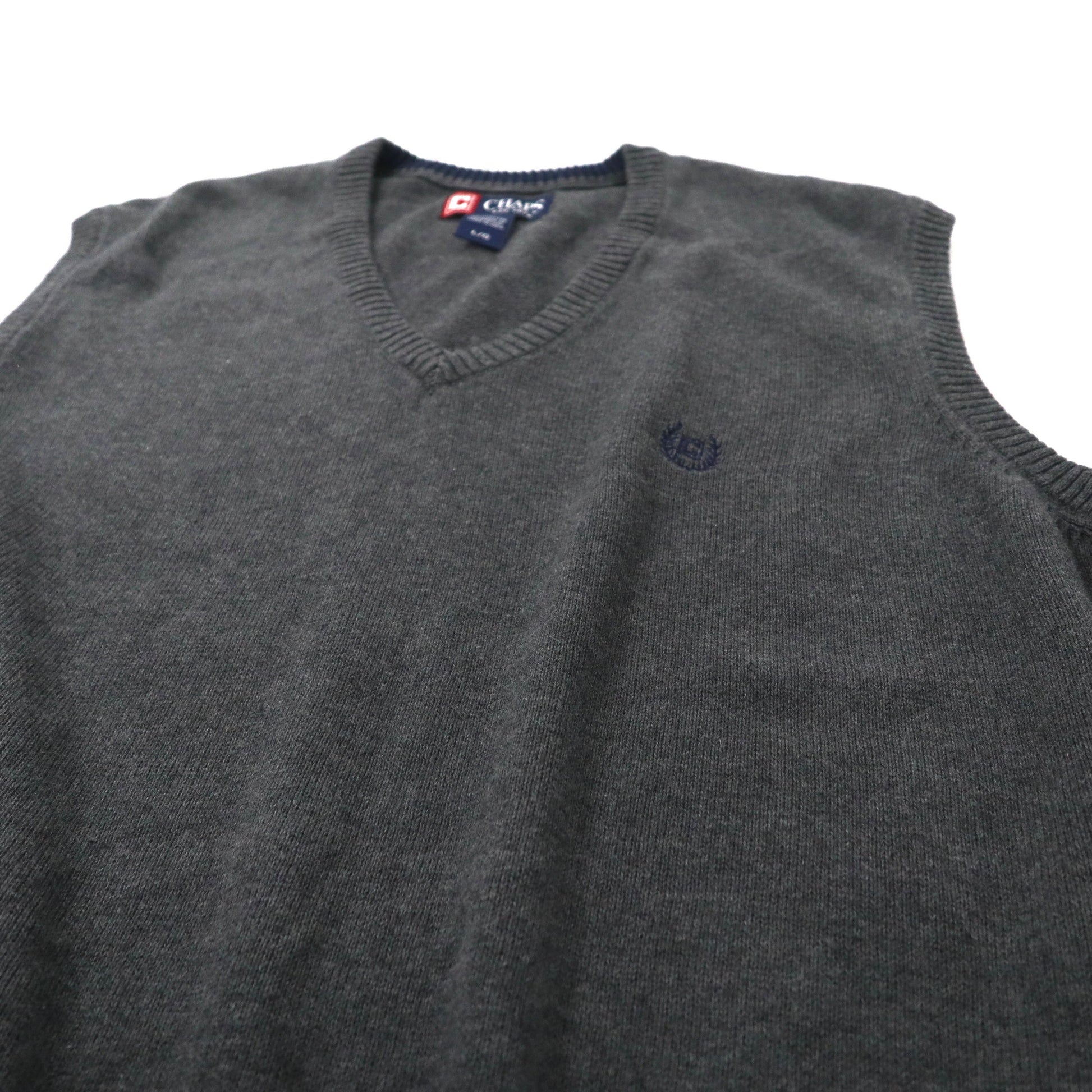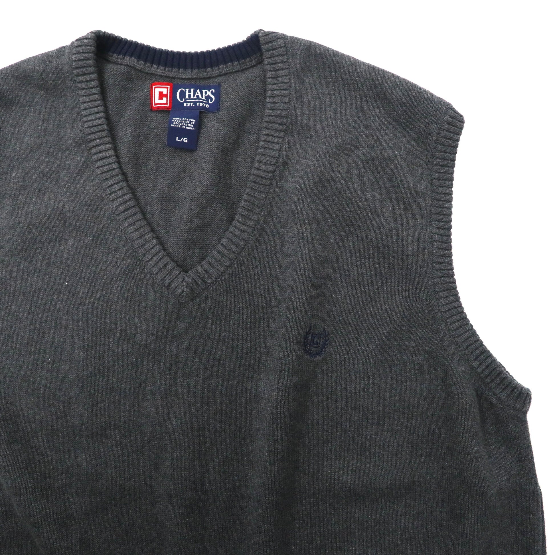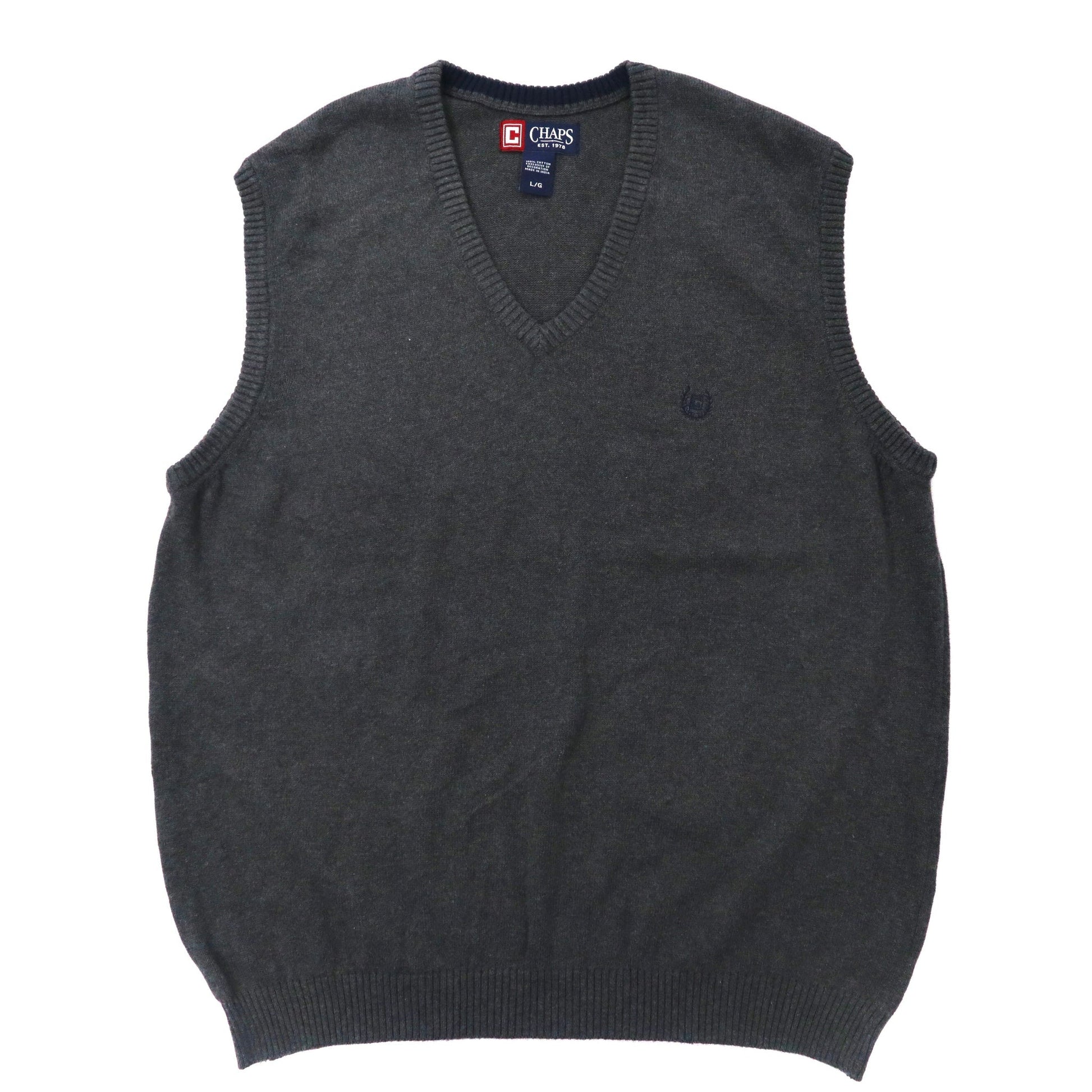 CHAPS ビッグサイズ Vネックニット ベスト L グレー コットン ワンポイントロゴ刺繍