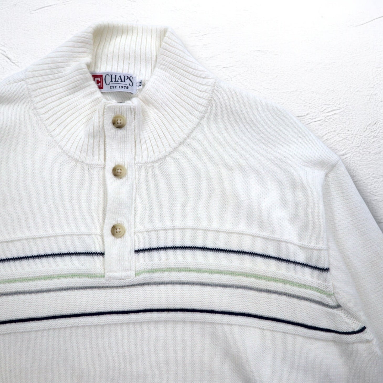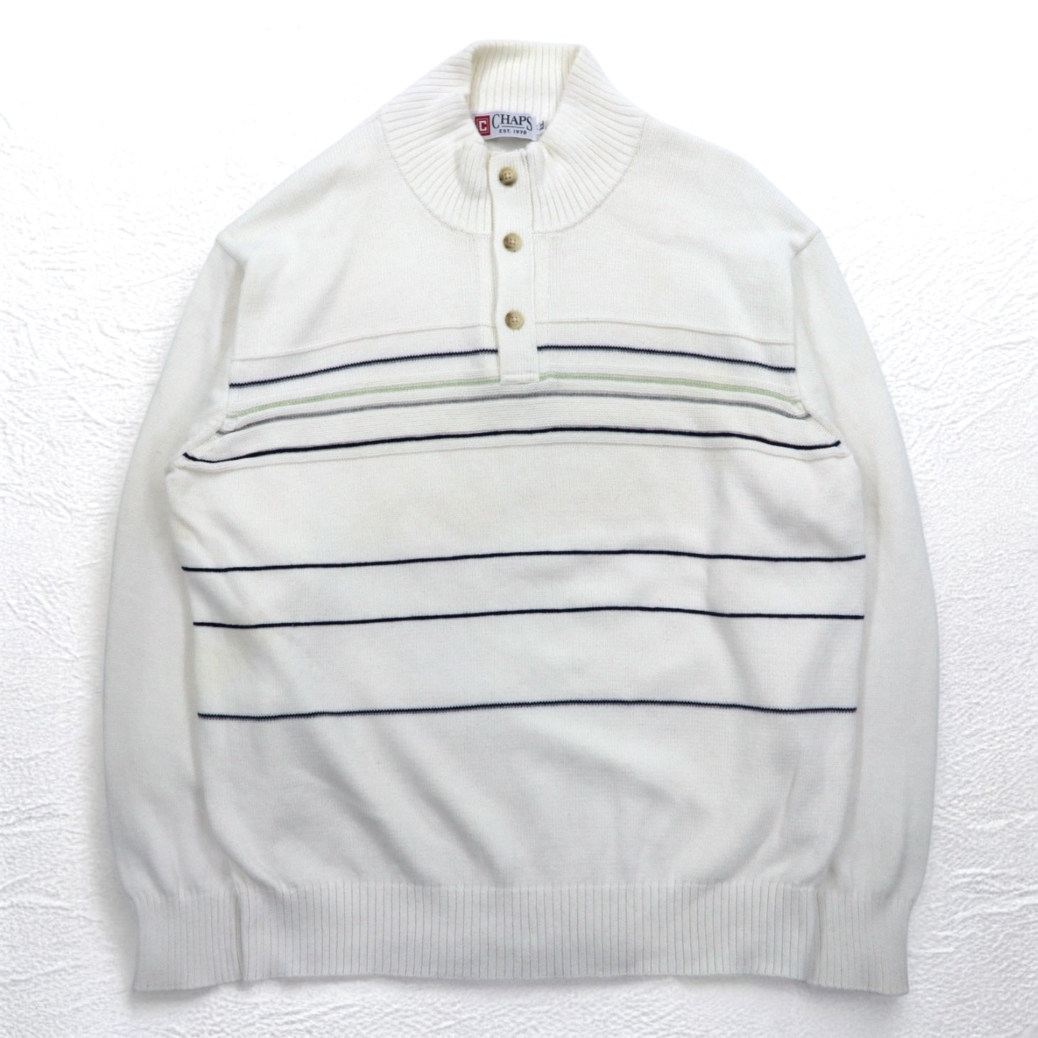 CHAPS ハーフボタン コットンニット セーター XL ホワイト ボーダー
