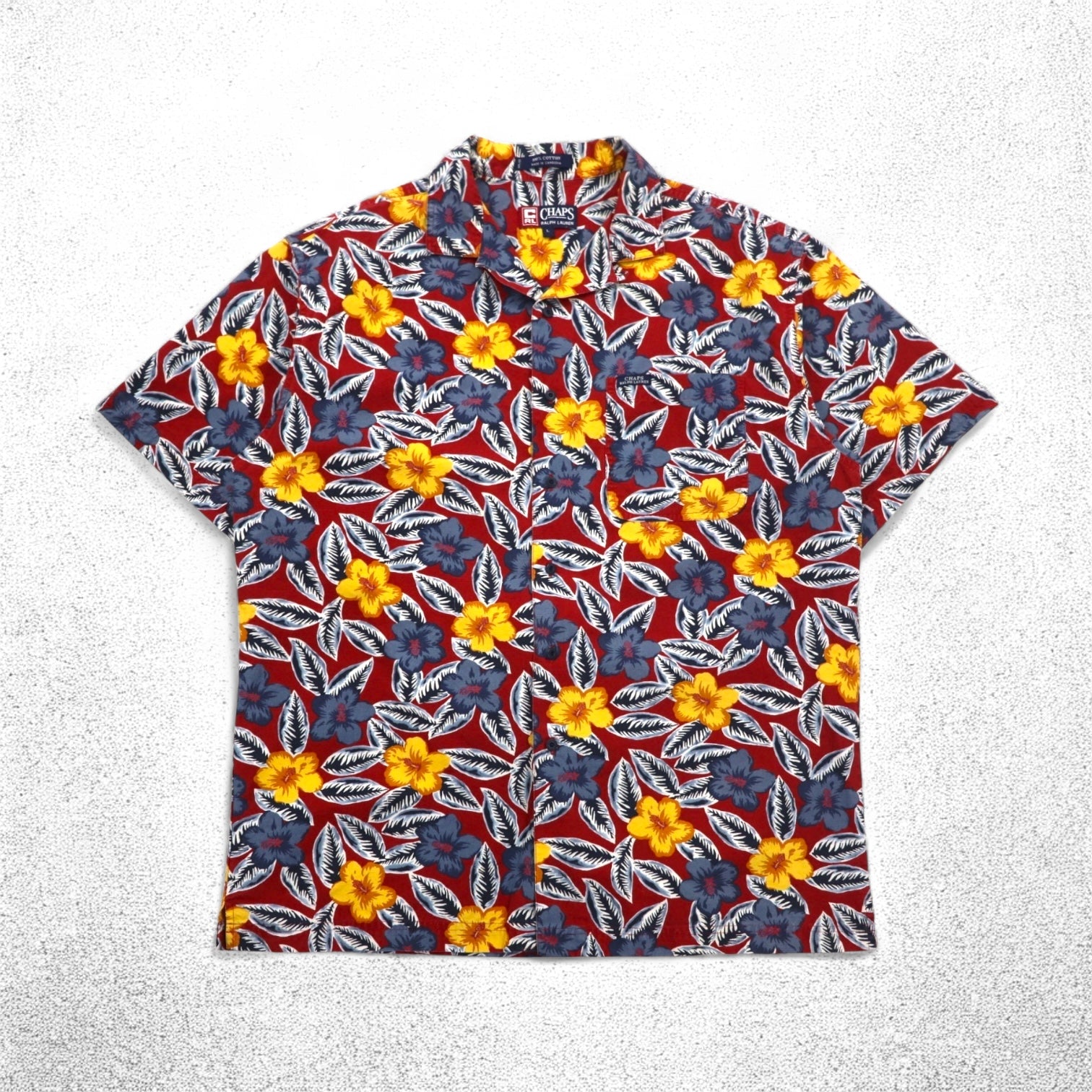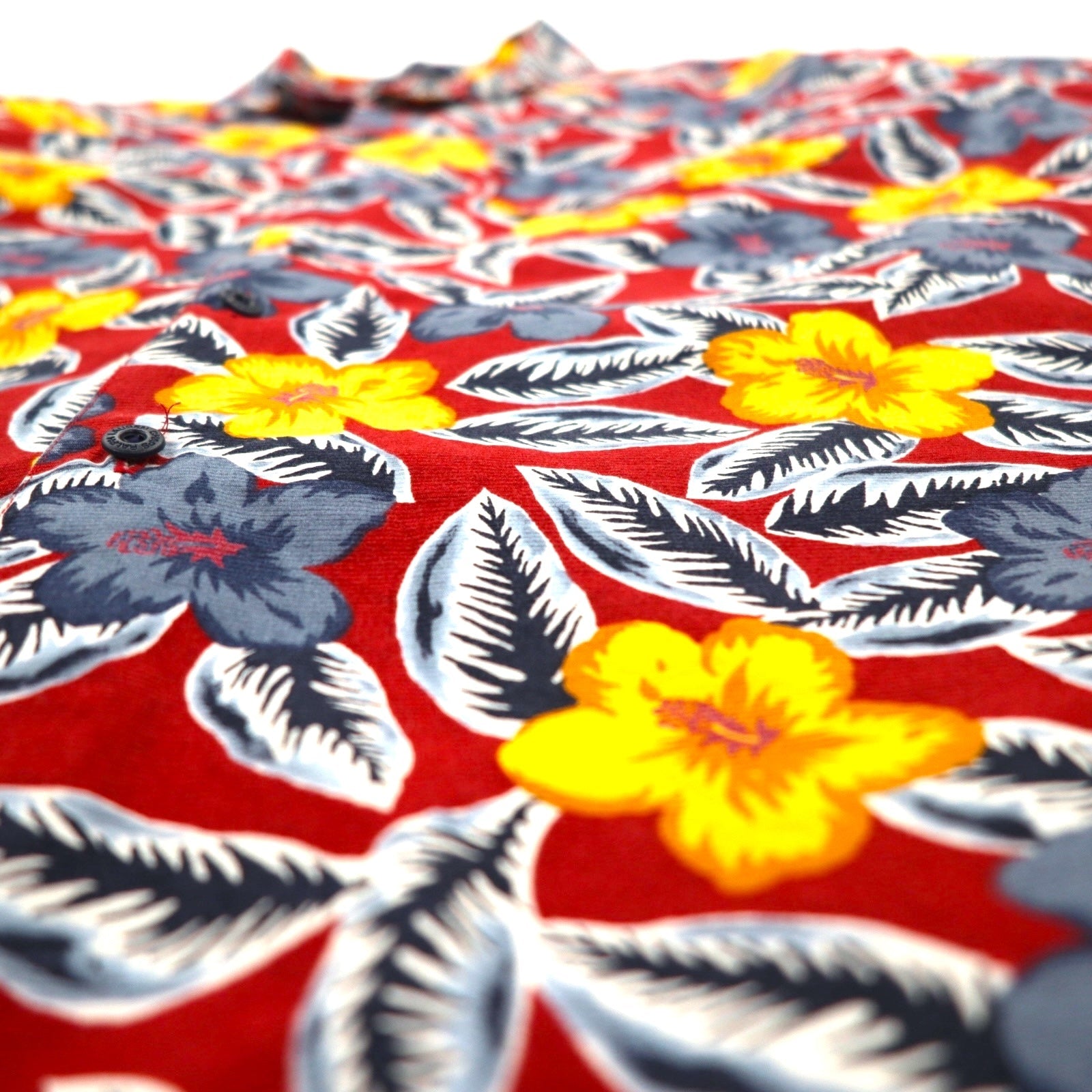 CHAPS RALPH LAUREN 90年代 アロハシャツ L レッド コットン 総柄 ハイビスカス 胸ポケット