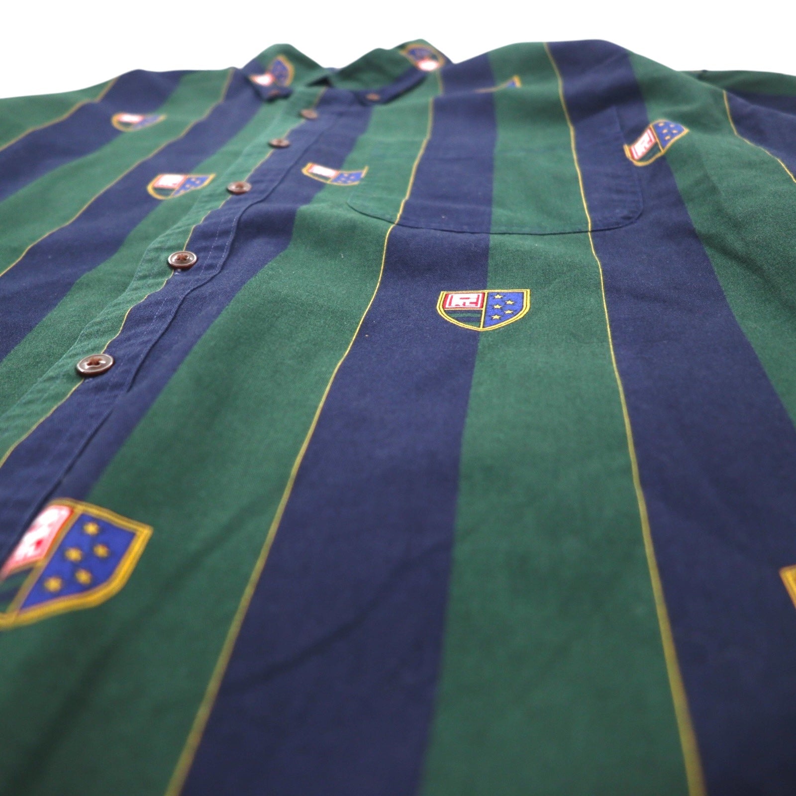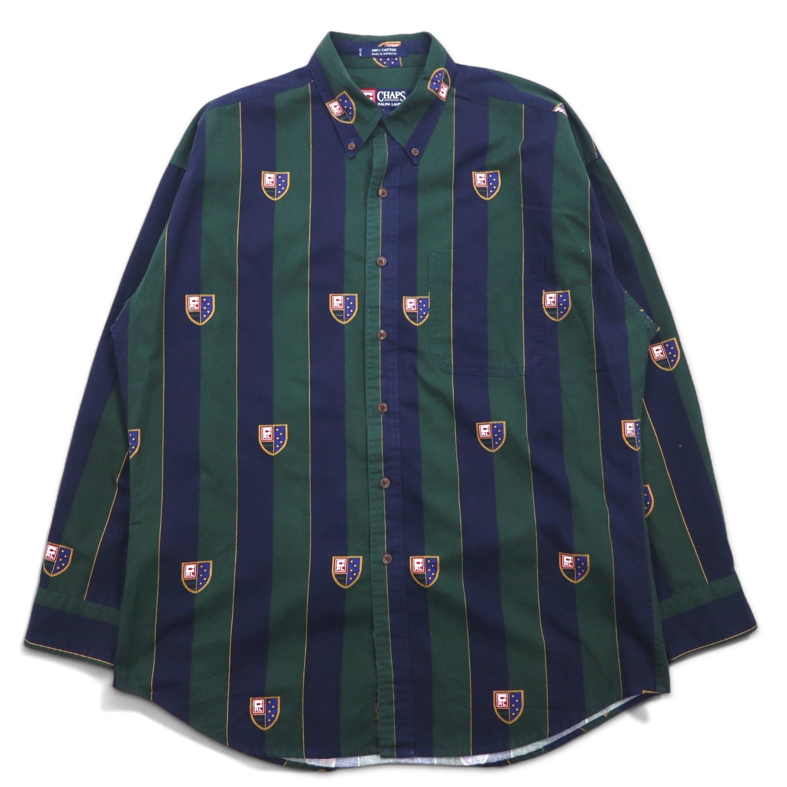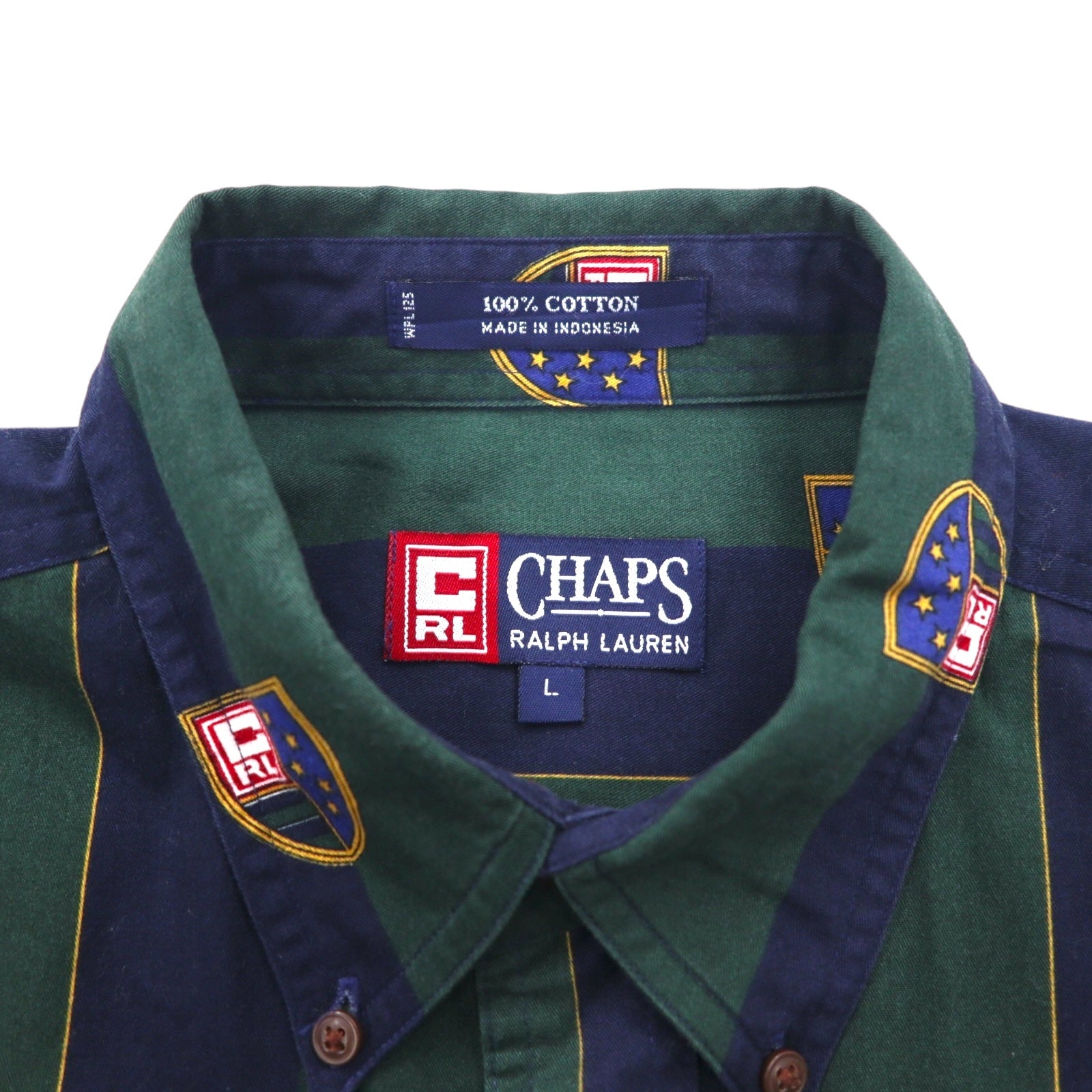 CHAPS RALPH LAUREN 90年代 ボタンダウンシャツ L グリーン ネイビー ストライプ コットン エンブレムロゴ