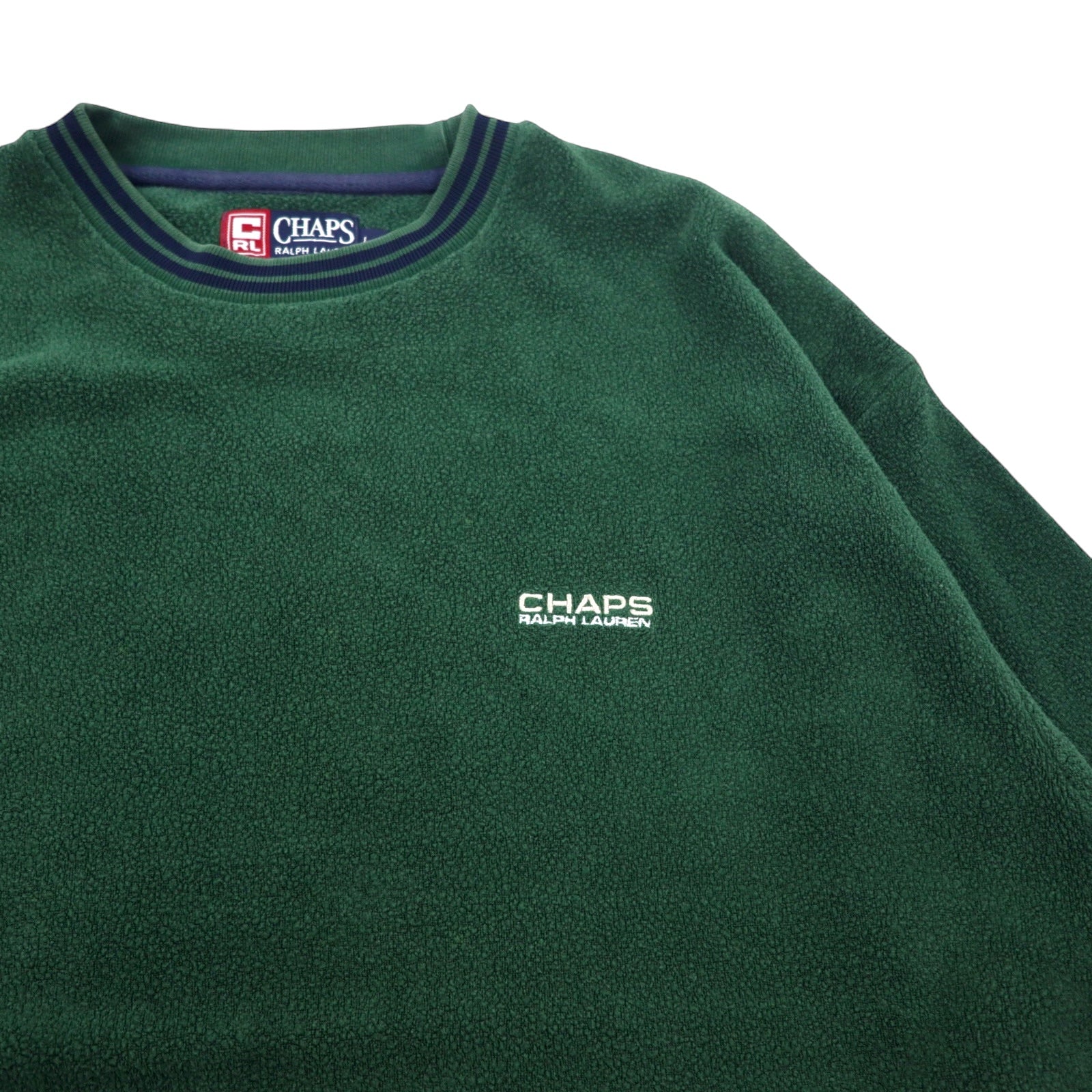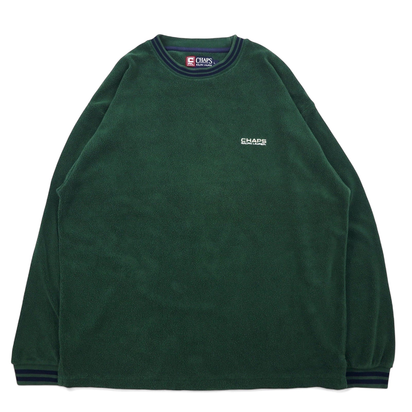 CHAPS RALPH LAUREN 90年代 リブライン パイル スウェット L グリーン コットン ワンポイント 刺繍