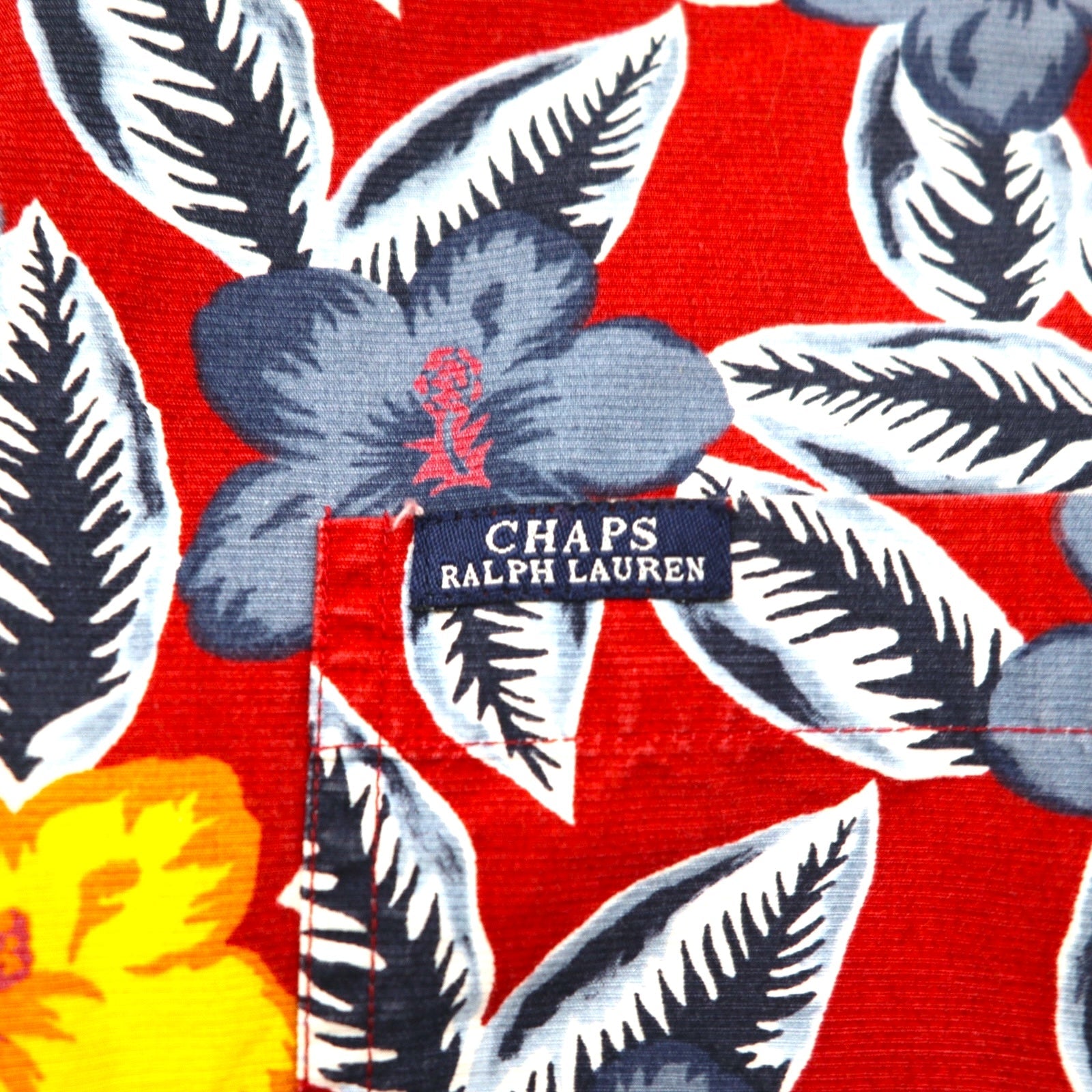 CHAPS RALPH LAUREN 90年代 アロハシャツ L レッド コットン 総柄 ハイビスカス 胸ポケット