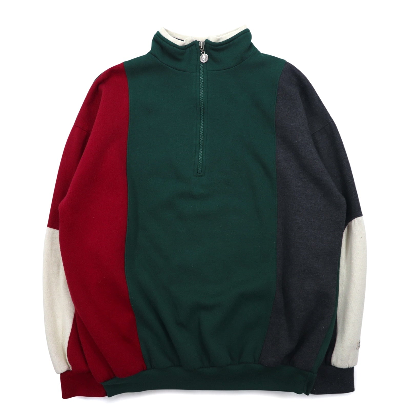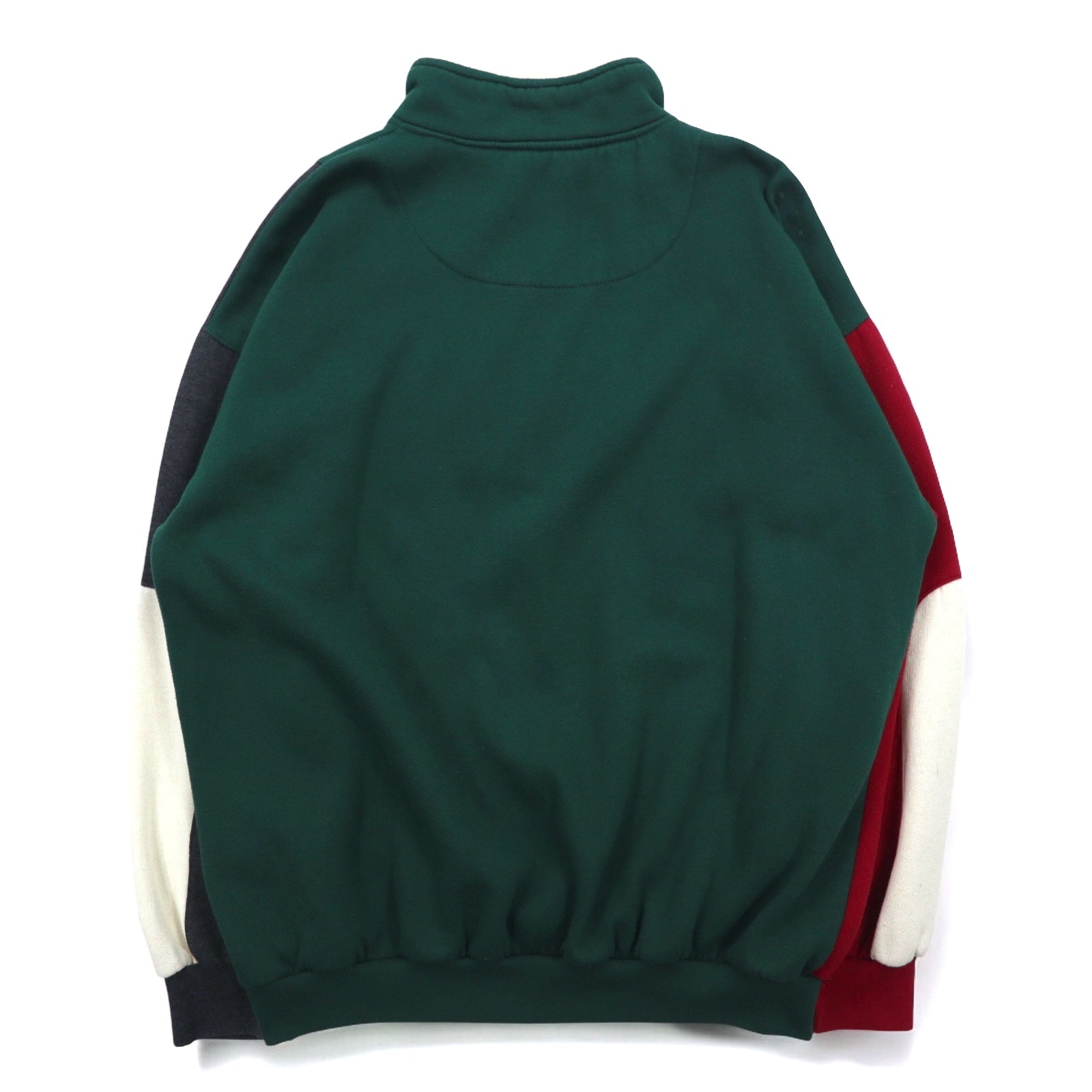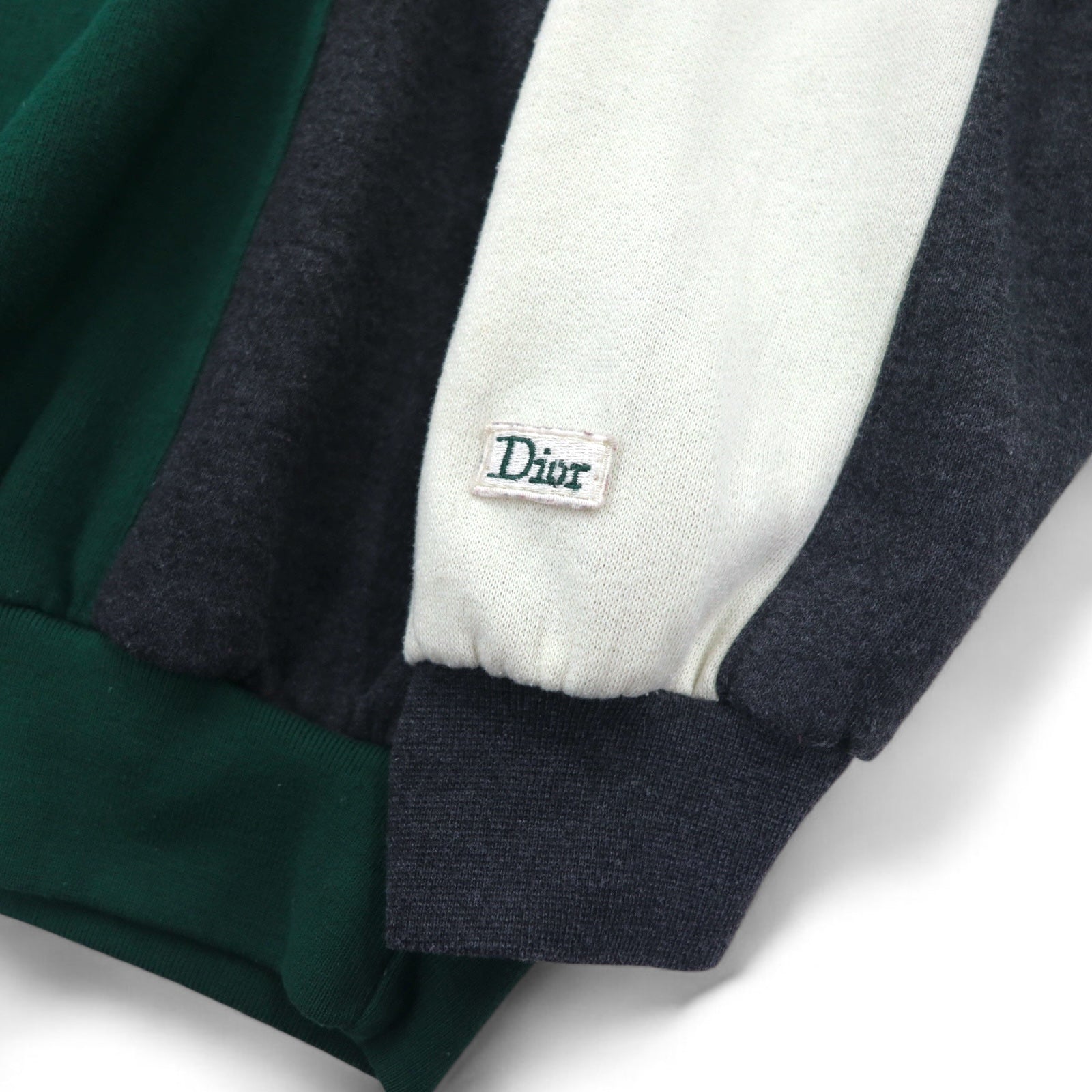 Christian Dior 90年代 ハーフジップ スウェット L グリーン カラーブロック クレイジーパターン ポリエステル コットン
