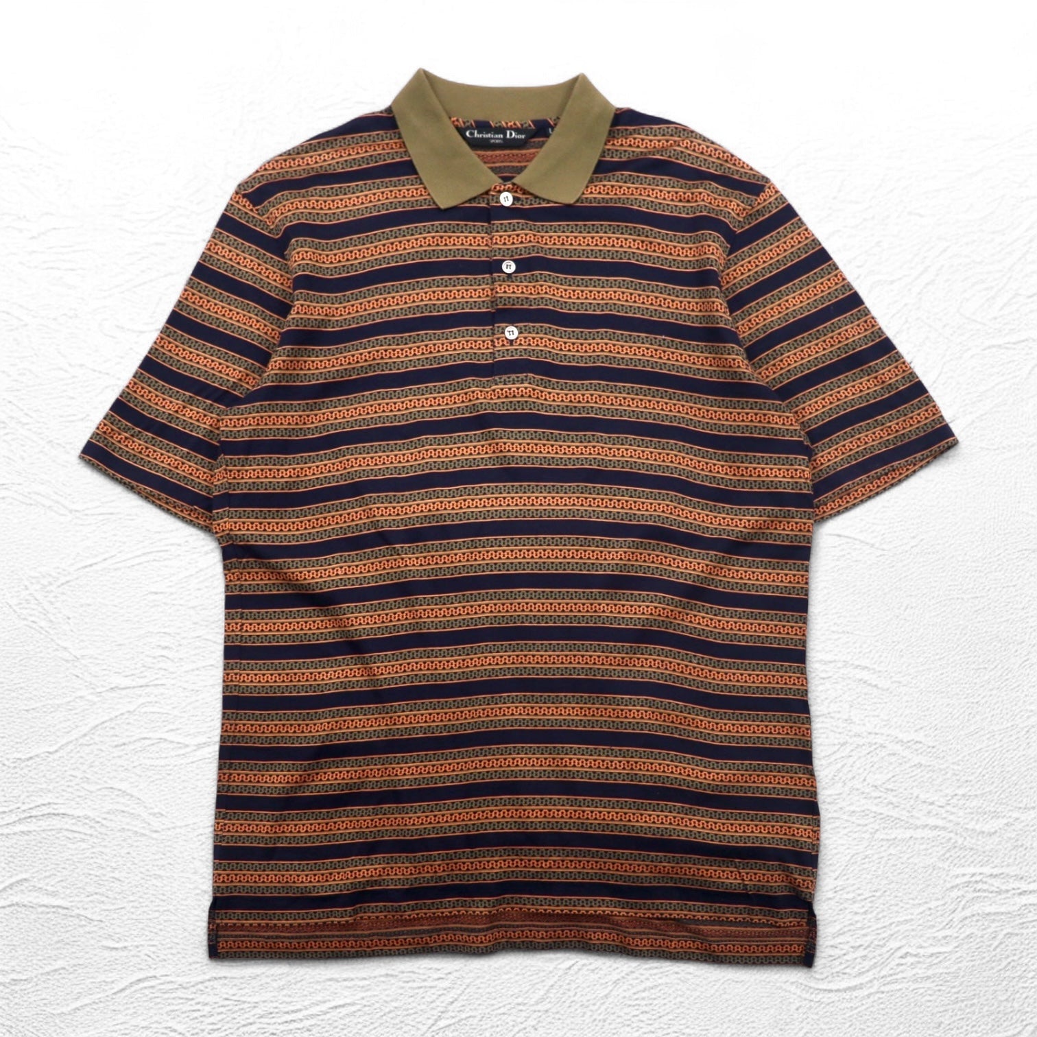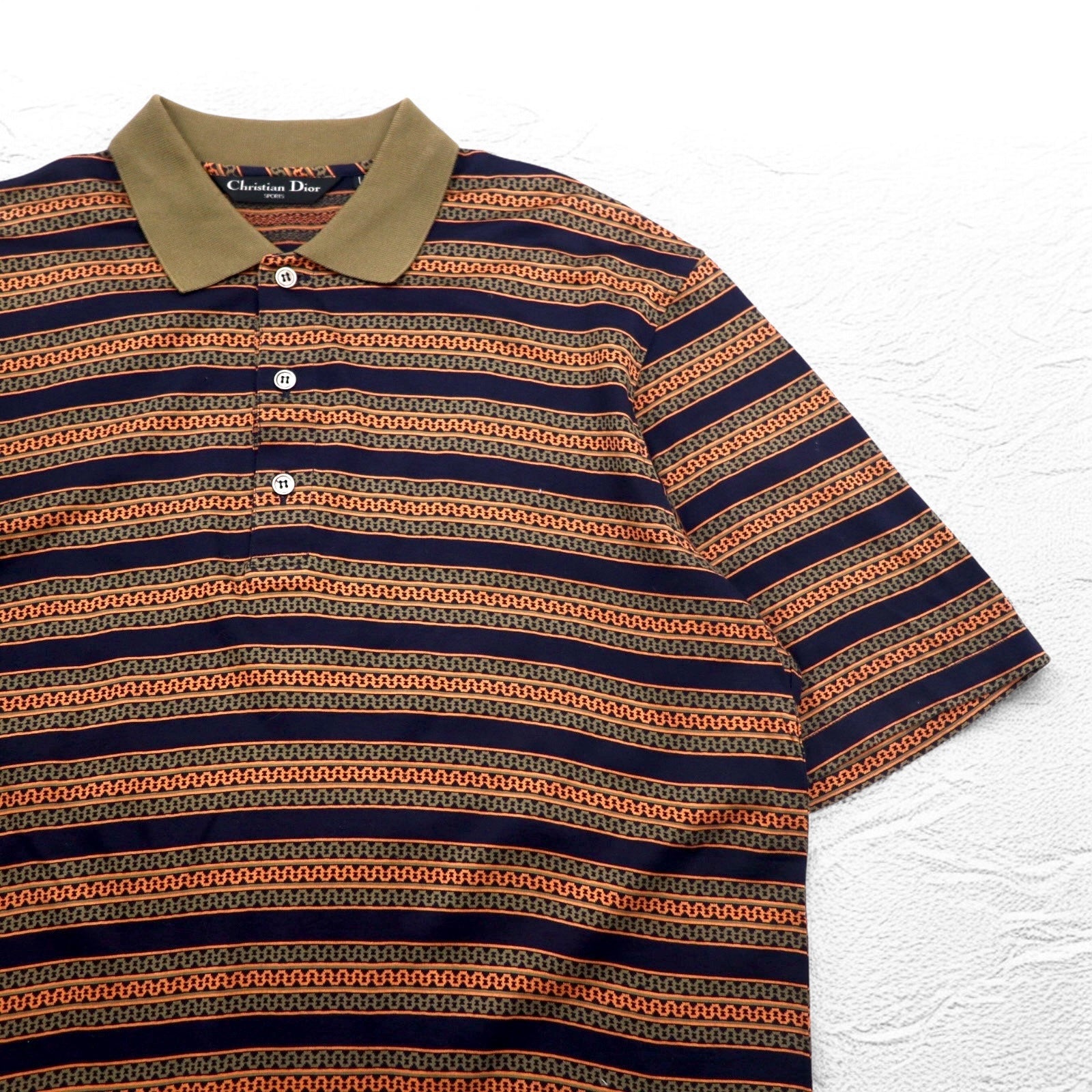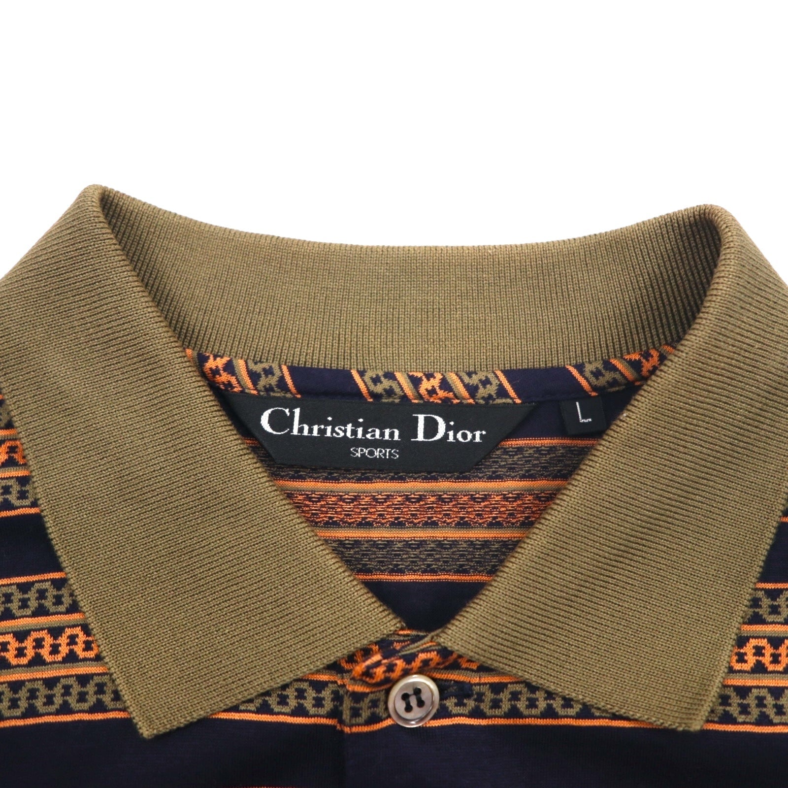 Christian Dior SPORTS 90年代 ボーダー ポロシャツ L カーキ ネイビー コットン 日本製
