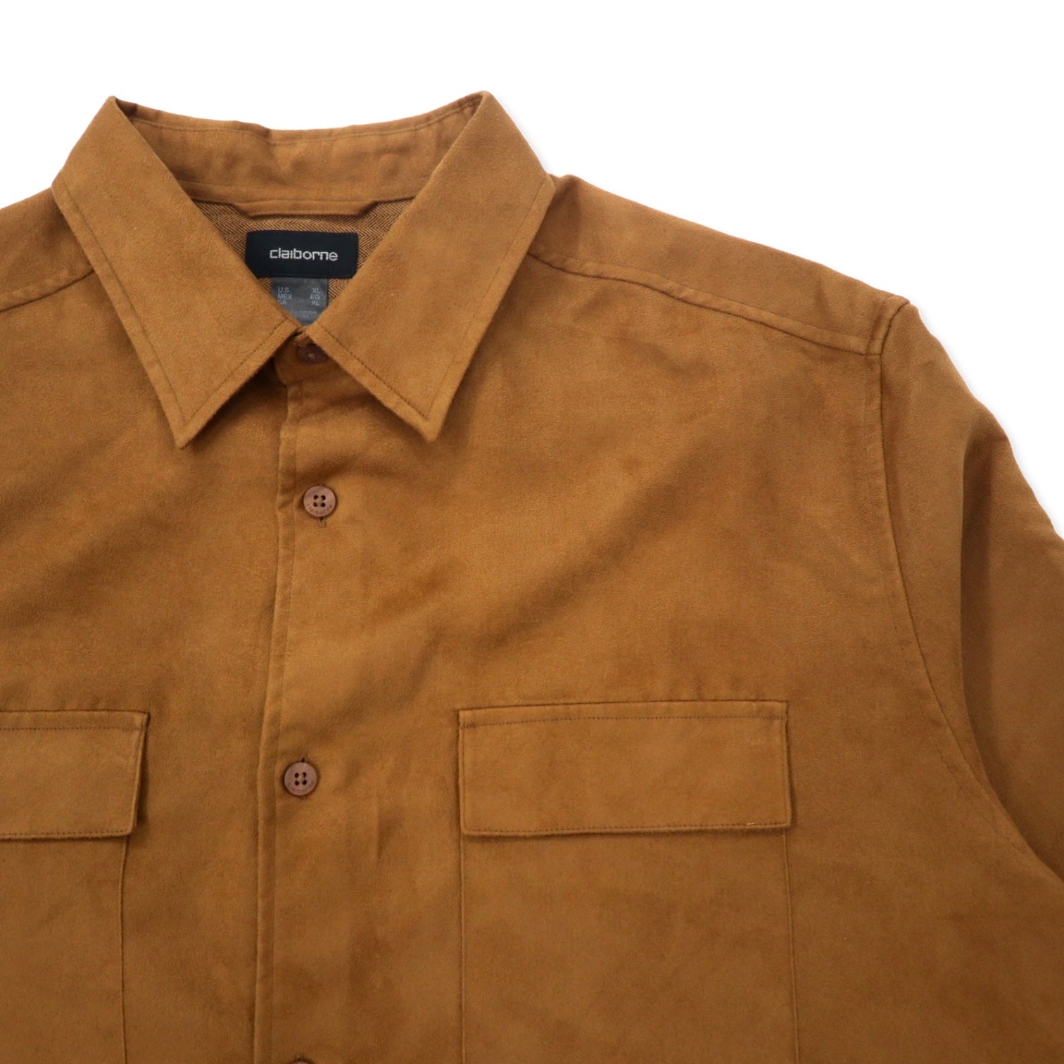 claiborne ボックスシルエット フェイクスエード オーバーシャツ XL ブラウン ポリエステル