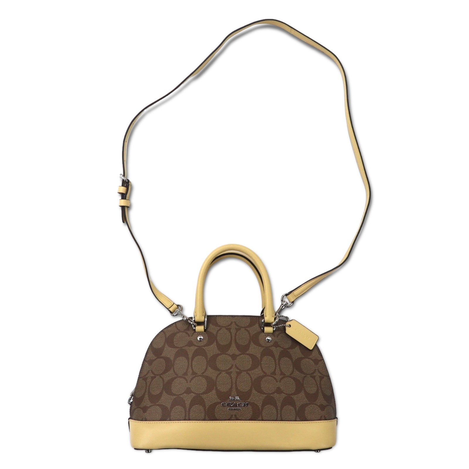 COACH シグネチャー ミニ シエラ サッチェル 2WAY ショルダーバッグ ハンドバッグ ブラウン ベージュ PVC レザー ドーム型 F27583