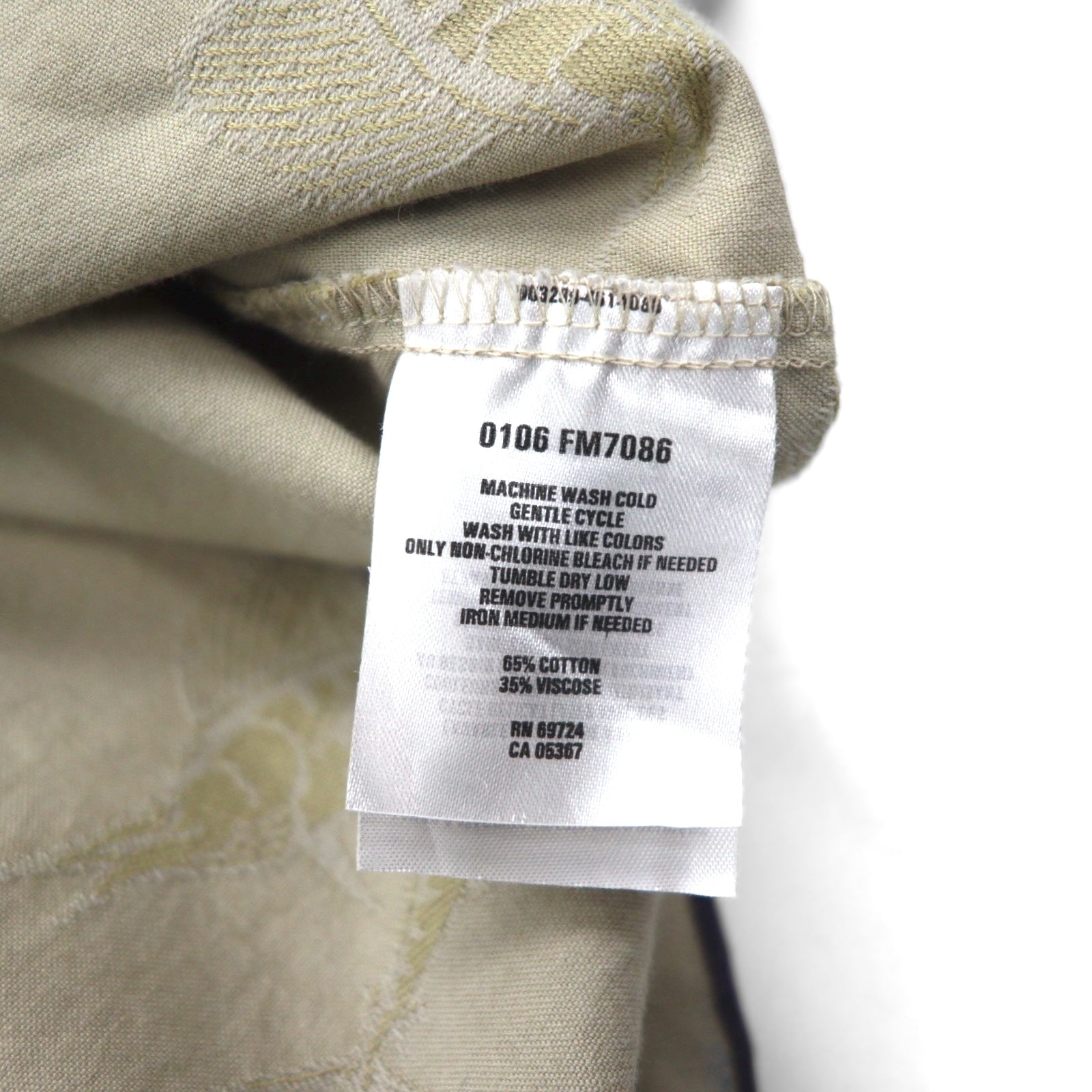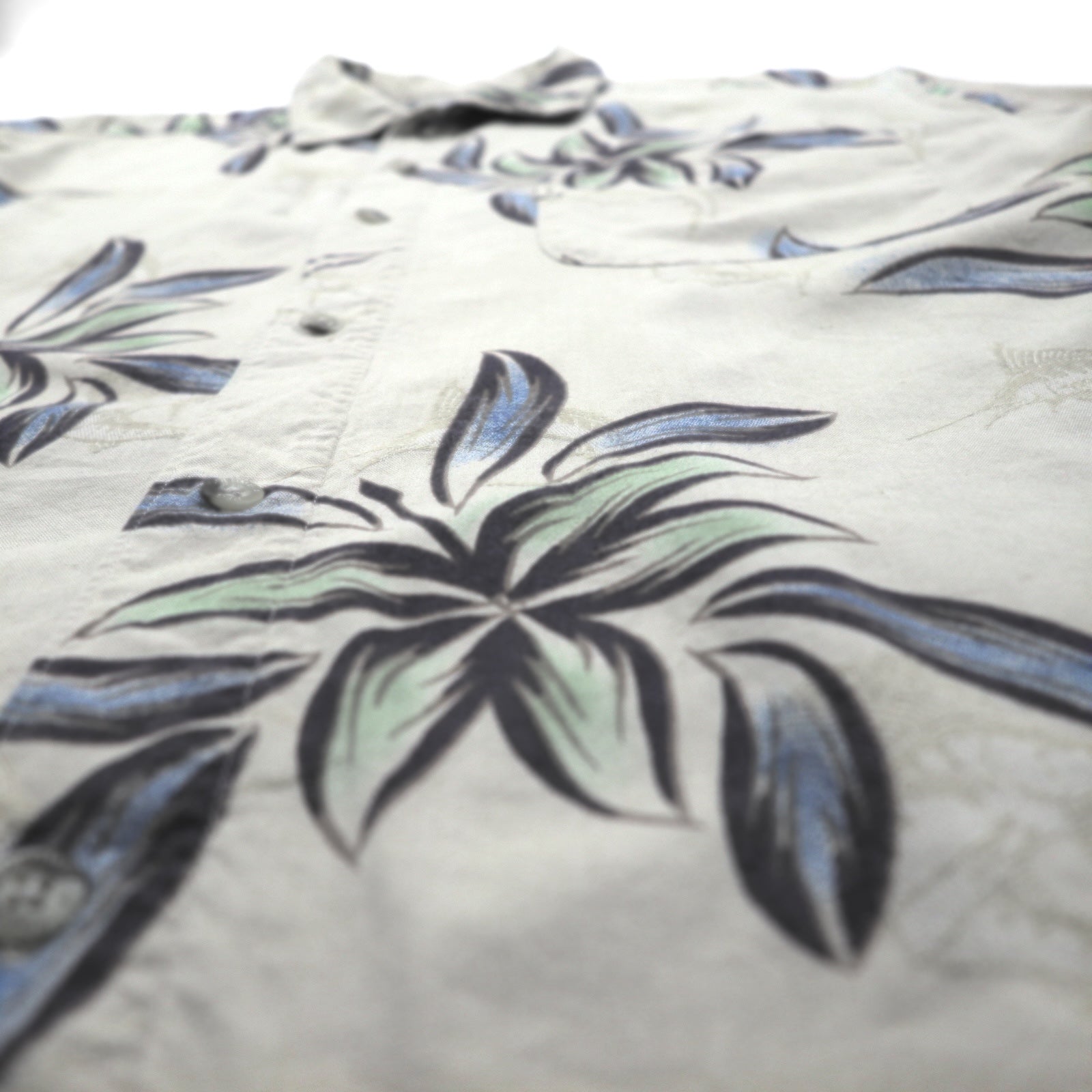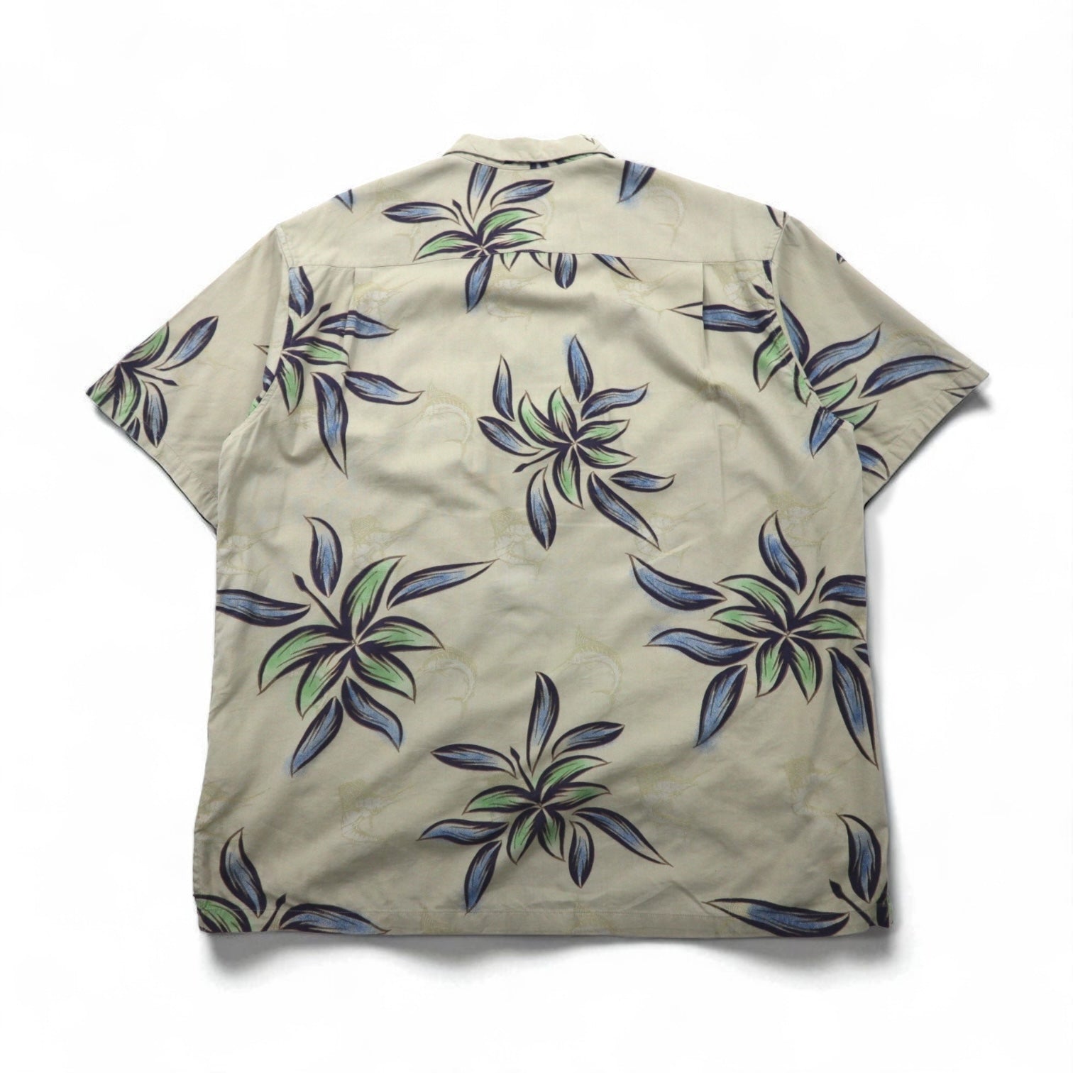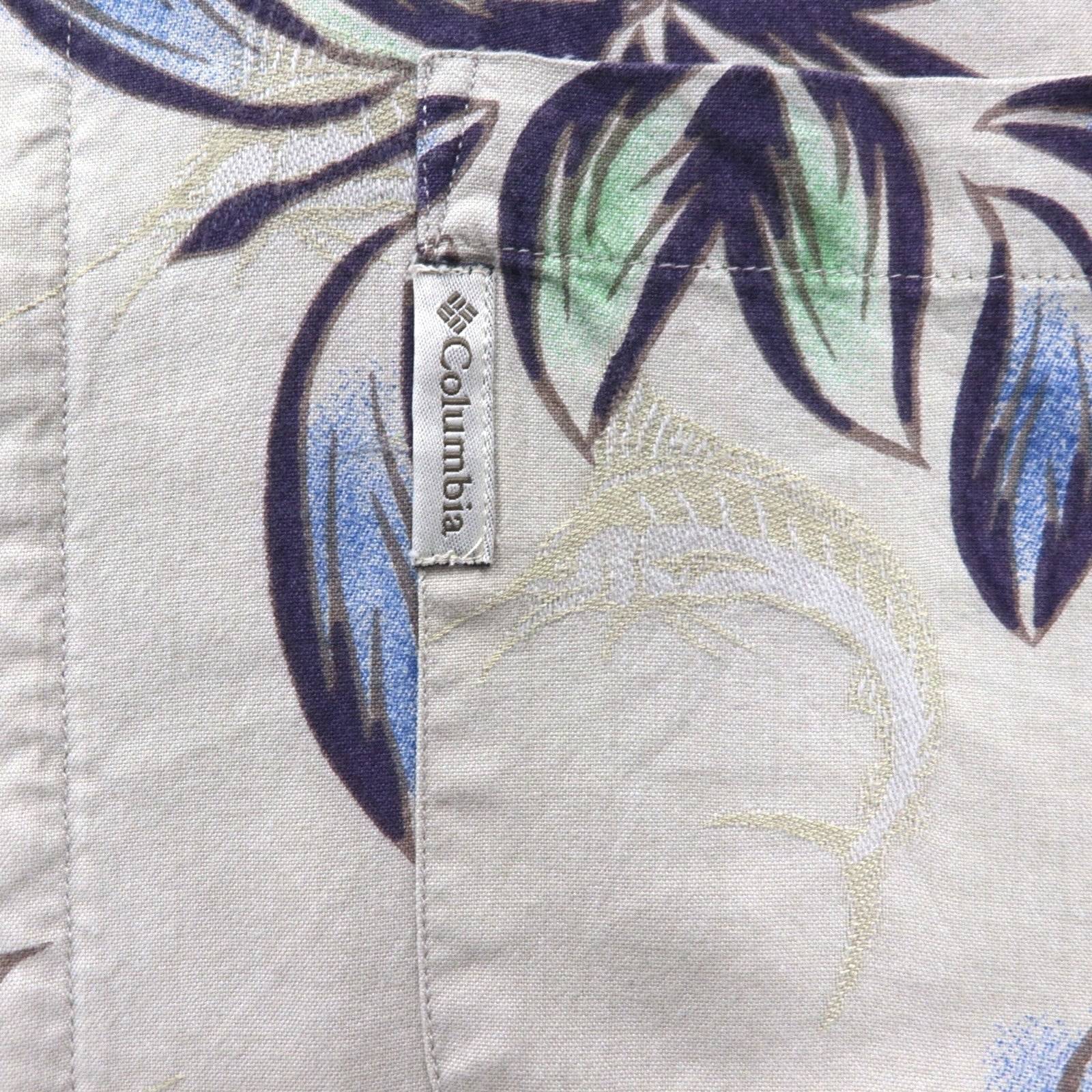 Columbia アロハシャツ 総柄 半袖シャツ L ベージュ ハイビスカス フィッシング 魚 FM7086