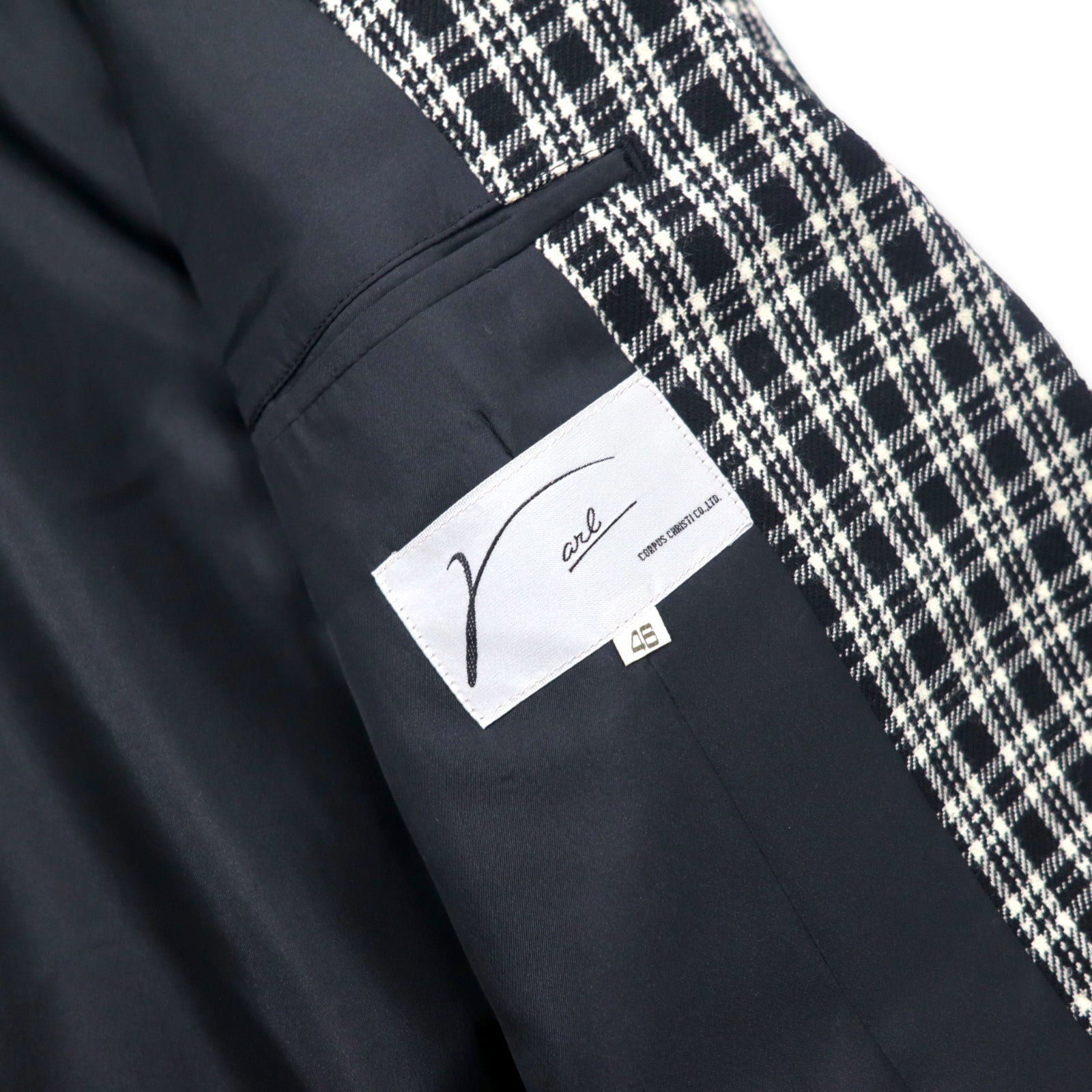 CORPUS CHRISTI ツイード 2B テーラードジャケット 46 ホワイト ブラック タータンチェック ウール