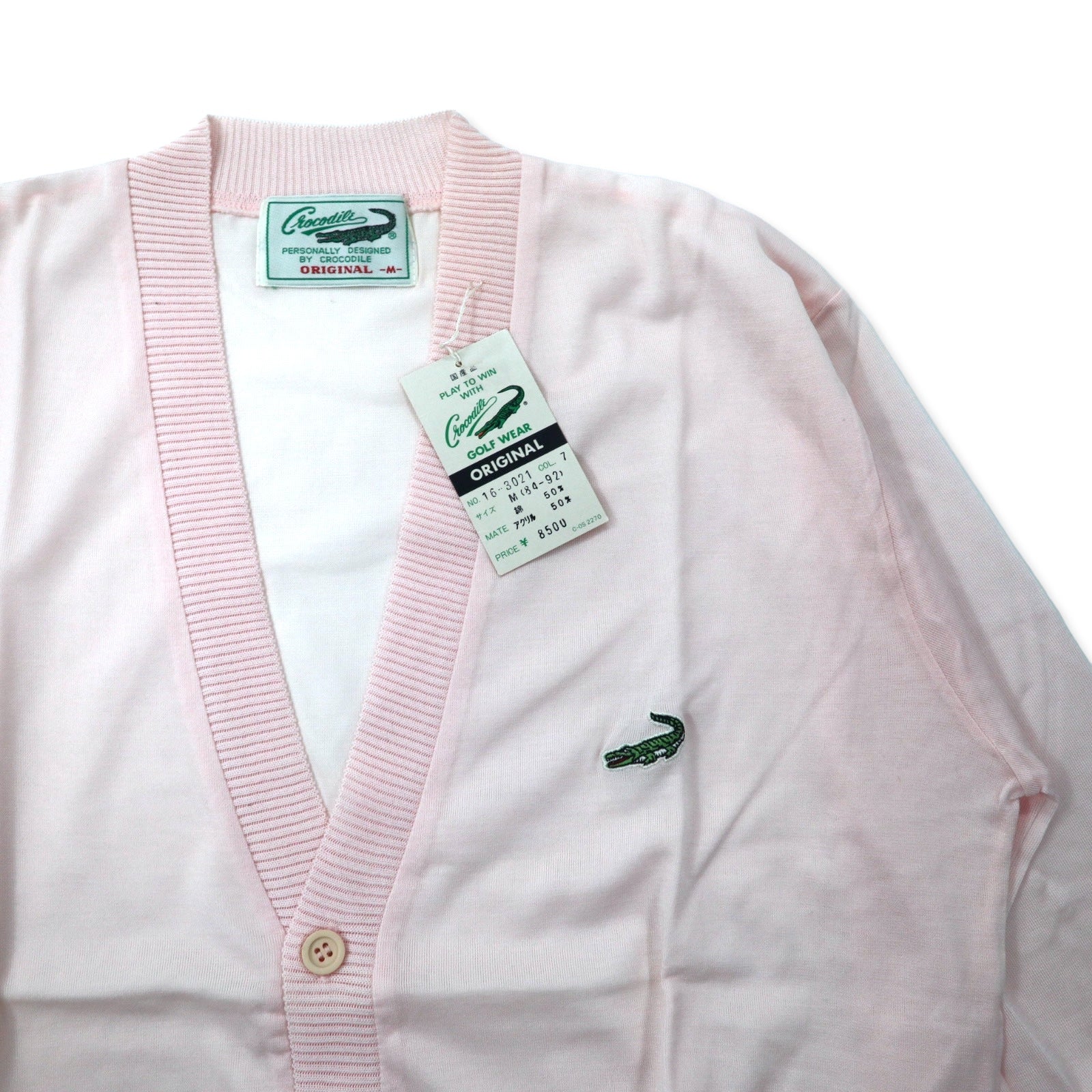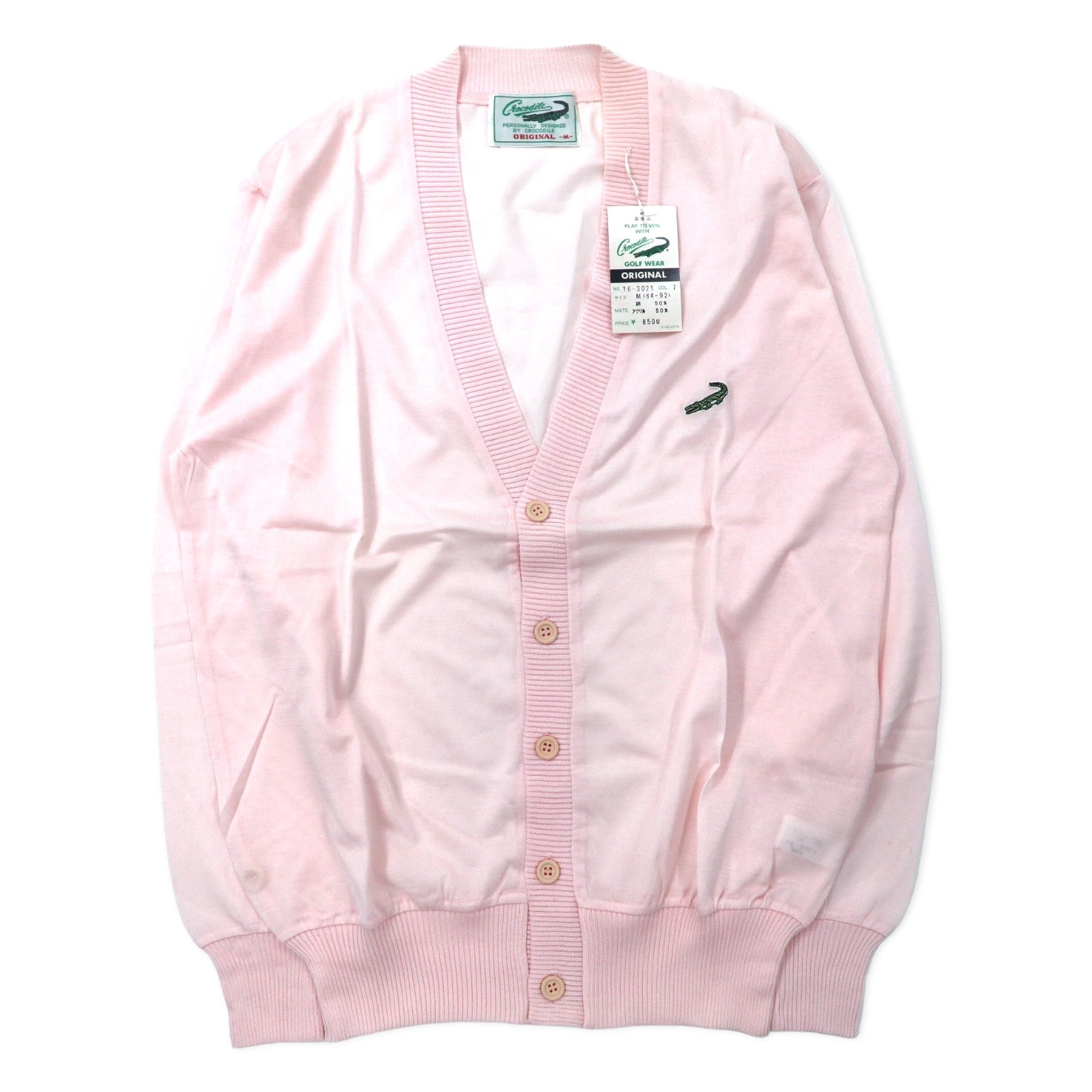 Crocodile 80年代 アクリルニット カーディガン M ピンク コットン 日本製 未使用品