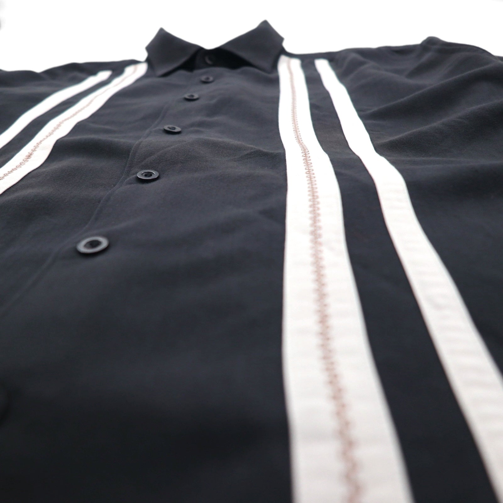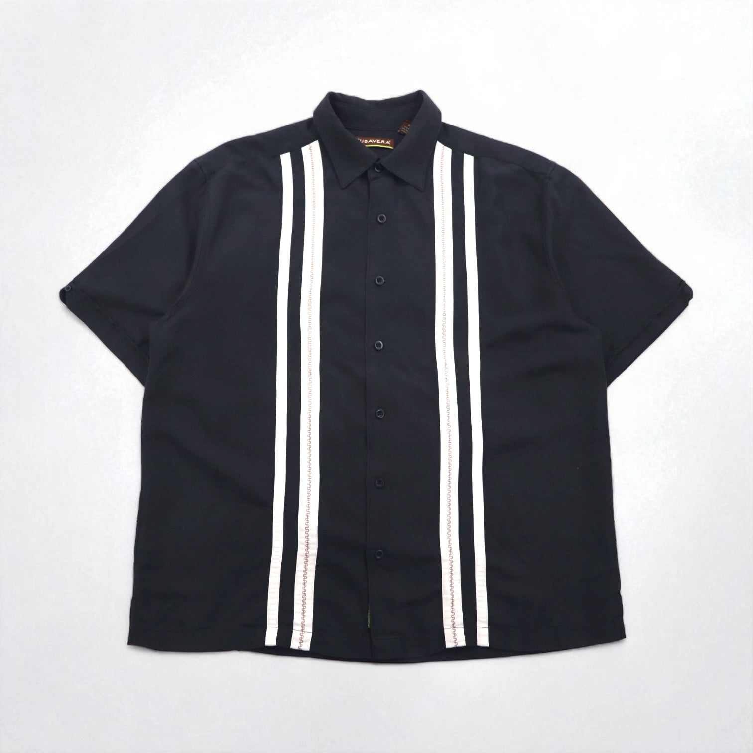 CUBAVERA ラインデザイン キューバシャツ XL ブラック レーヨン ポリエステル