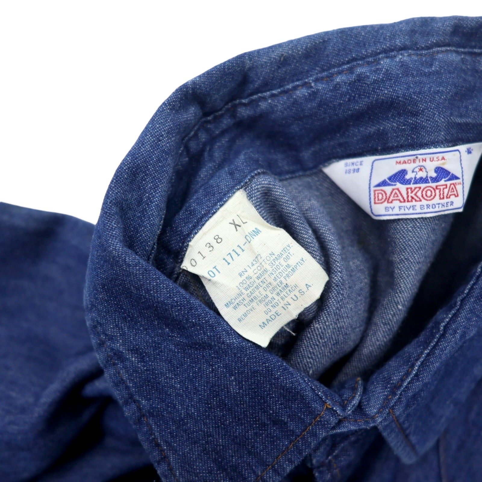 DAKOTA BY FIVE BROTHER USA製 80年代 デニム ウエスタンシャツ XL ブルー コットン