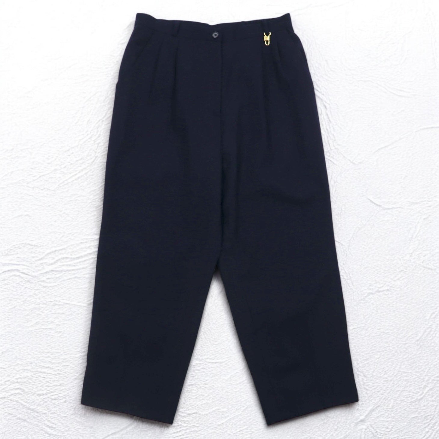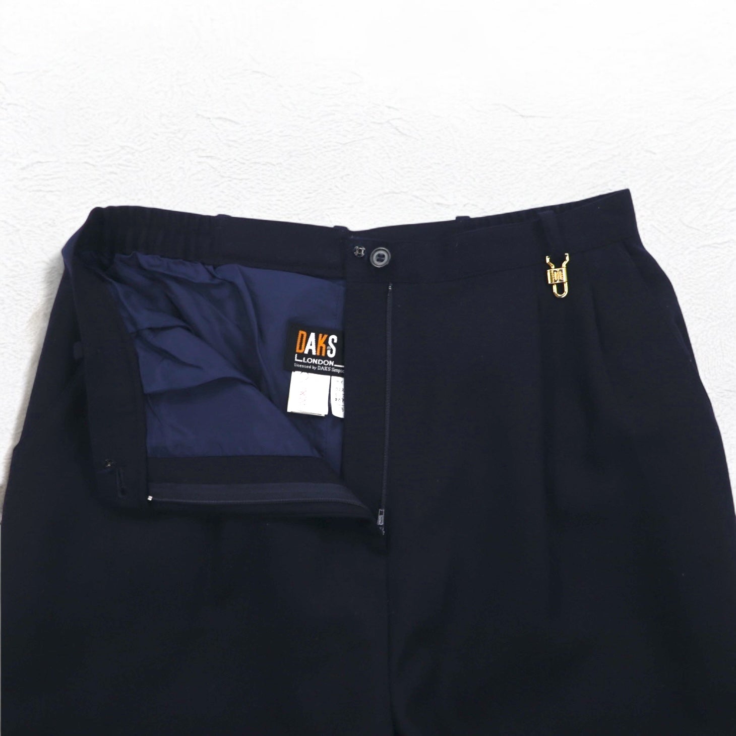 DAKS カシミヤ混 オールド タック イージー スラックスパンツ M ネイビー ウール 日本製