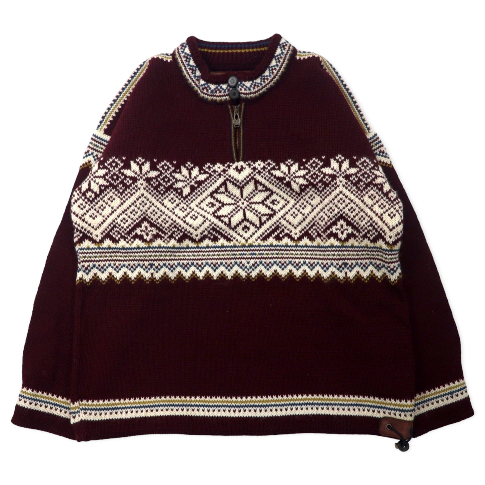 DALE OF NORWAY ノルウェー製 チロリアン ハーフジップ ニット セーター S ボルドー ウール ノルディック柄 DLN9575