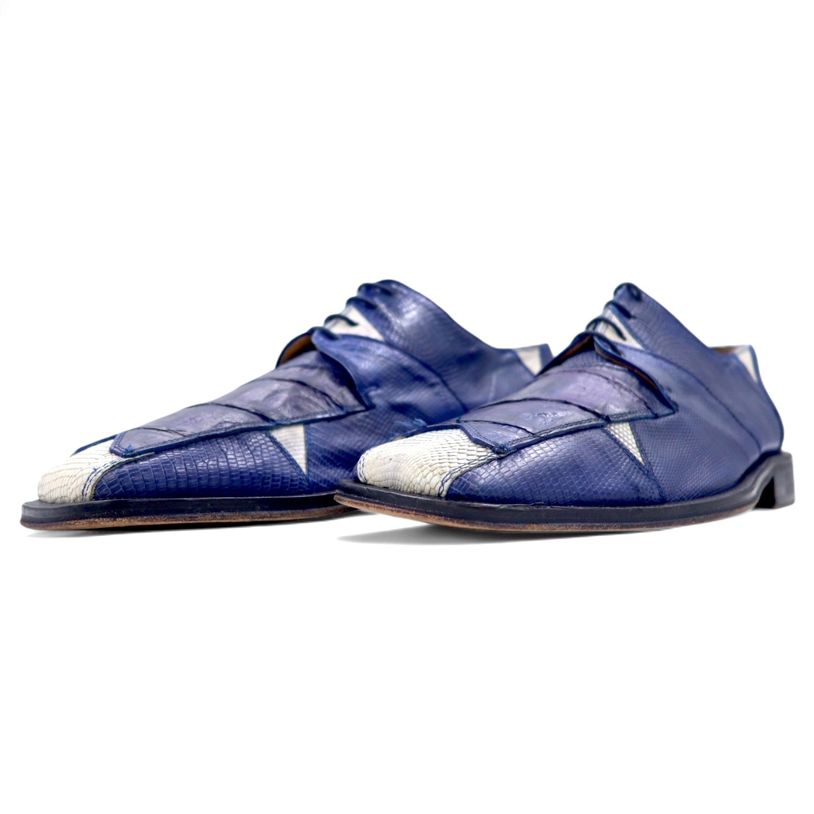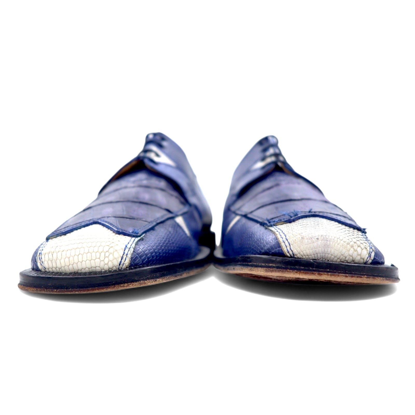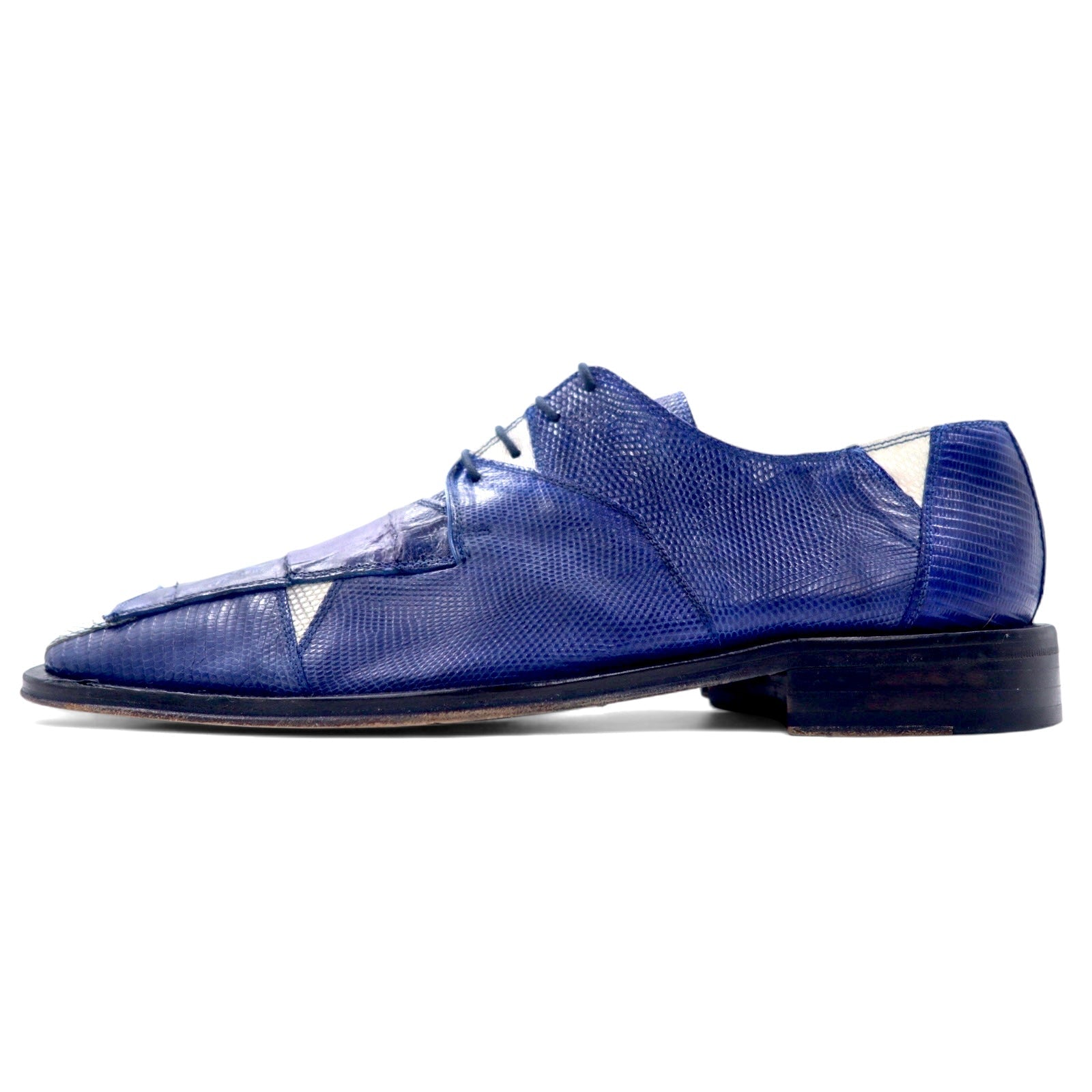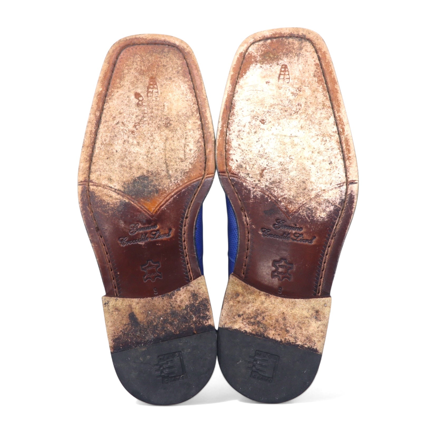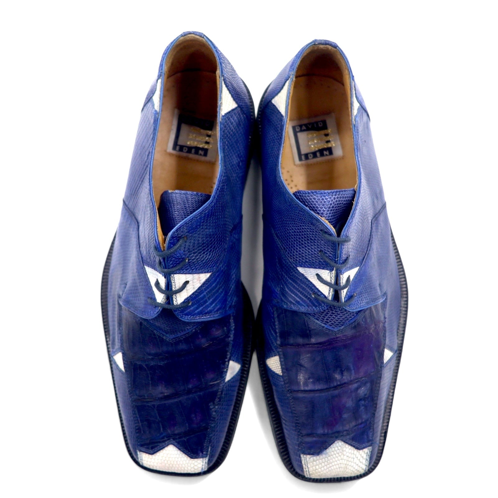 DAVID EDEN スペイン製 クロコダイルレザー スクエアトゥ ドレスシューズ 27cm ブルー クロコダイル UTTCA