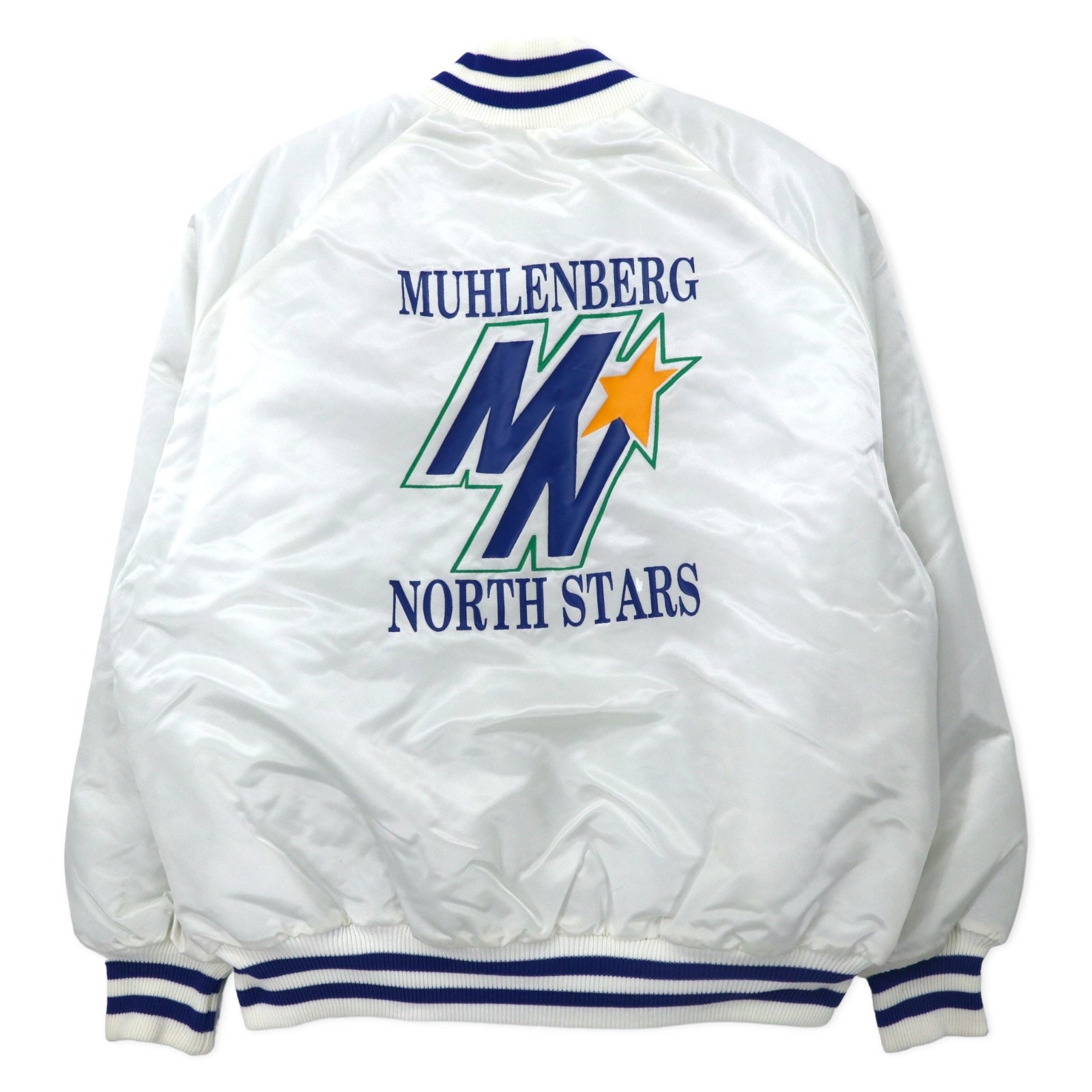 DeLONG USA製 90年代 スタジャン XL ホワイト ナイロン キルティングライナー MUHLENBERG NORTH STARS バックプリント