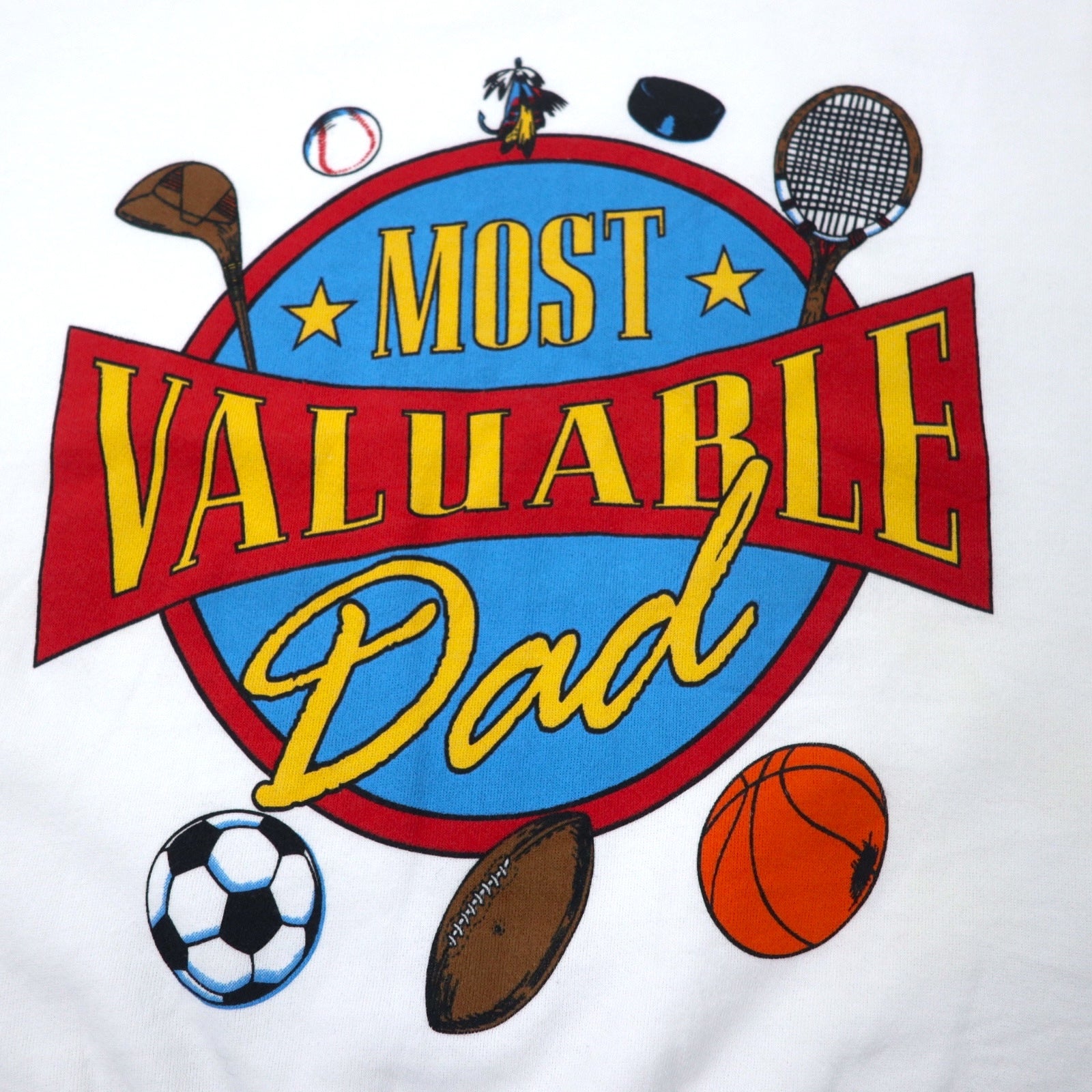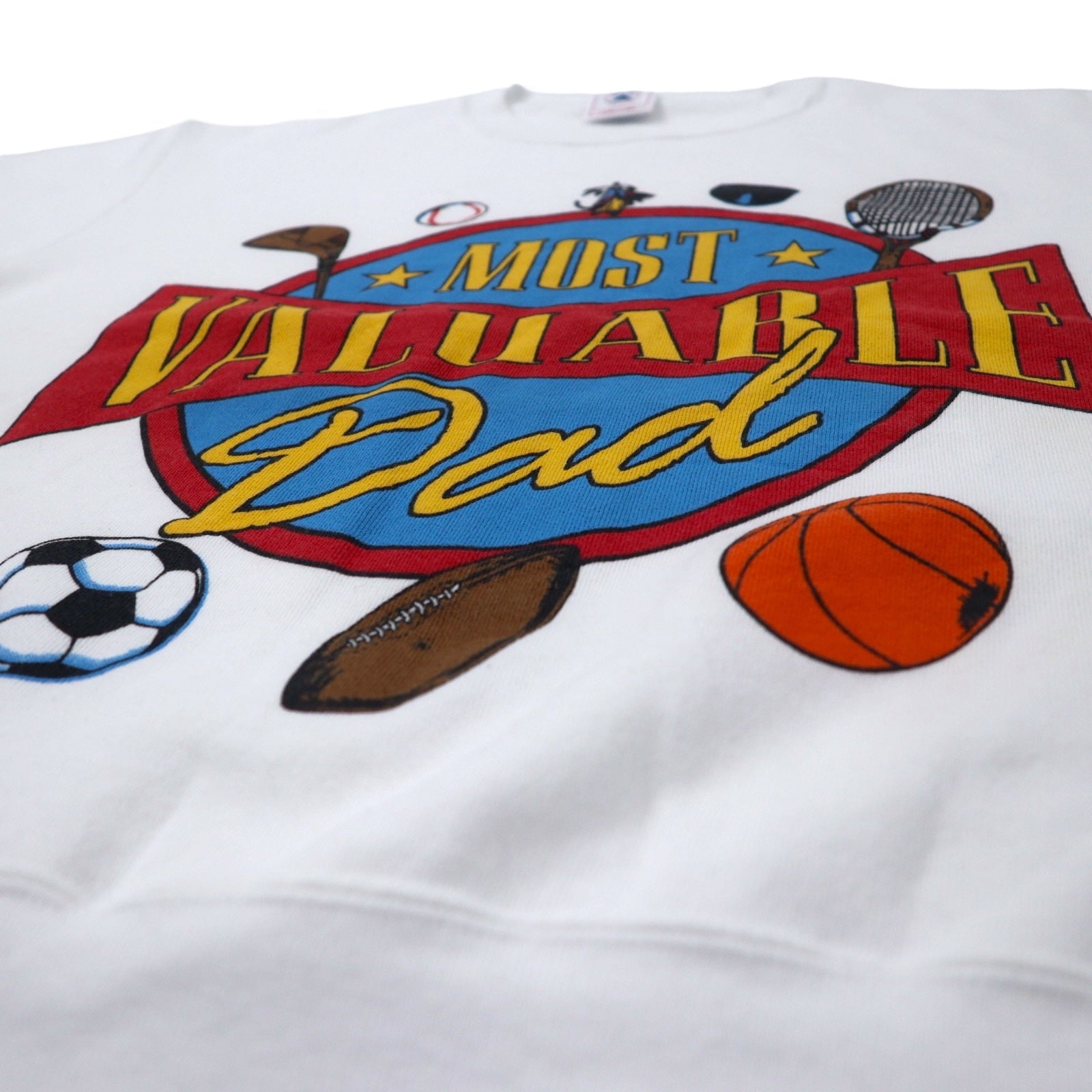 DELTA USA製 90年代 FIFTY-FIFTY プリント スウェット L ホワイト コットン 裏起毛 MOST VALUABLE DAD