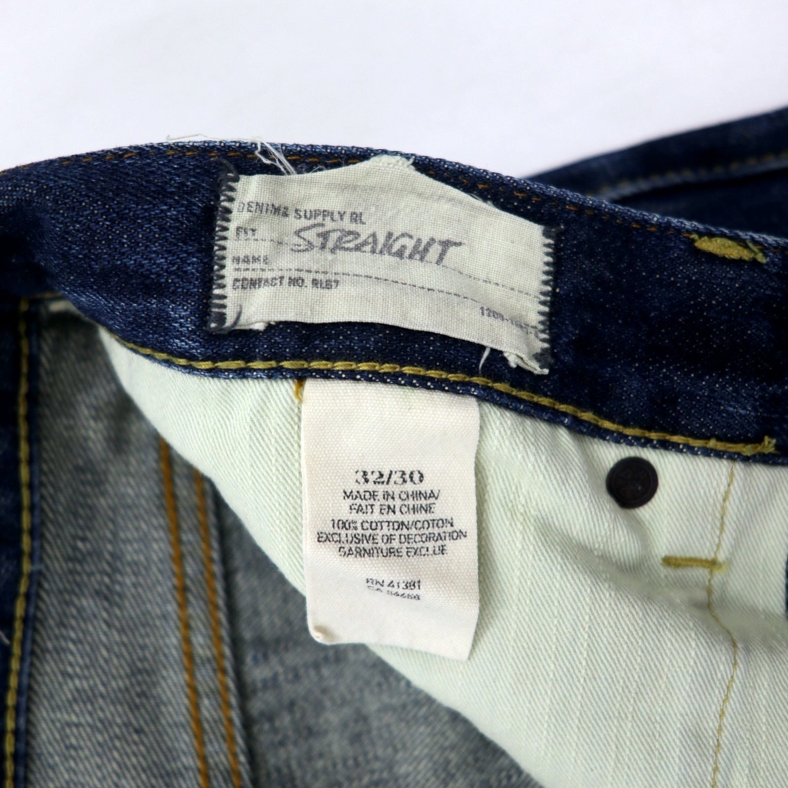 DENIM & SUPPLY RALPH LAUREN リジッド デニムパンツ 32 ブルー 濃紺 STRAIGHT レザーパッチ ボタンフライ