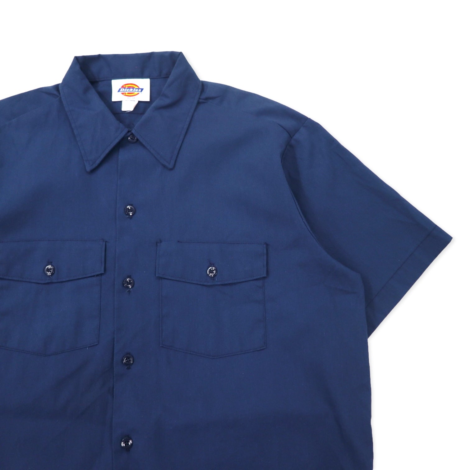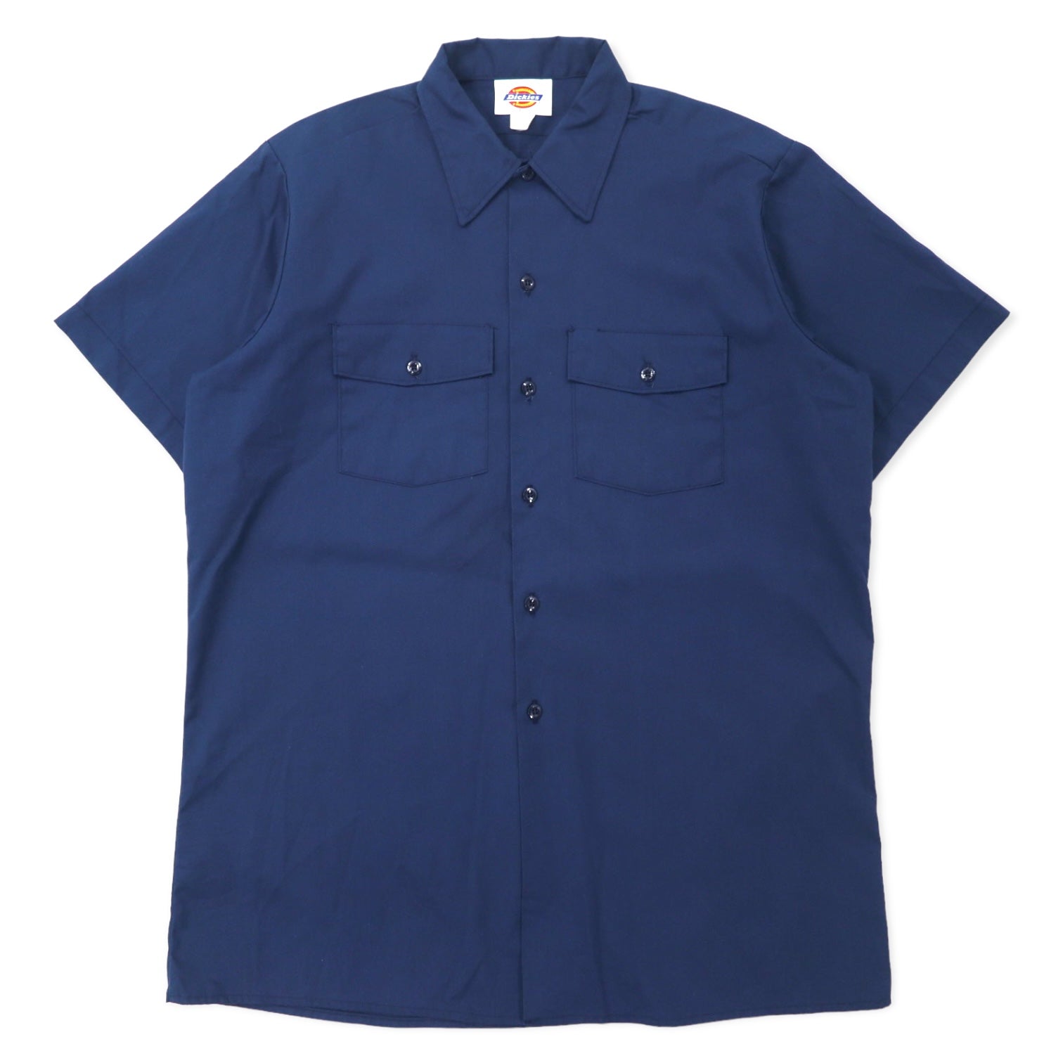 Dickies USA製 半袖 ワークシャツ L ネイビー ポリエステル コットン