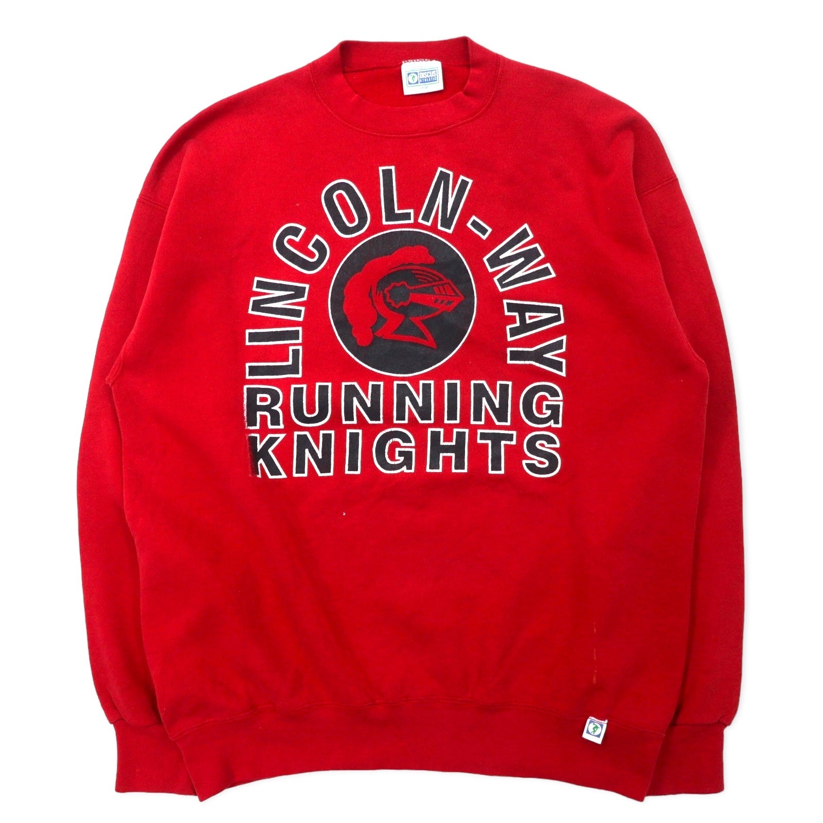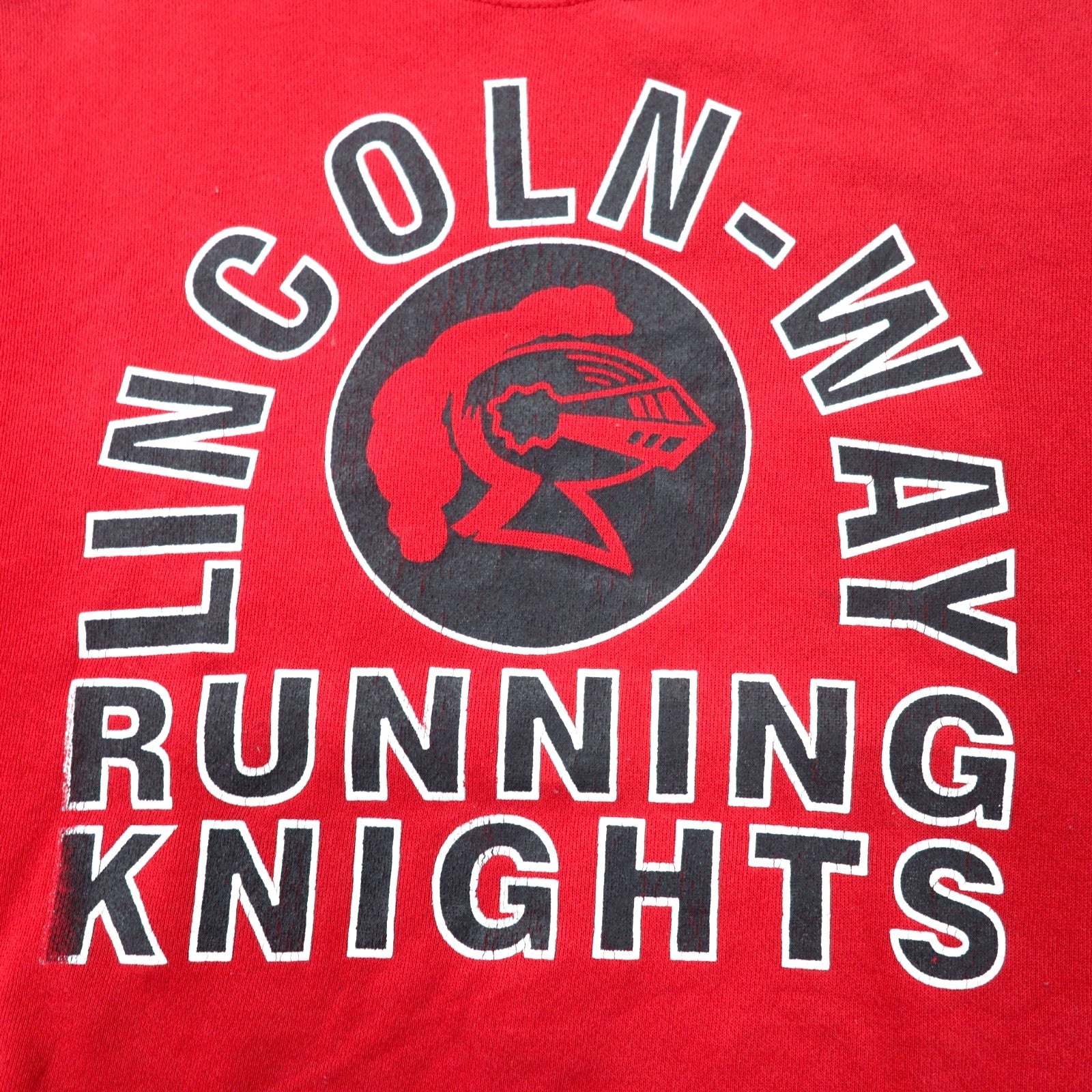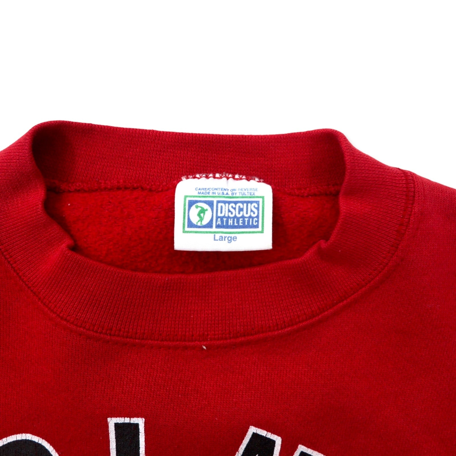 DISCUS ATHLETIC USA製 90年代 プリント スウェット L レッド コットン 両面プリント LINCOLN WAY