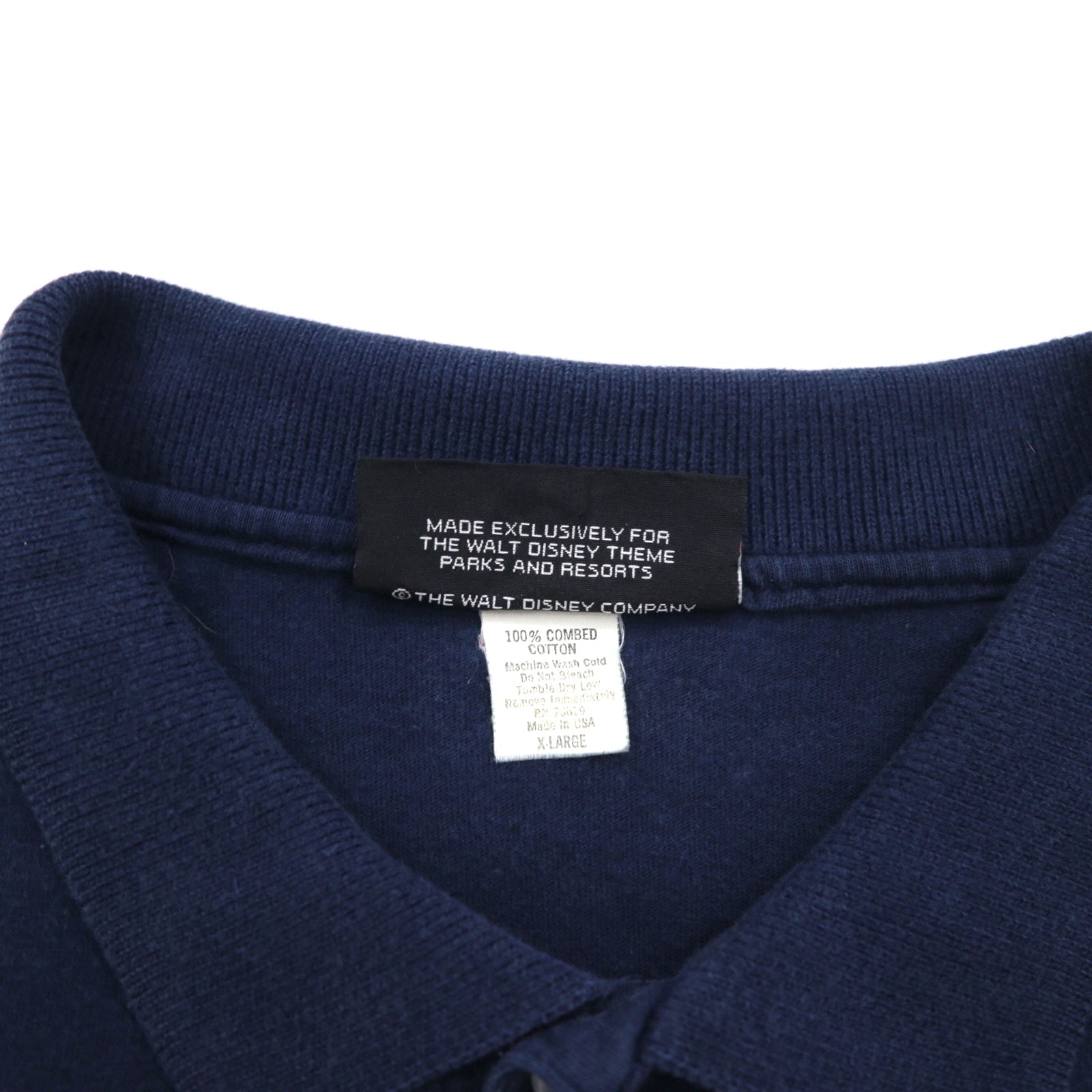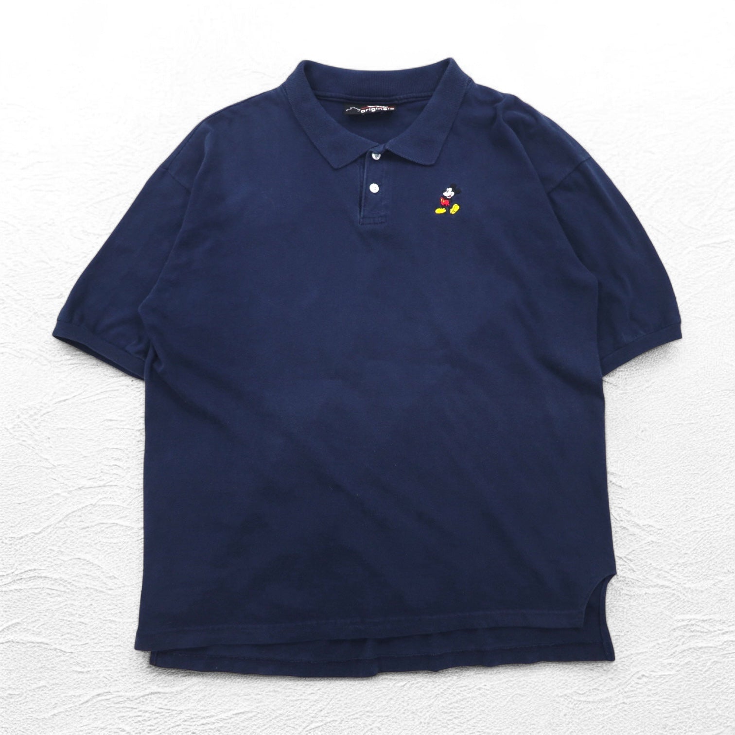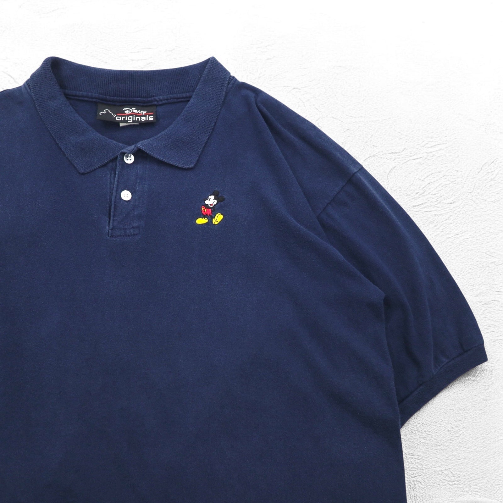 Disney originals 90年代 USA製 ミッキーマウス ワンポイント刺繍 ポロシャツ XL ネイビー コットン